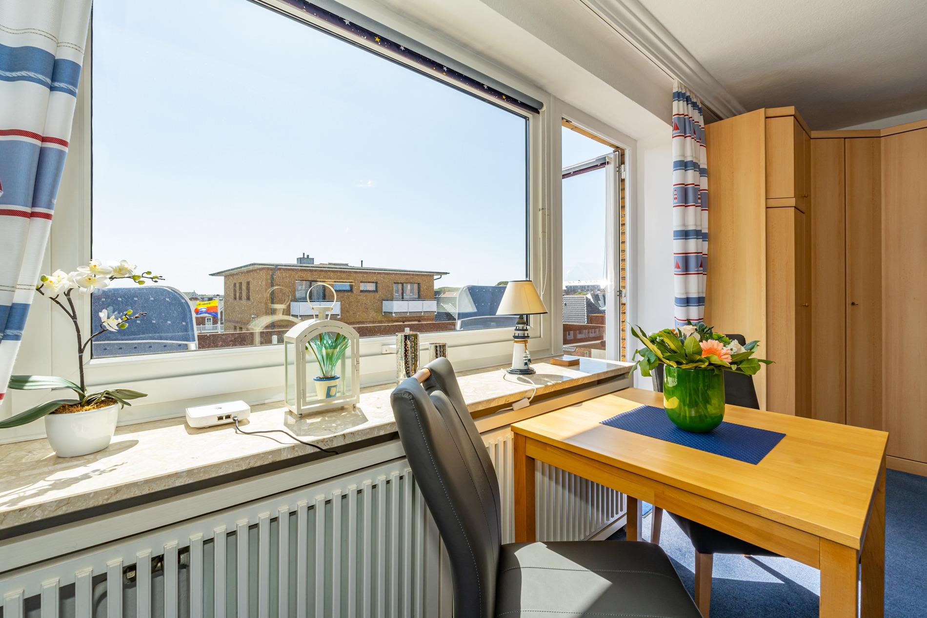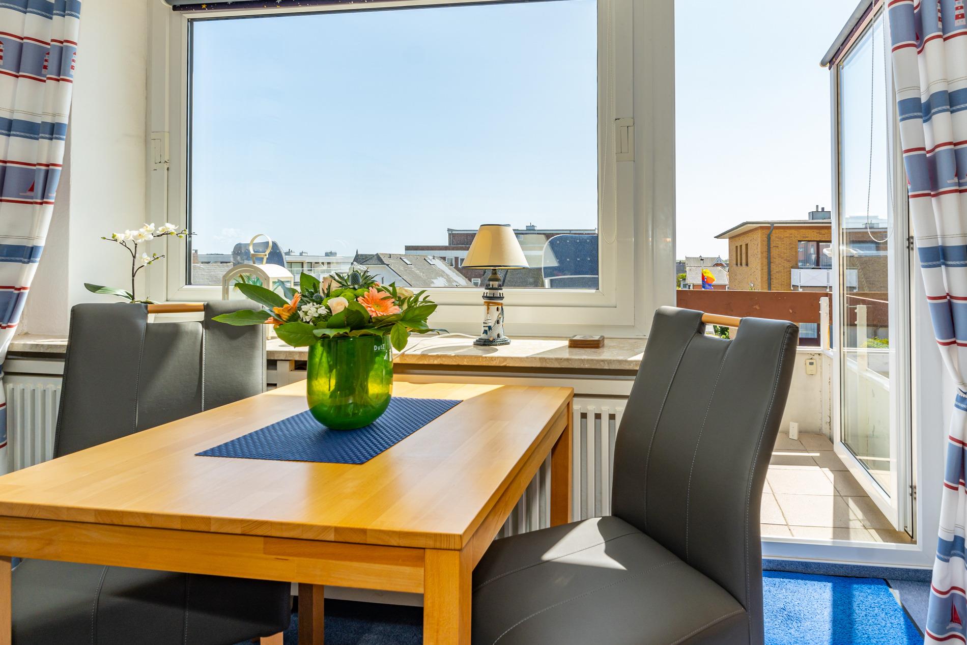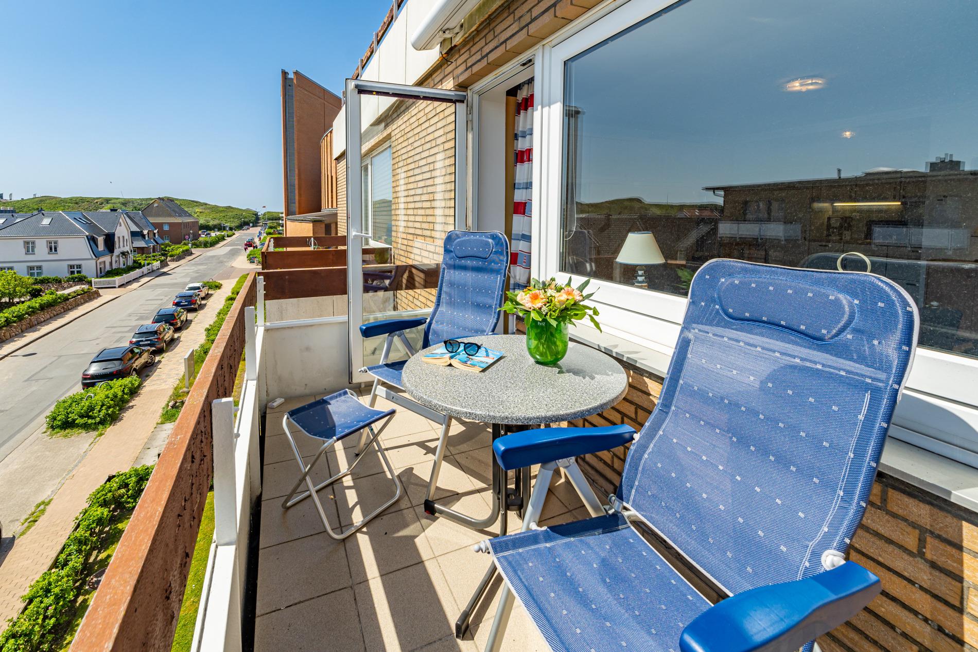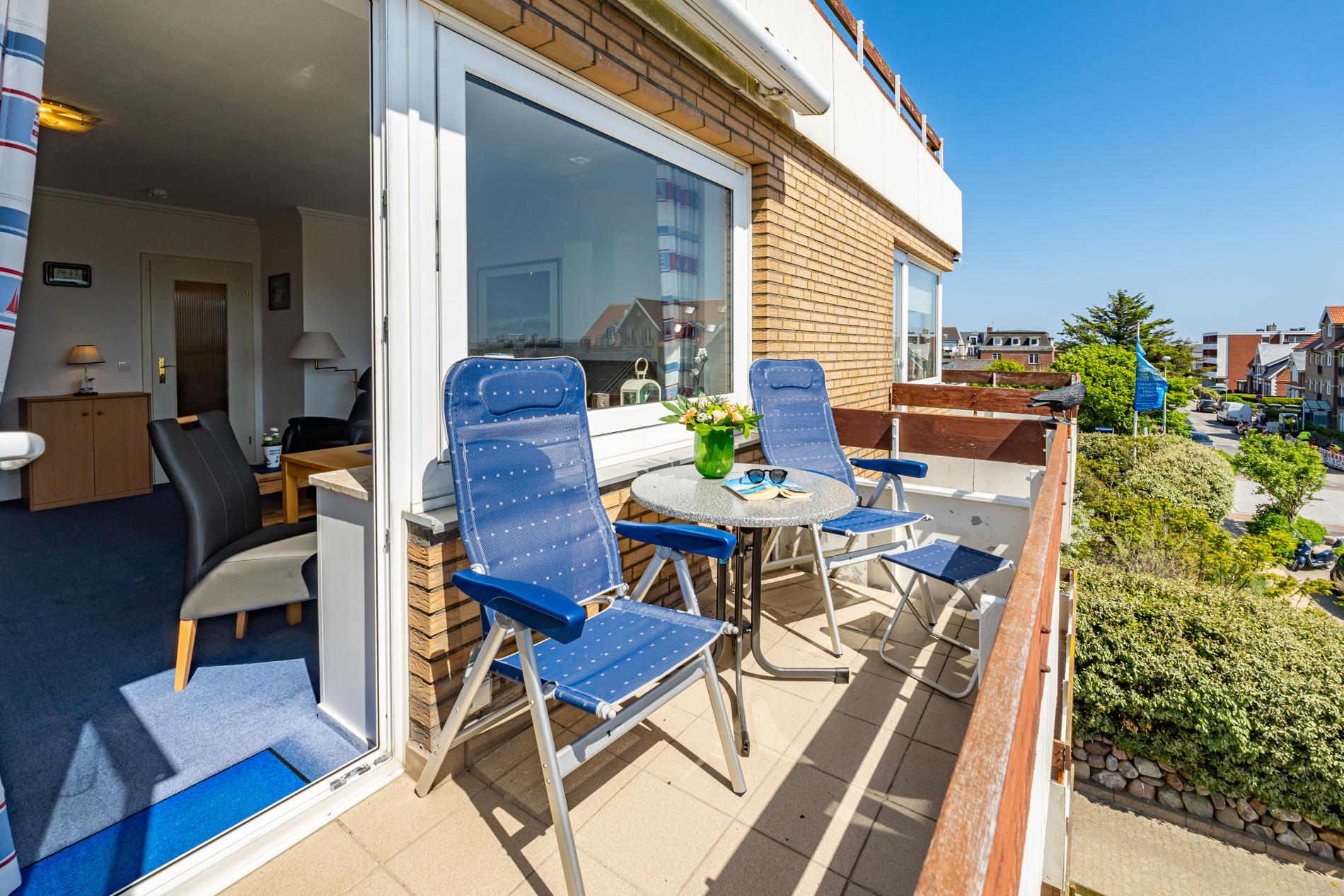 Gemütliche 1-Zimmer-Ferienwohnung mit Südbalkon und Einzelgarage in Westerland, ideal für 2 Personen und Haustiere willkommen.