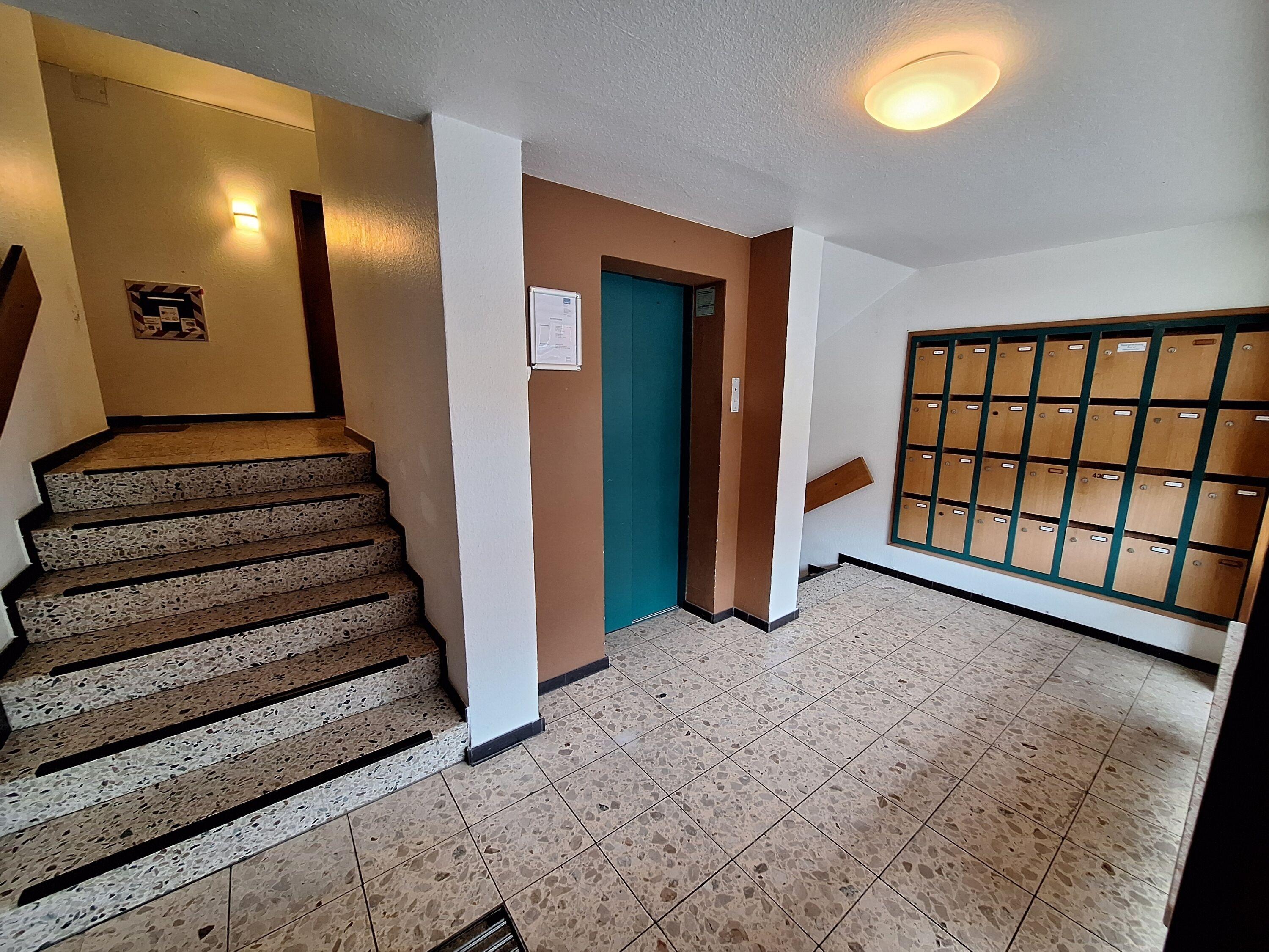 Der Fahrstuhl ist barrierefrei erreichbar, anschließend ist das Appartement über eine 1/2 Etage zu Fuß erreichbar.