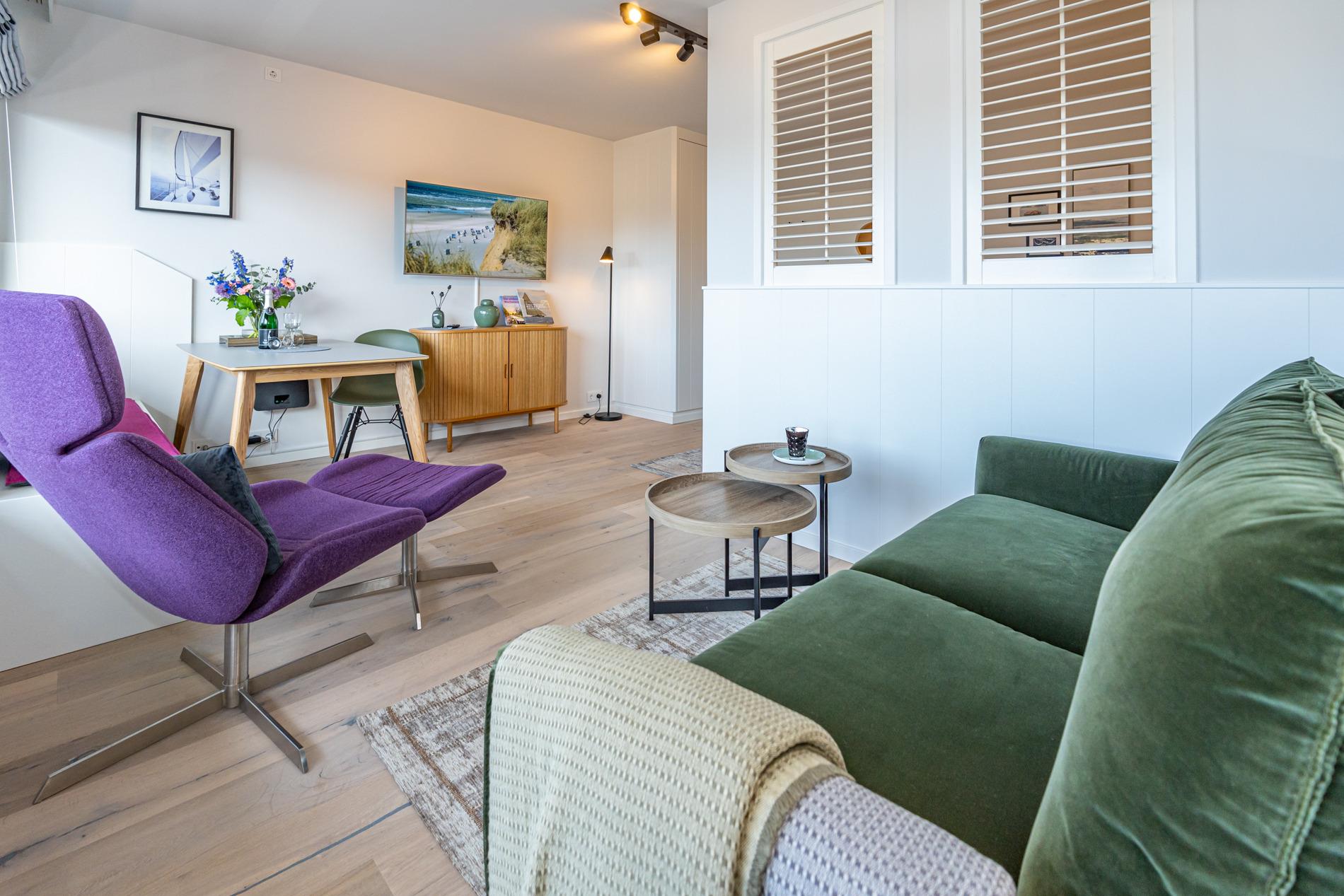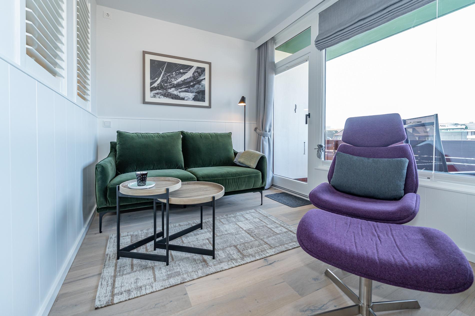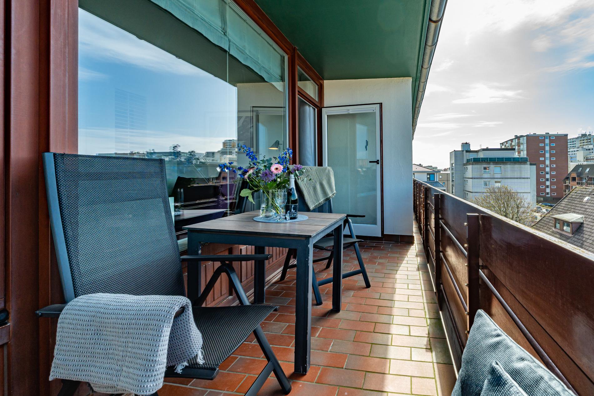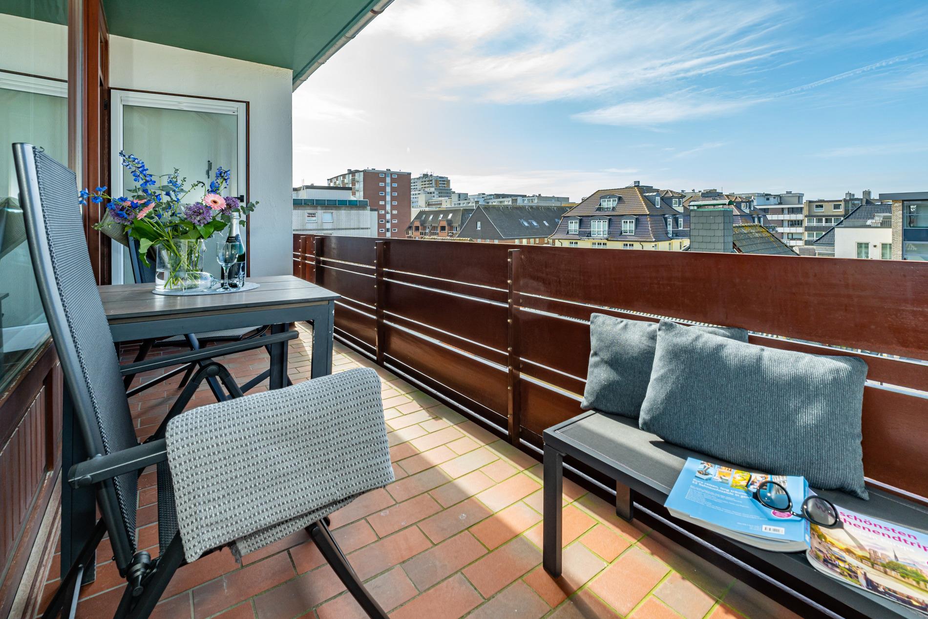 Hochwertige 1-Zimmer-Ferienwohnung mit Balkon und eigenem Garagenstellplatz in zentraler, ruhiger Lage von Westerland.