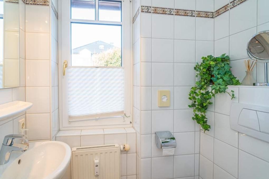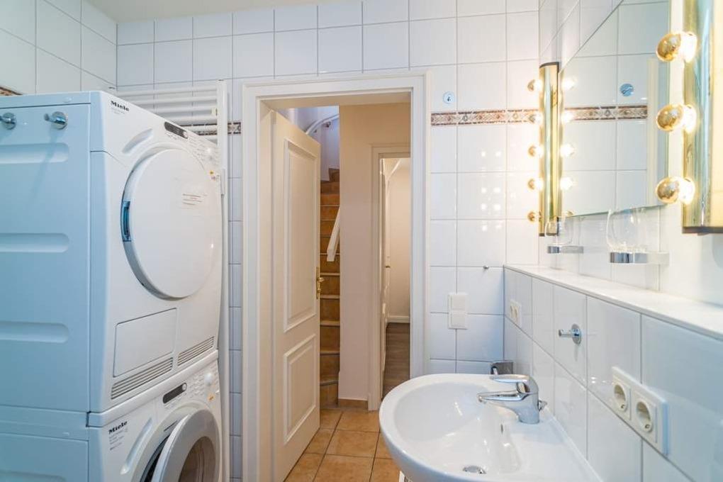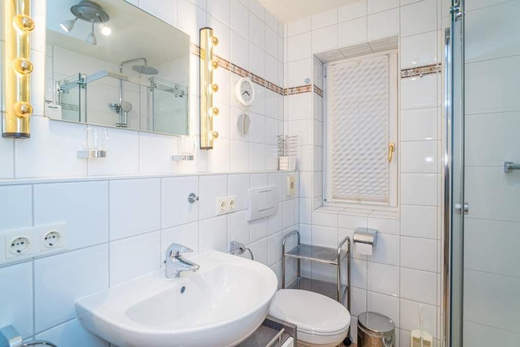 Das Badezimmer ist mit Dusche, Waschtisch, WC, Handtuchwärmer, Föhn und Tageslicht ausgestattet. Waschmaschine und Trockner stehen ebenfalls zur Verfügung.
