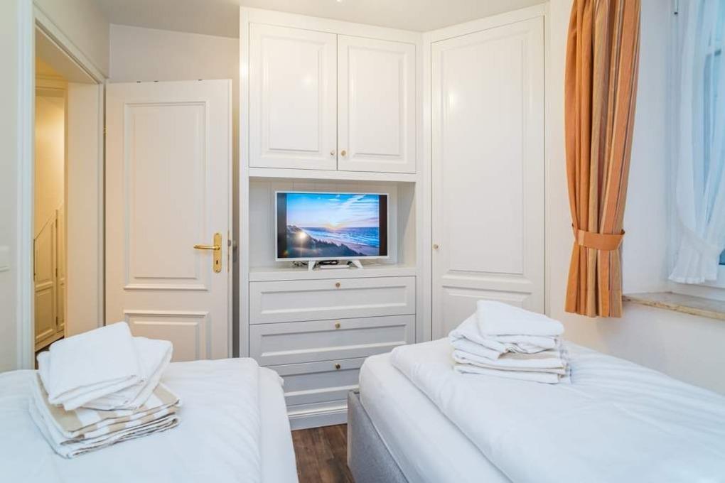 Das 2. Schlafzimmer hat zwei Einzelbetten (Matratzen je 80x200cm), Schränke und einem weiteren Flachbild-TV.