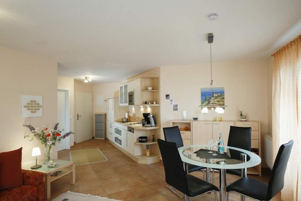Gut ausgestattete 2-Zimmer-Nichtraucher-Ferienwohnung mit ca. 50 qm in der 2. Etage zur Südwestseite für max. 4 Personen.
