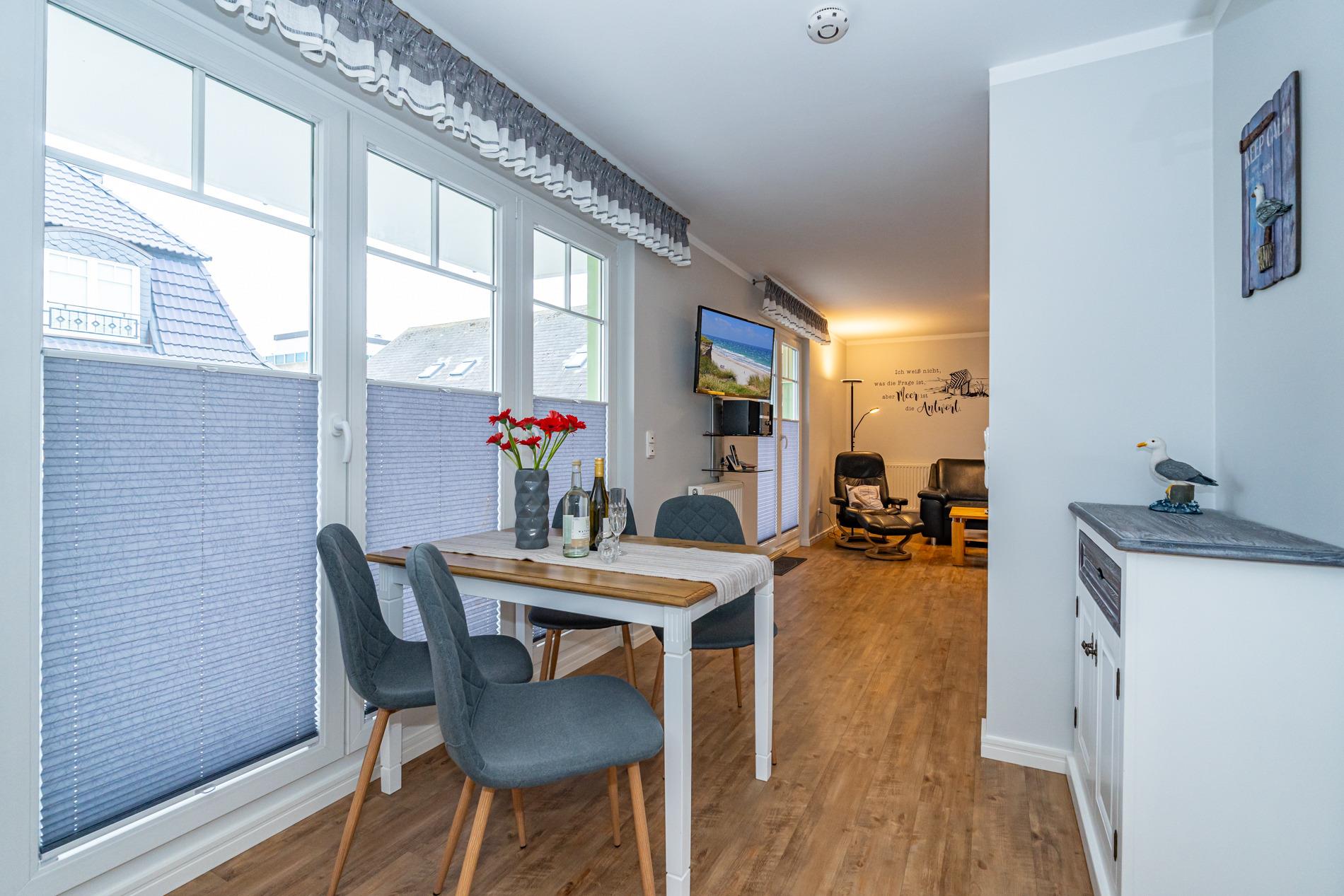 City-Appartement im modernen Strandhaus-Stil – großzügig, stilvoll und zentralDiese ca. 67 m² große 3-Zimmer-Nichtraucherwohnung mit 2 Schlafzimmern in der 2. Etage überzeugt mit ihrer geschmackvollen Einrichtung, hochwertiger Ausstattung und eine großzügige Ost-Terrasse mit Balkonmöbeln, ideal für bis zu 4 Personen.