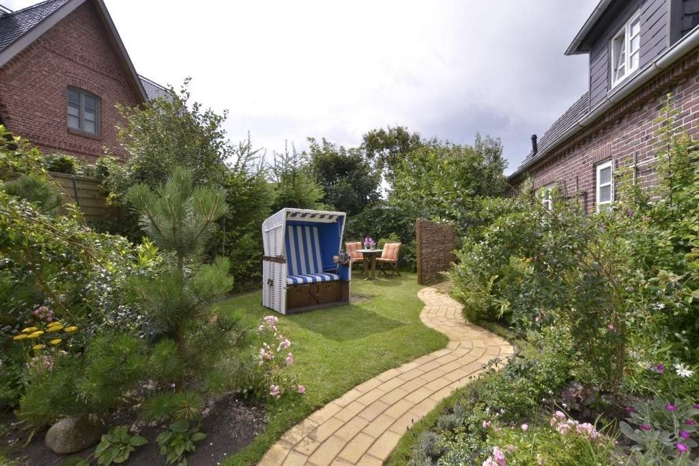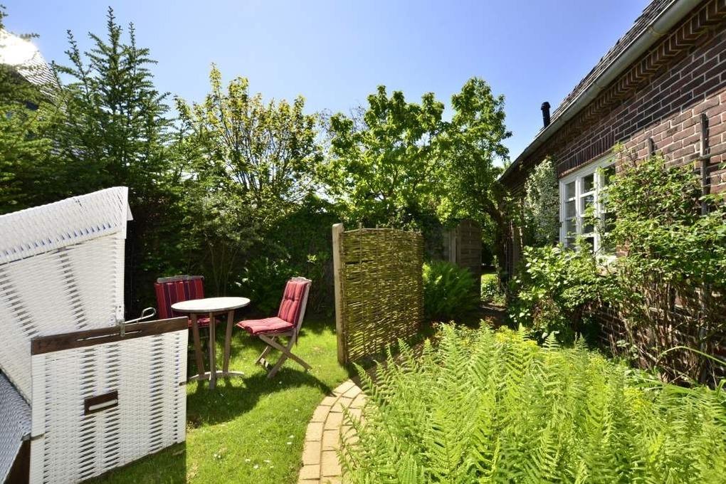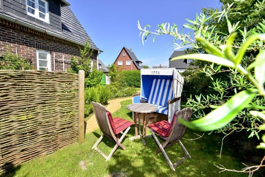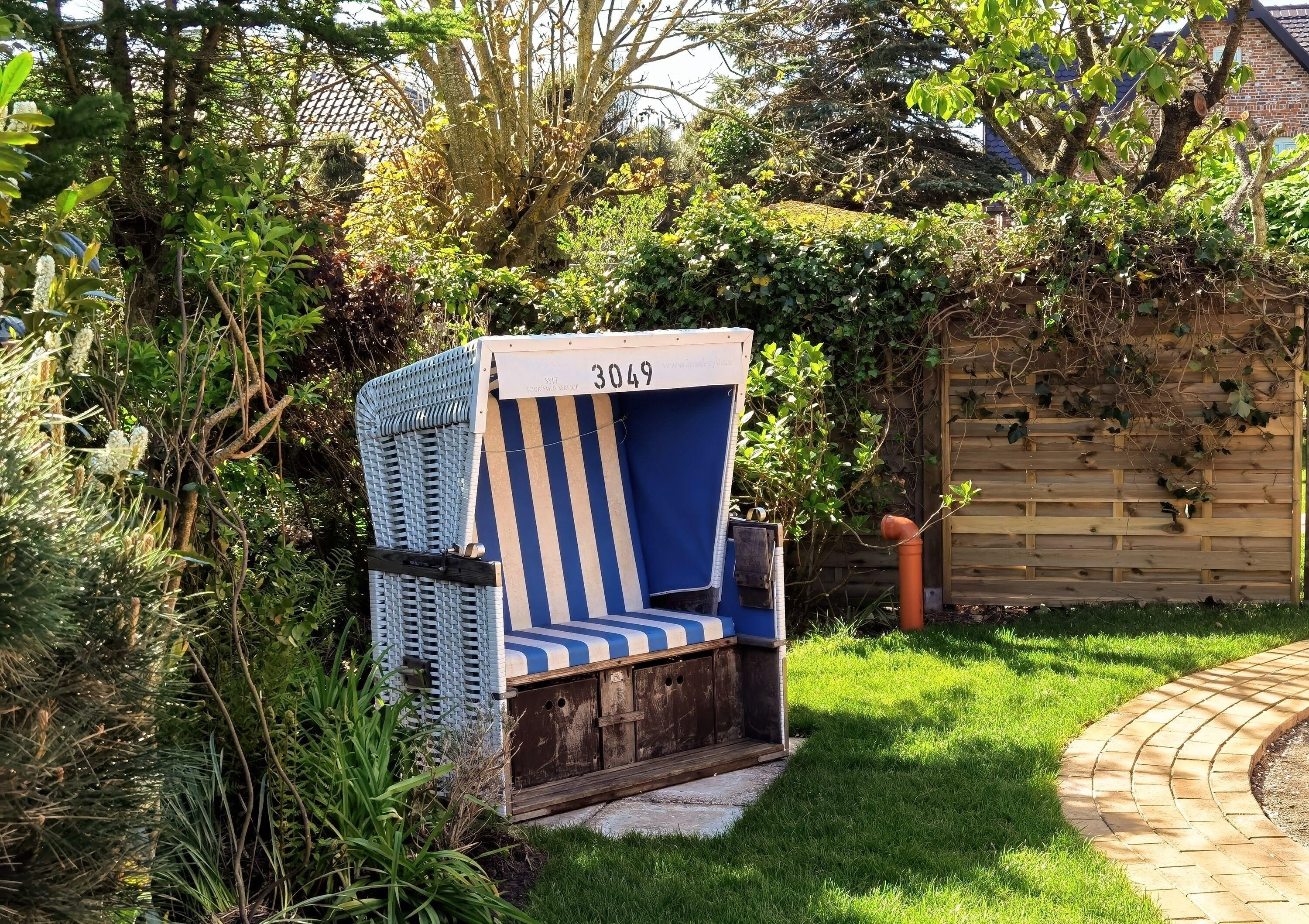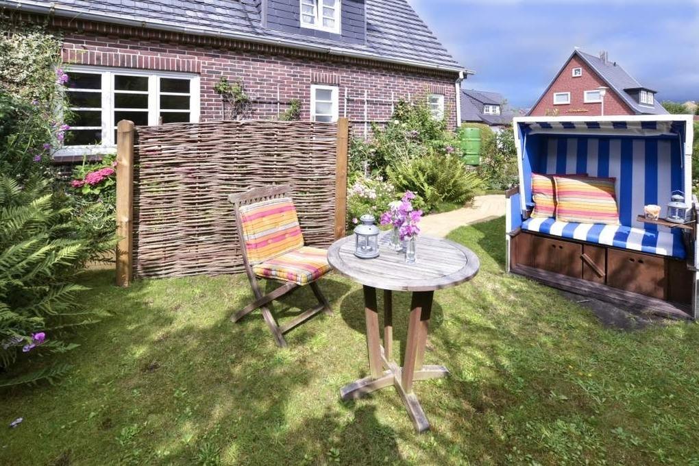 Gemütliche Ferienwohnung in Westerland mit eigenem Garten und Strandkorb, perfekt für erholsame Tage an der Nordsee.