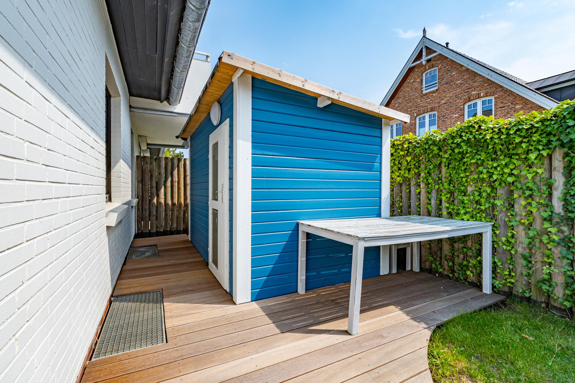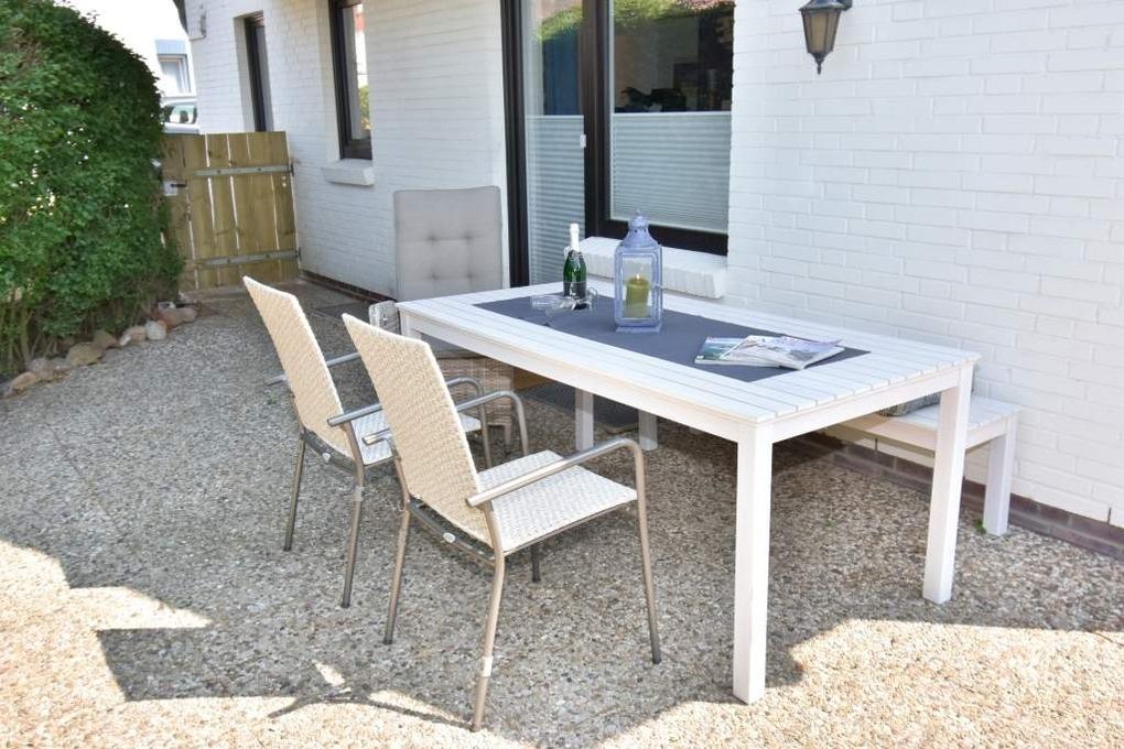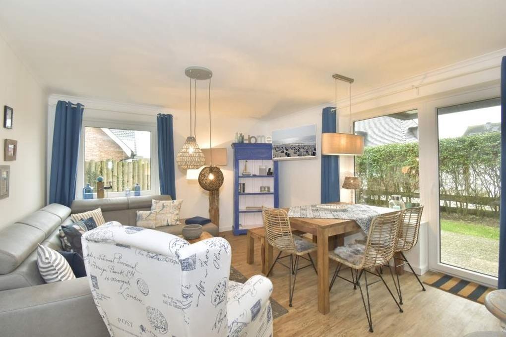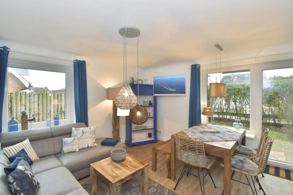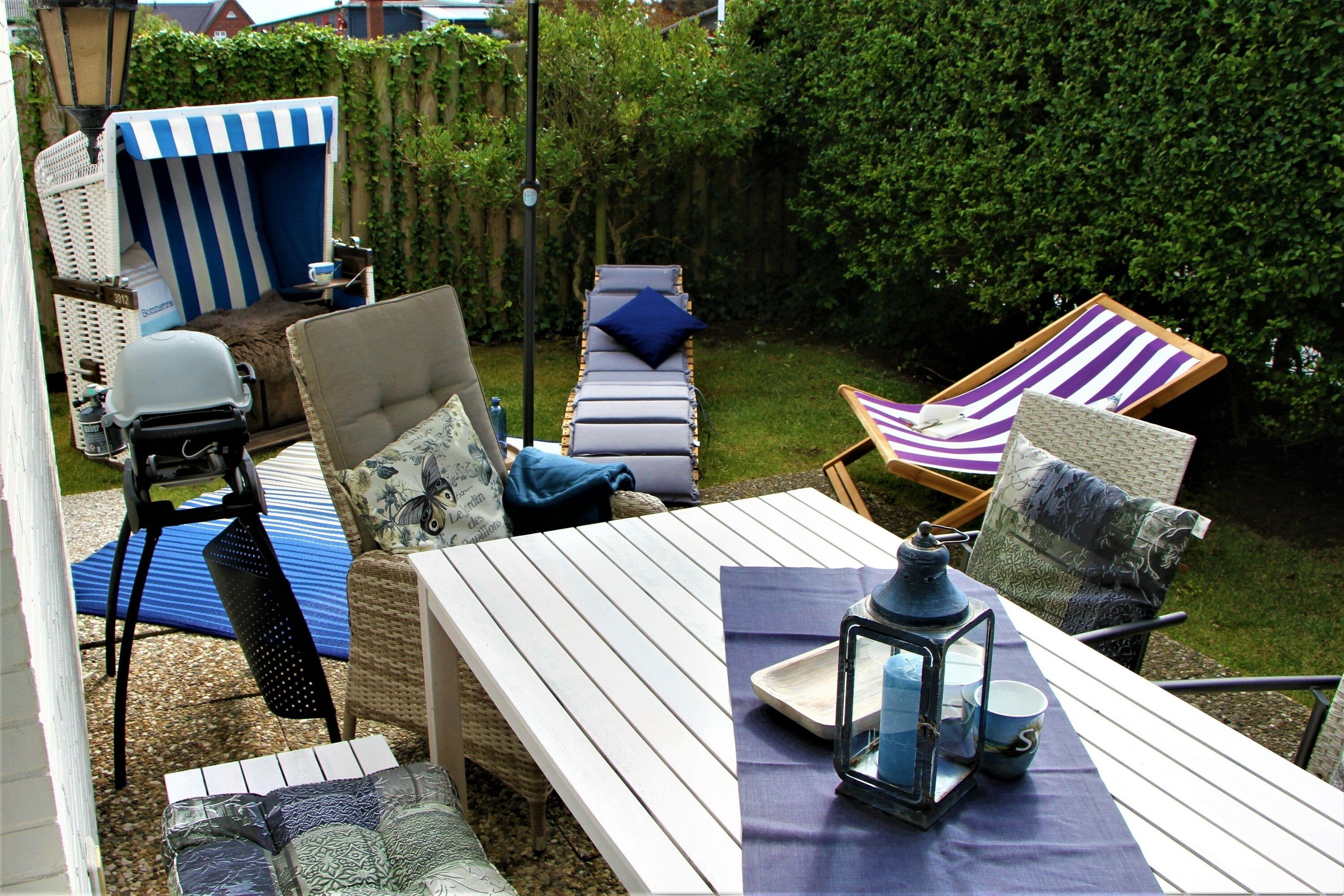 Ruhig und idyllisch liegt diese geschmackvoll und hochwertig renovierte, gemütliche 3-Zimmer-Nichtraucher-Ferienwohnung (ca. 54 m², 4 Personen) im Parterre eines 6-Parteien-Hauses in zweiter Reihe. Genießen Sie die Sonne im Strandkorb im eingegrenzten Terrassen-/Gartenteil in Süd-West-Ausrichtung, lassen Sie sich auf den gemütlichen Gartenmöbeln Ihr Gegrilltes vom zur Verfügung stehenden WEBER-Gasgrill schmecken, nutzen Sie Ihre eigene auf der Terrasse ebenfalls bereitstehende Sauna, oder trotzen Sie dem Nordseewetter bei einer Tasse Tee in der heimeligen Wohnstube.