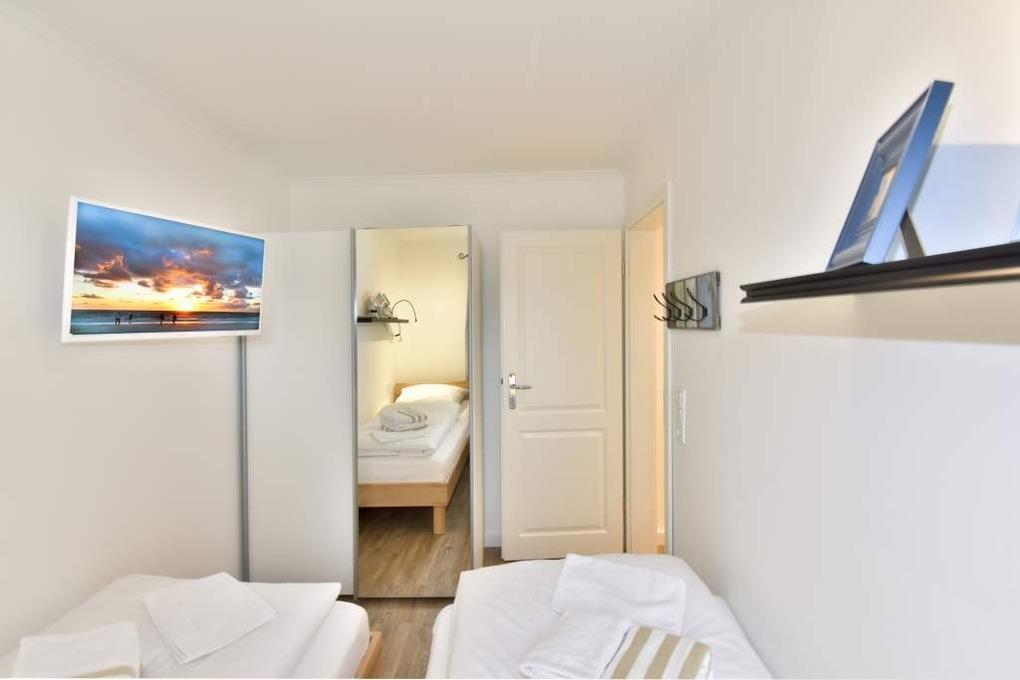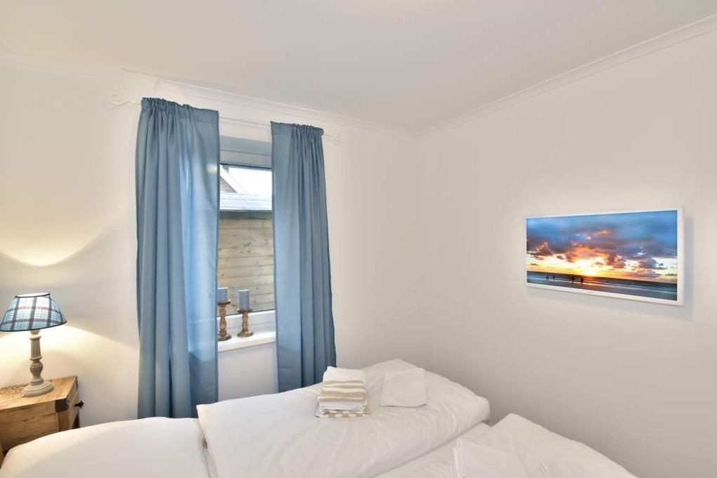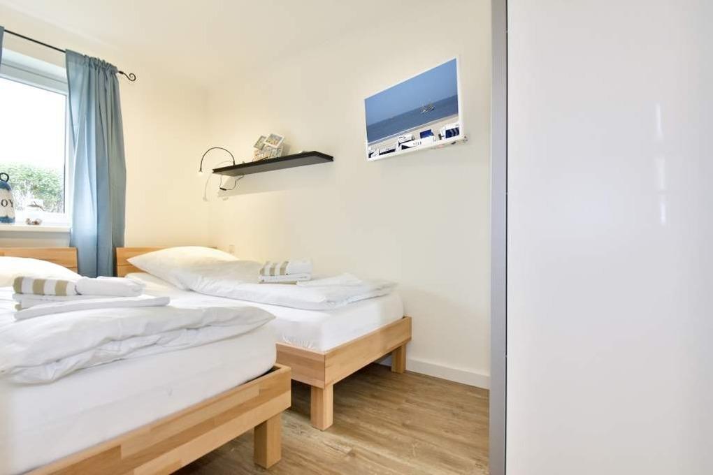 Die beiden Schlafzimmern (Doppelbett 1,80 m x 2,00 m, Einzelmatratzen bzw. zwei Einzelbetten 0,90 m x 2,00 m, jeweils ein Kabel-Flachbild-TV) versprechen einen erholsamen Schlaf während Ihrer Nächte auf Sylt.