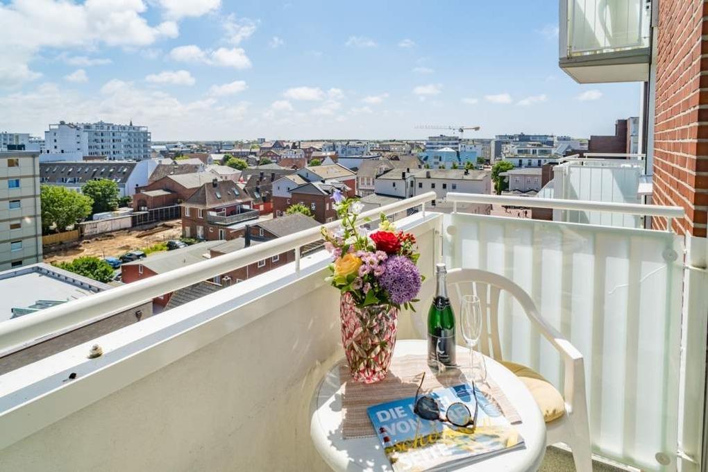Charmante Ferienwohnung in Westerland mit Panoramablick und Ostbalkon, ideal für 2 Gäste, zentral und komfortabel.