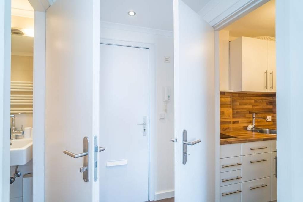 Die separate Küche ist funktional und gut ausgestattet: Mikrowelle, Geschirrspüler, Kaffeemaschine, Wasserkocher und Toaster gehören zur Grundausstattung. Das modernisierte Duschbad verfügt über WC, Waschtisch und Dusche. Das Appartement ist bequem per Aufzug erreichbar. Der Fahrstuhl bedient die Etagen vom Erdgeschoss bis ins 8. Obergeschoss.