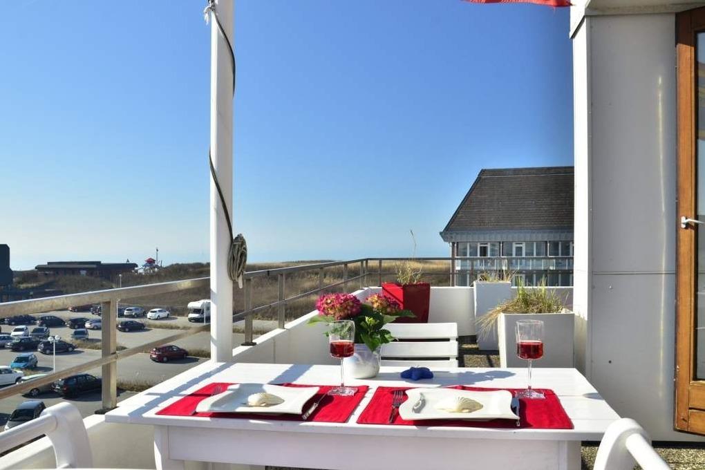 Dieses komfortable Penthouse mit grandiosem Meerblick und großzügiger, von Süden nach Westen umlaufender Dachterrasse gehört sicherlich zu den begehrtesten Ferienwohnungen in Westerland.