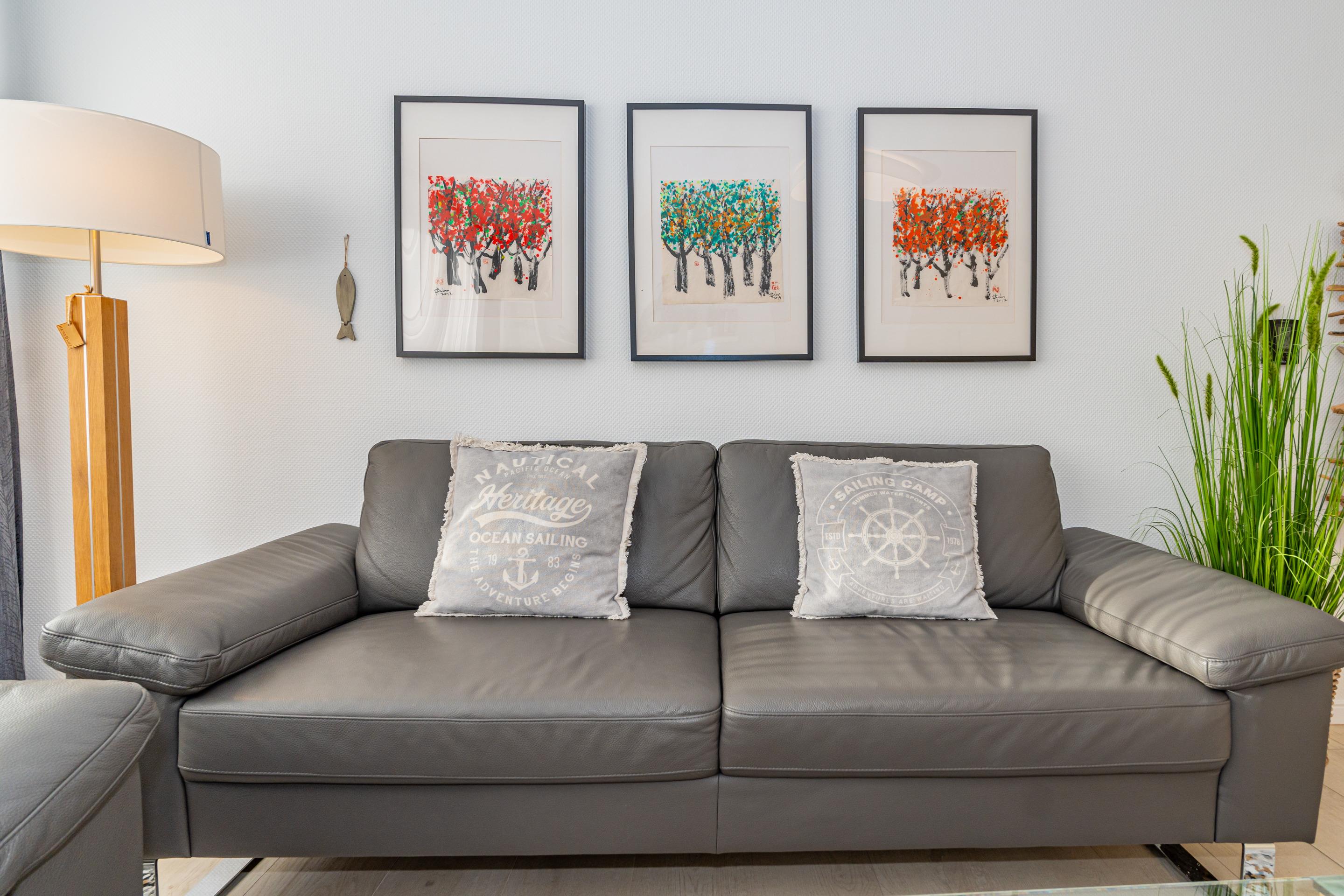 Der Wohnraum steht eine bequeme Sitzgarnitur (2-Sitzer-Couch und ein Sessel), ein separater Essplatz, einem Doppelschrankbett (mit Einzelmatratzen), großer 50-Zoll-SMART-TV (Bildschirm-Diagonale: ca. 126 cm) mit vielen Features, Sprachsteuerung, Apps usw. zur Ihrer Verfügung.