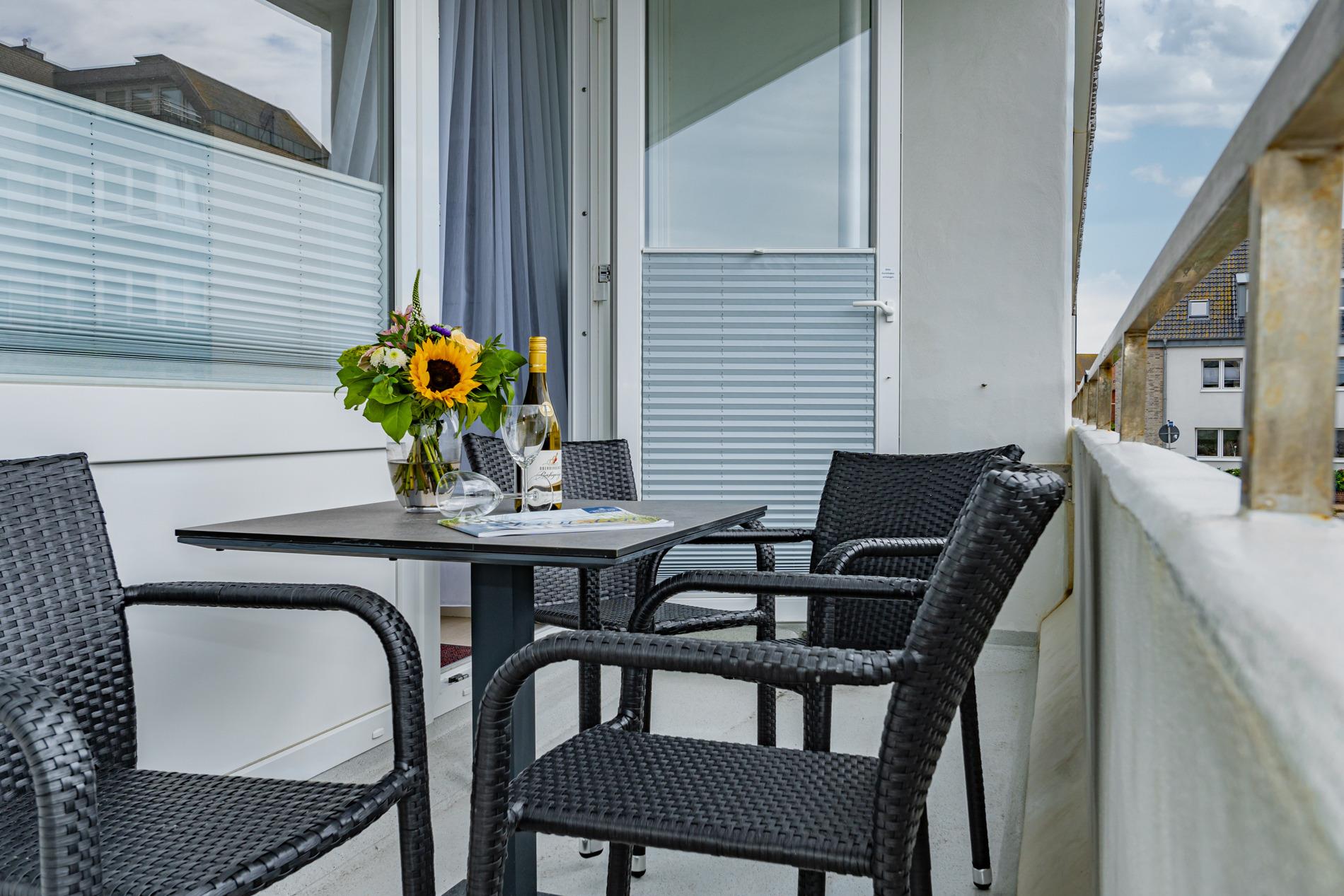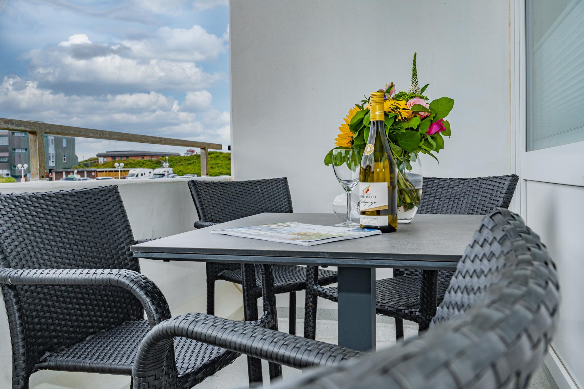 Moderne 2-Zimmer-Ferienwohnung mit Südbalkon und WLAN in Westerland für erholsame Urlaubstage.