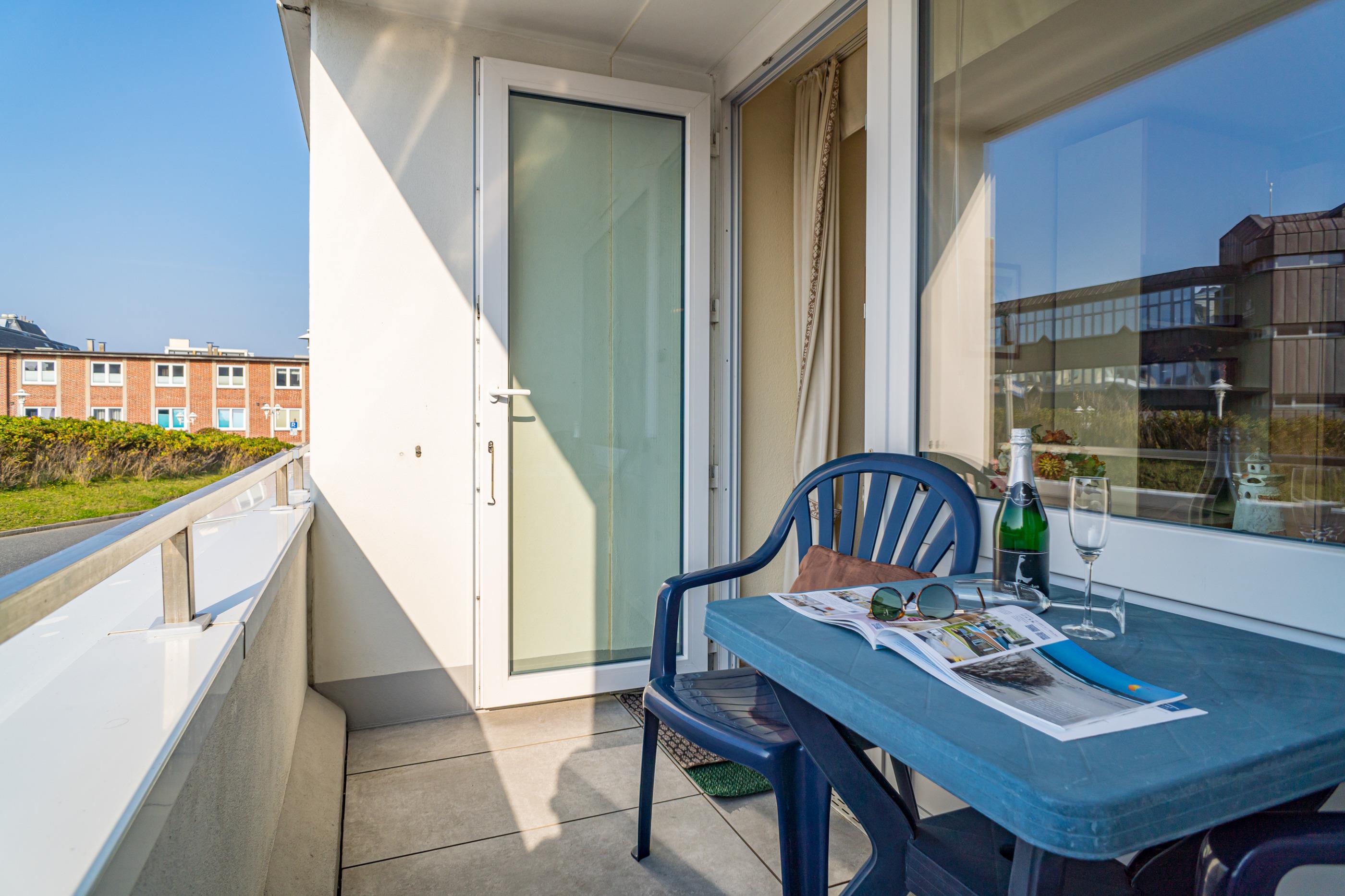 Moderne Nichtraucher-Ferienwohnung mit Balkon und Küche in Westerland, ideal für 2 Personen und Haustiere erlaubt.