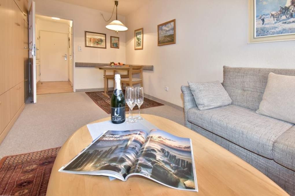 1-Zimmer-Nichtraucher-Ferienwohnung (ca. 25 qm) im Hochparterre zur Seeseite mit Westloggia (Nachmittagssonne, mit Balkonmöbeln) für max. 2 Personen.