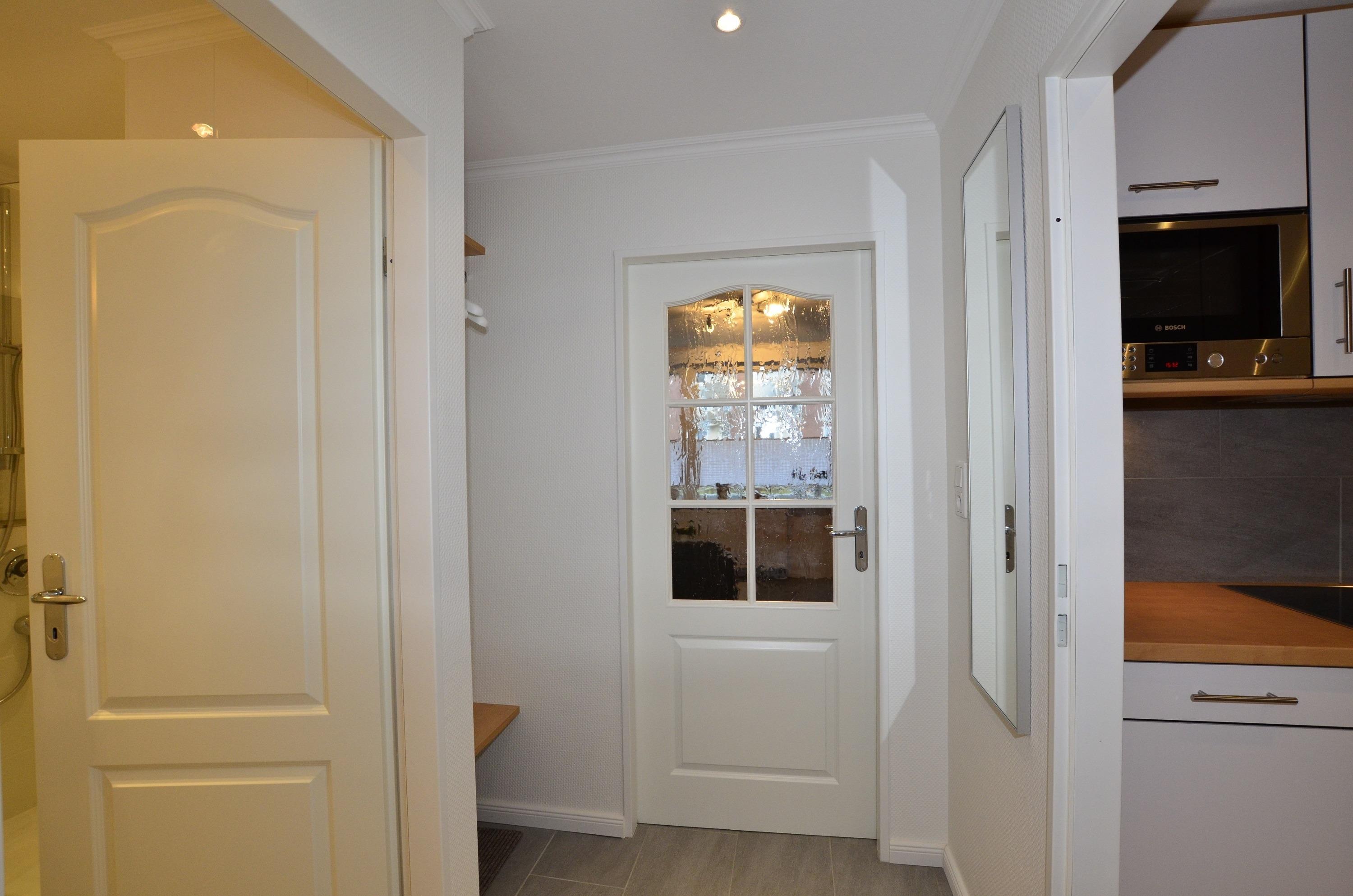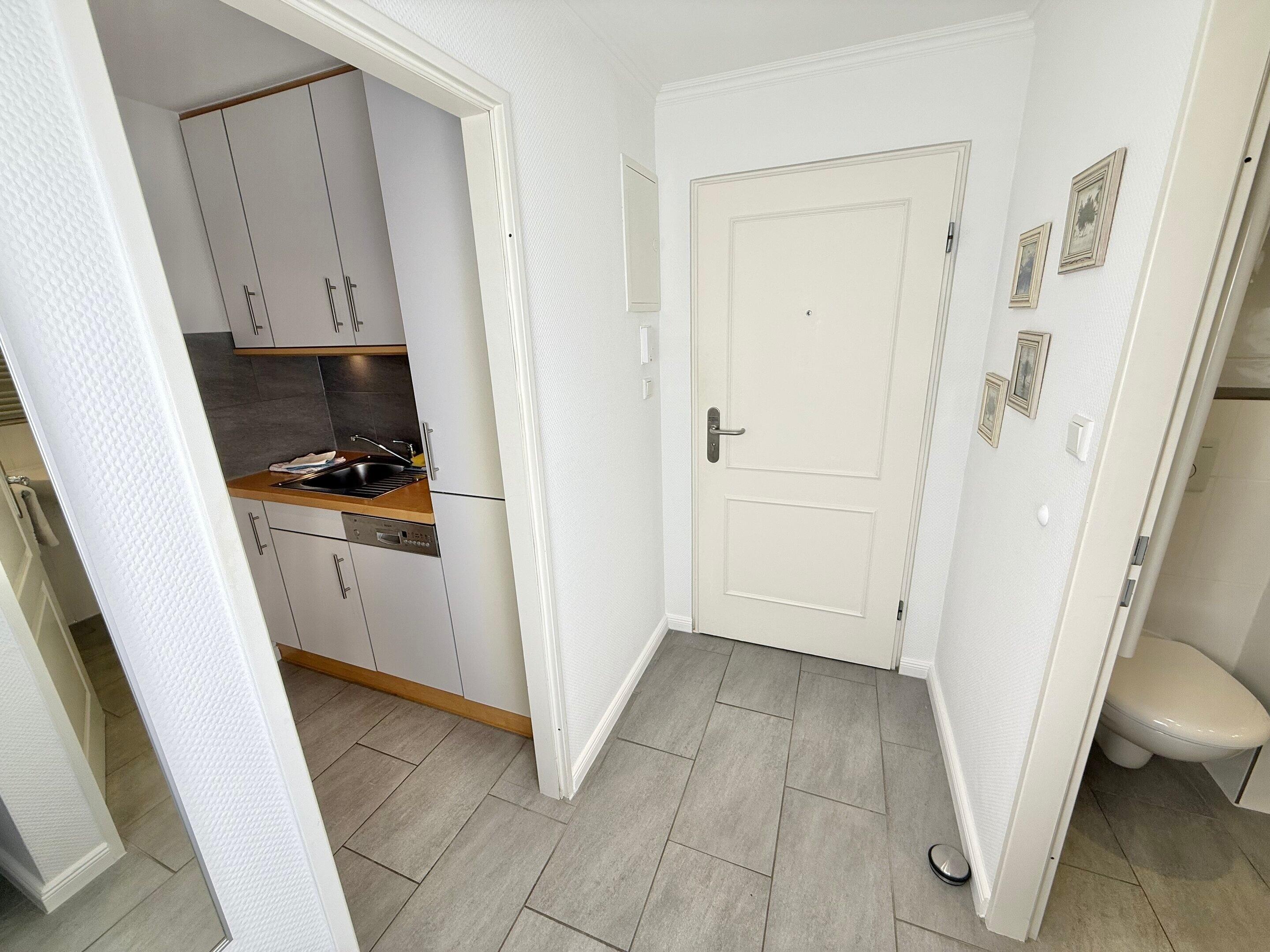 Vom Vorflur (mit Garderobe) gelangt man in das kombinierte Wohn-/Schlafzimmer (mit Austritt zum Balkon), in die separate Küche und in das moderne, neue Duschbad/WC.