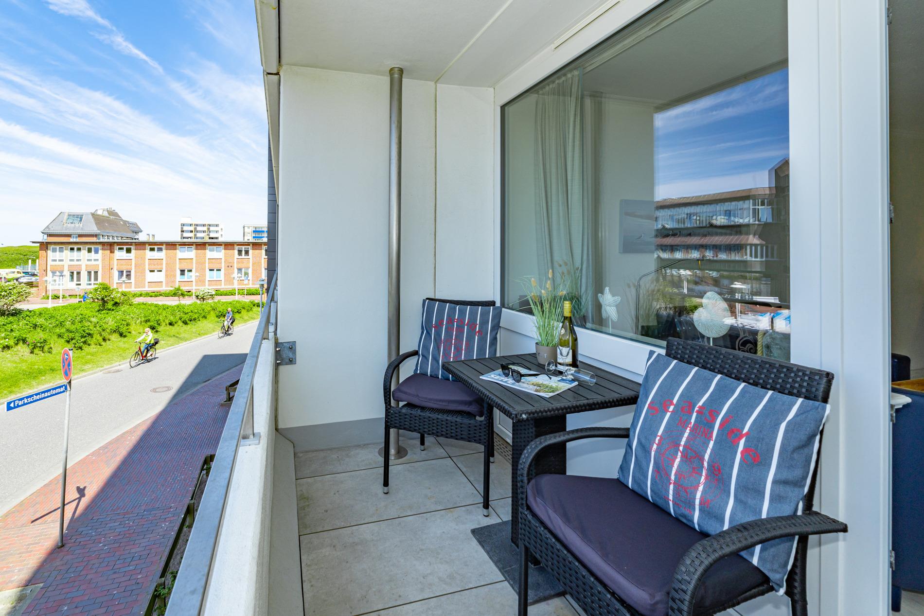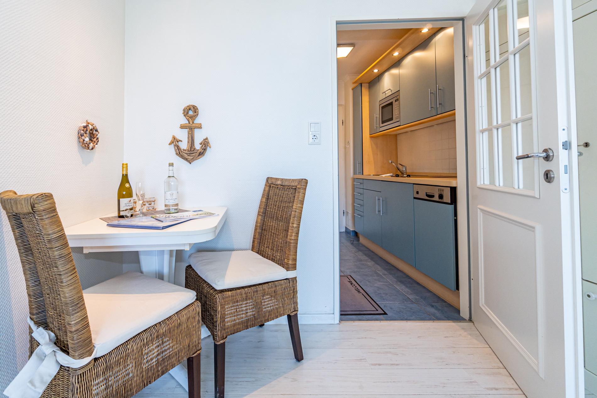 Gemütliche Ferienwohnung Meersalz in Westerland mit Balkon, moderner Küche und WLAN, ideal für 2 Personen und Haustiere.