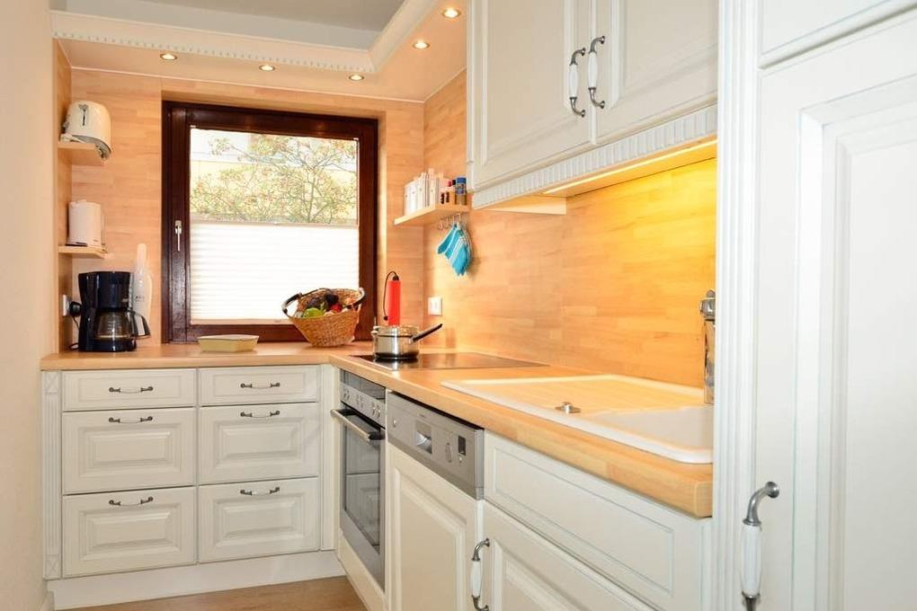Die separate Küche hat einen Geschirrspüler, ein Glaskeramik-Kochfeld mit 4 Kochstellen, einen Backofen, eine Mikrowelle und einen Kühlschrank mit 3-Sterne-Gefrierfach und ein Fenster. Kaffeemaschine, Wasserkocher und Toaster gehören zur Grundausstattung.