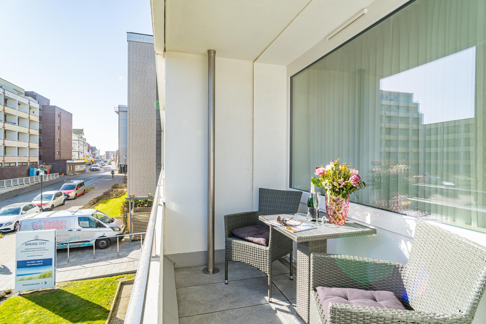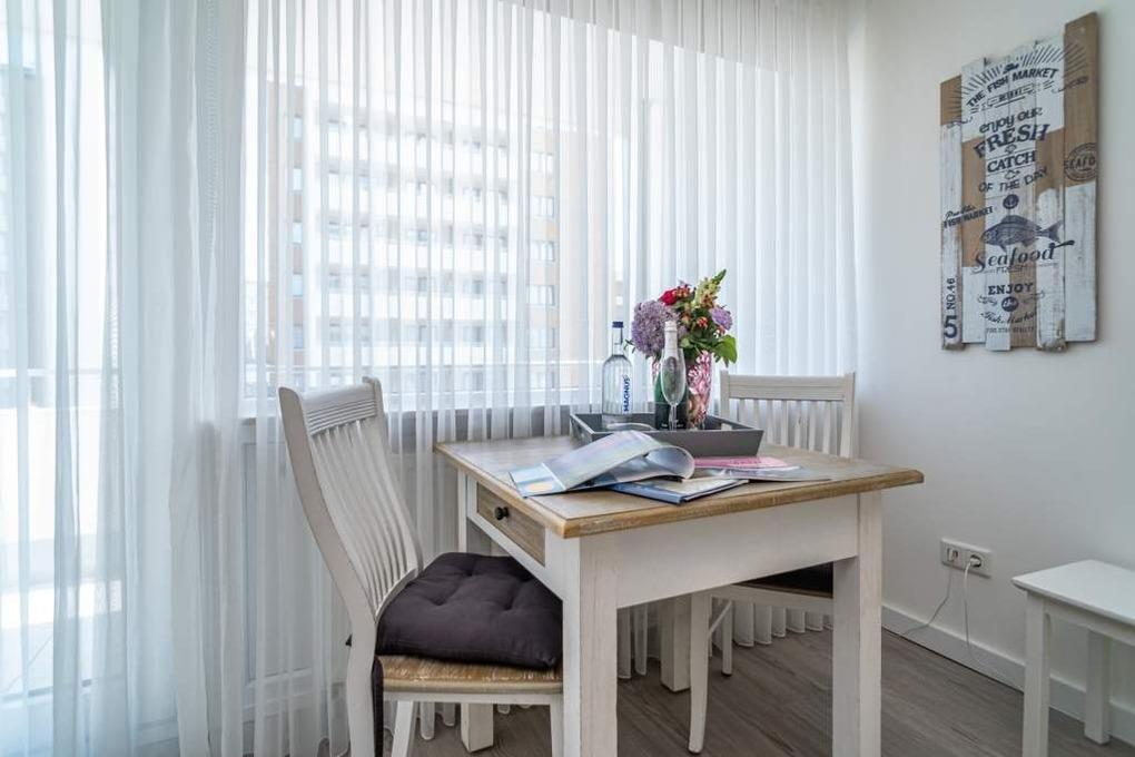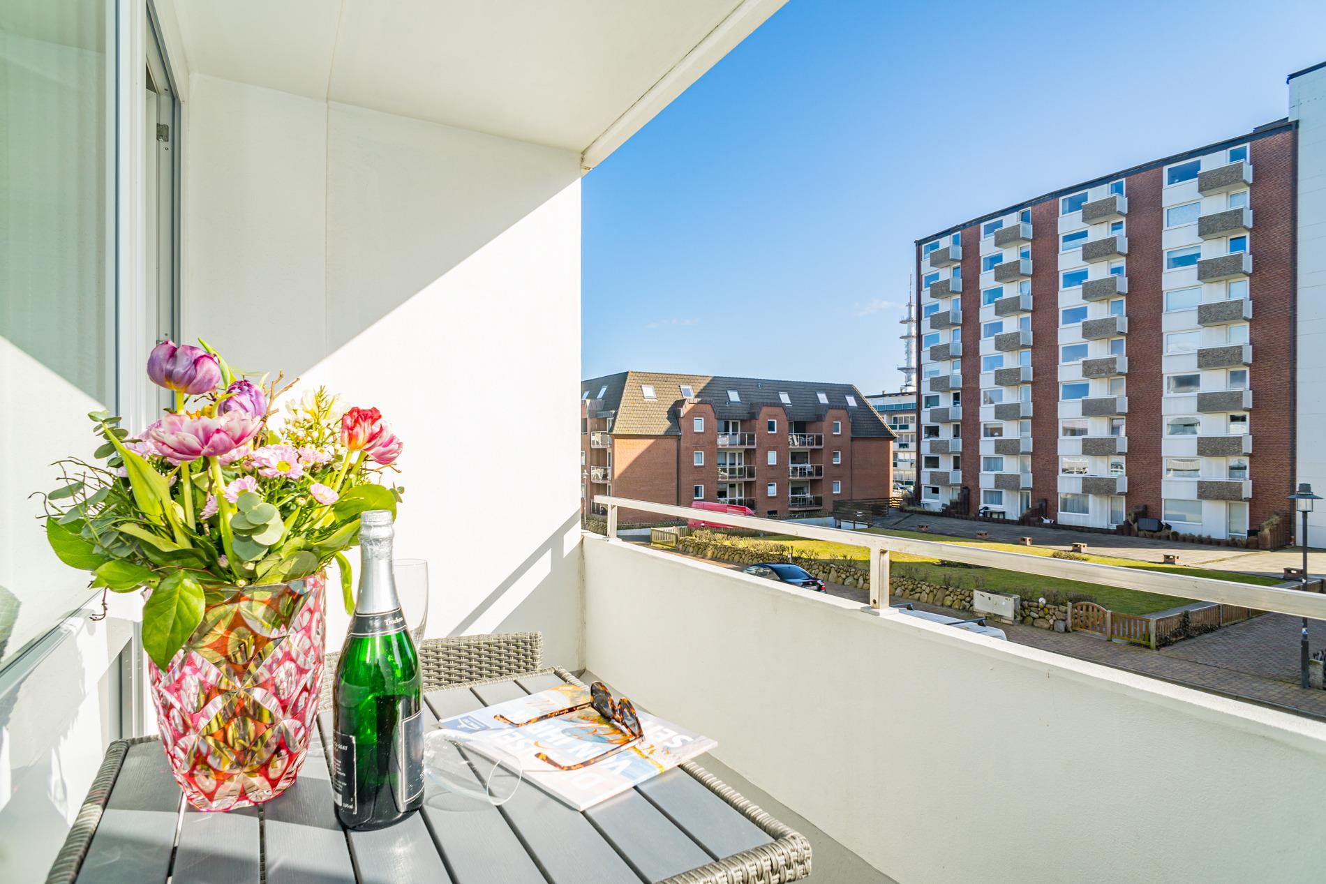 Moderne, gemütliche 1-Zimmer-Ferienwohnung in Westerland mit Balkon und WLAN, ideal für einen entspannten Aufenthalt zu zweit.