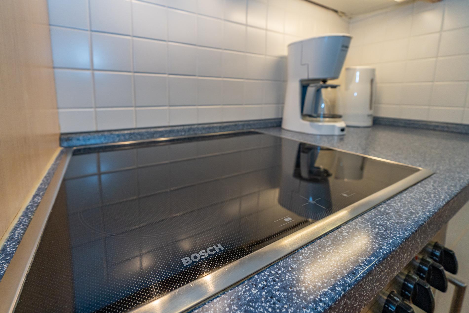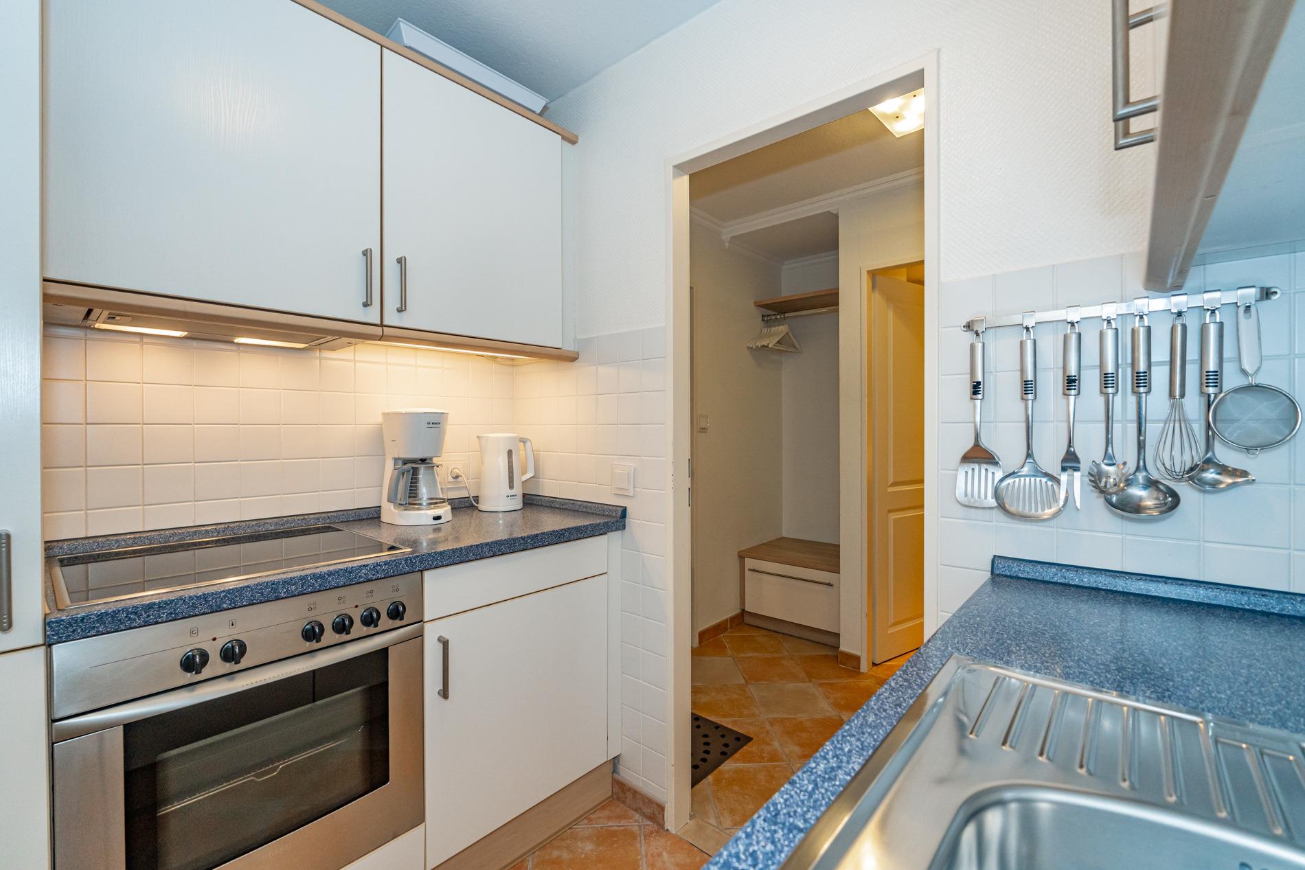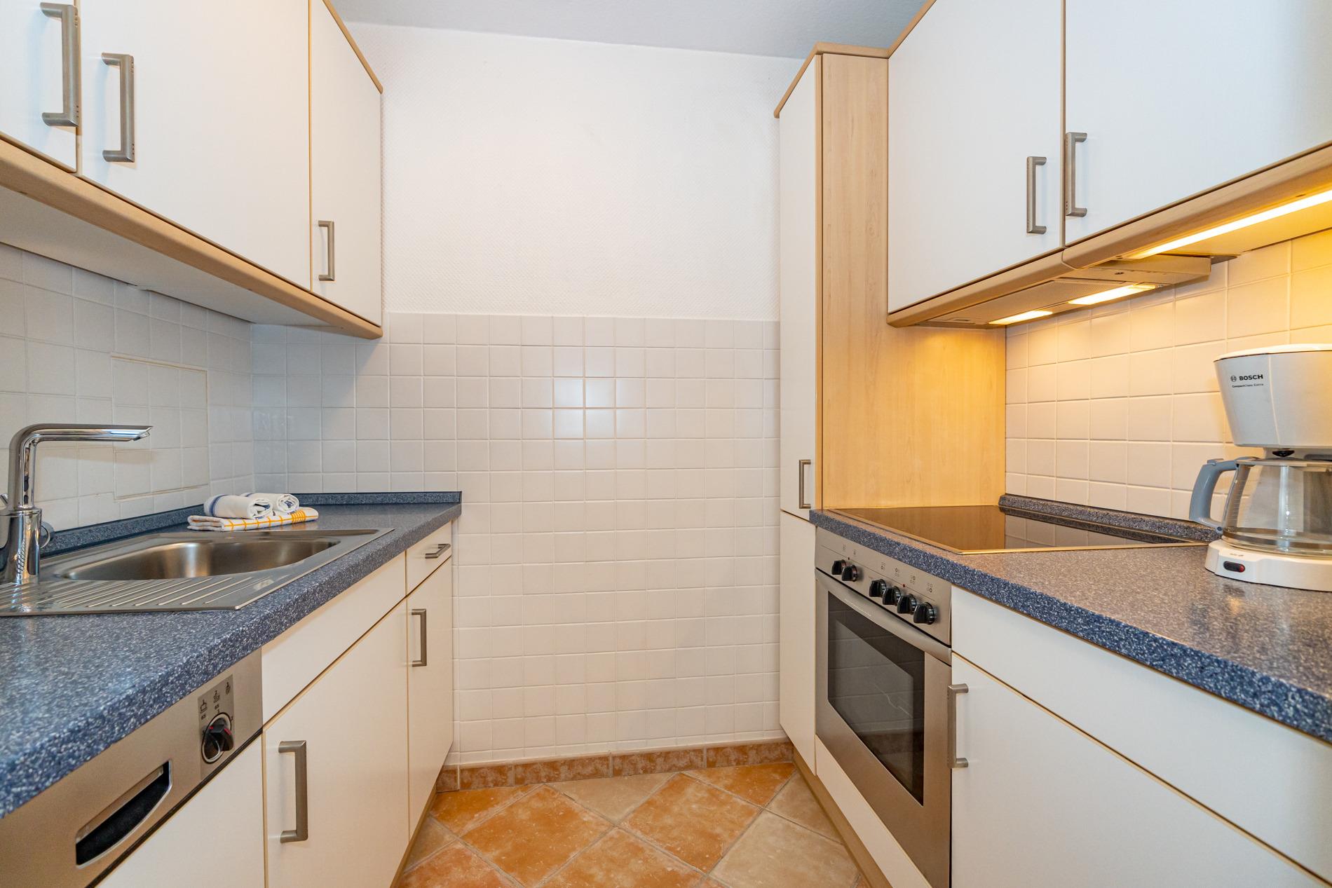 Die separate Küche hat einen Geschirrspüler, einen Herd mit Backofen, ein Cerankochfeld und einen Kühlschrank mit 3*-Gefrierfach.