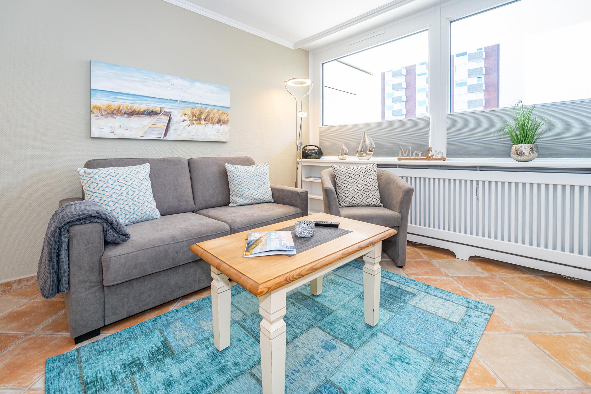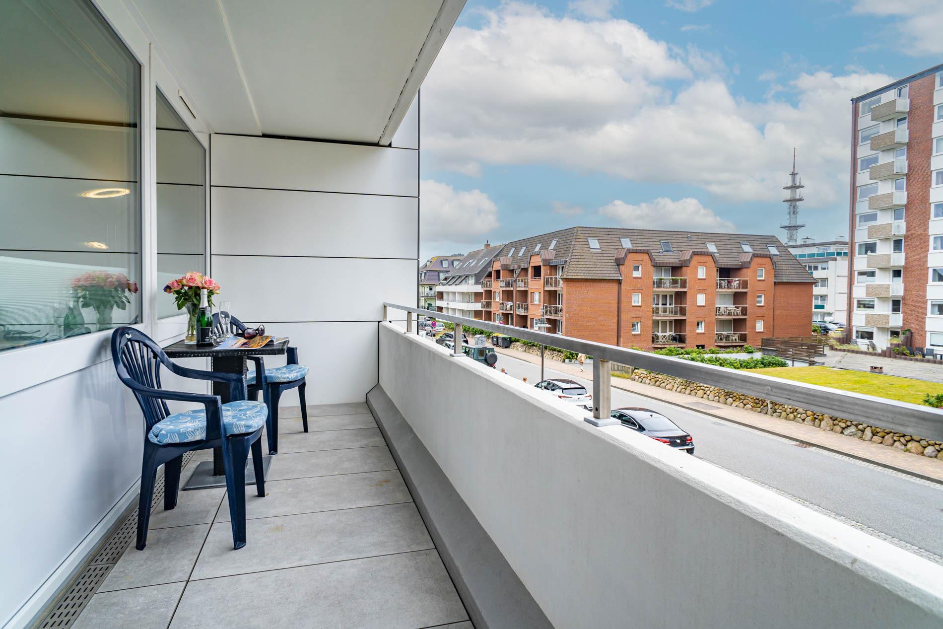 Gemütliche Ferienwohnung in Westerland mit Balkon, moderner Küche und WLAN, ideal für erholsame Tage zu zweit.