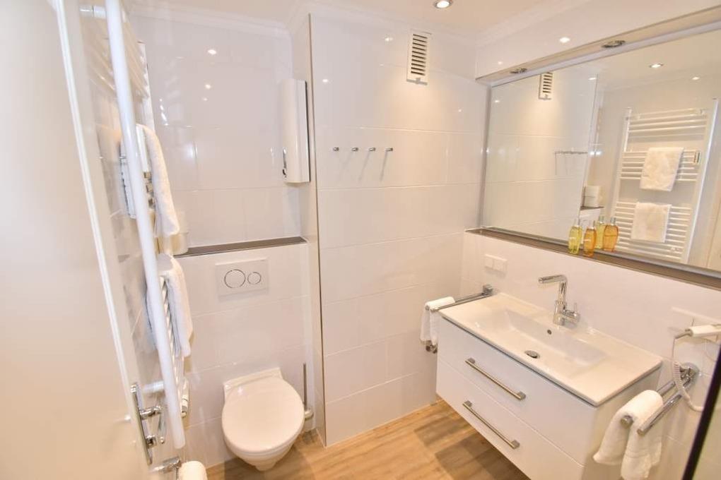 Im neuen Bad befinden sich eine Dusche, ein WC und ein Waschtisch.