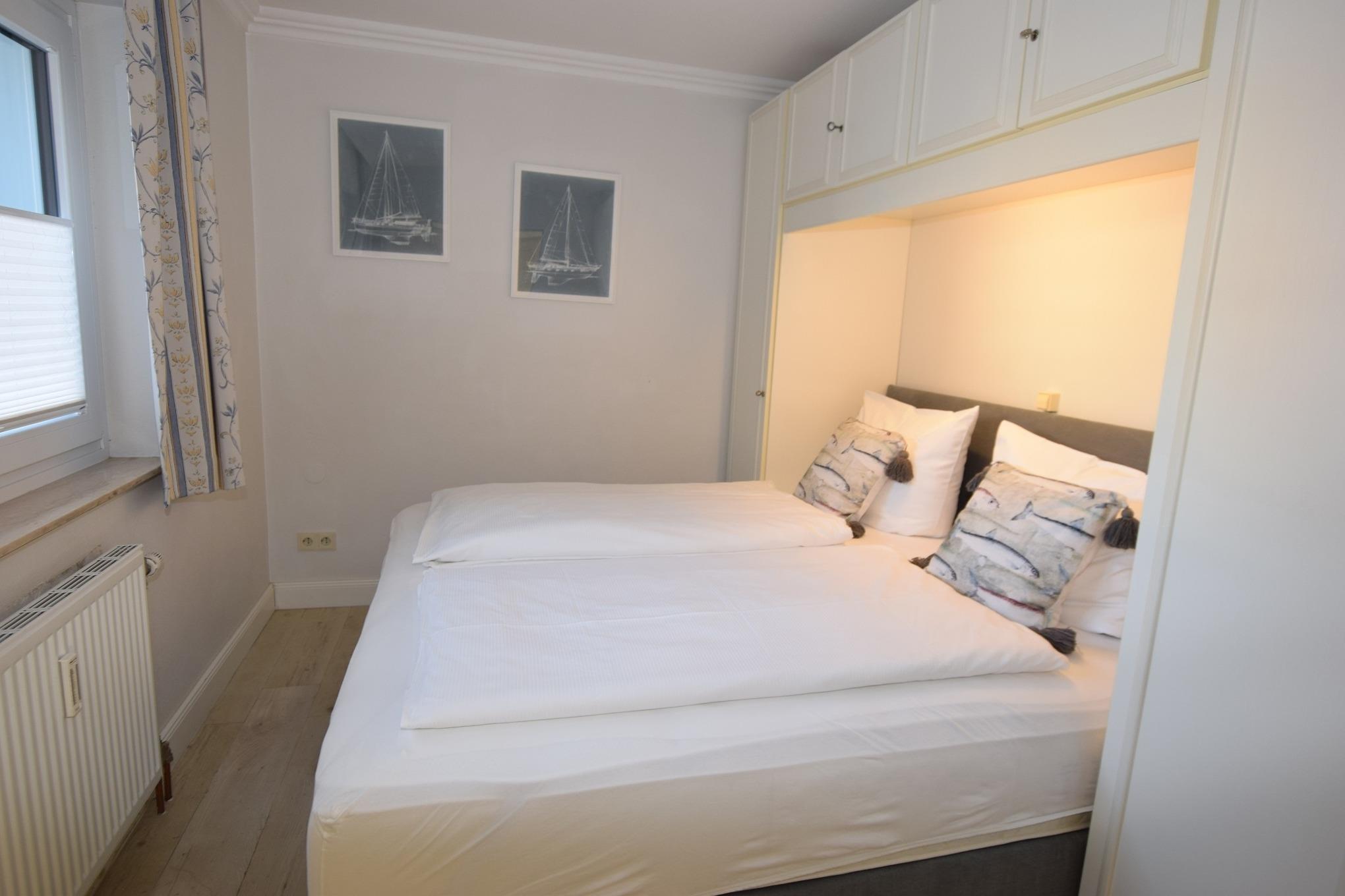 Das Schlafzimmer ist mit einem komfortablen Boxspringbett (1,80 x 2,00m), das mit zwei Einzelmatratzen und Toppern für besten Schlafkomfort ausgestattet ist.