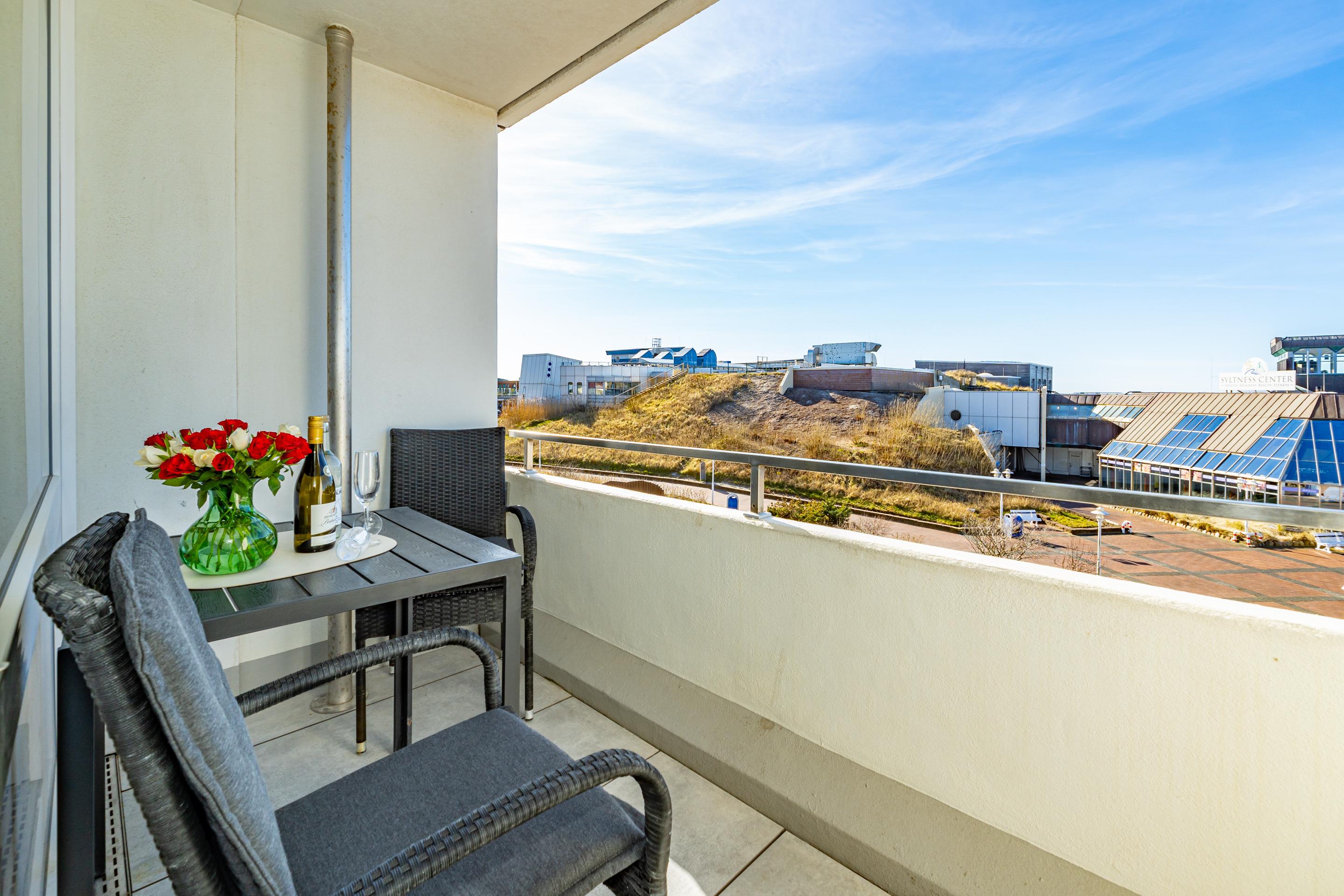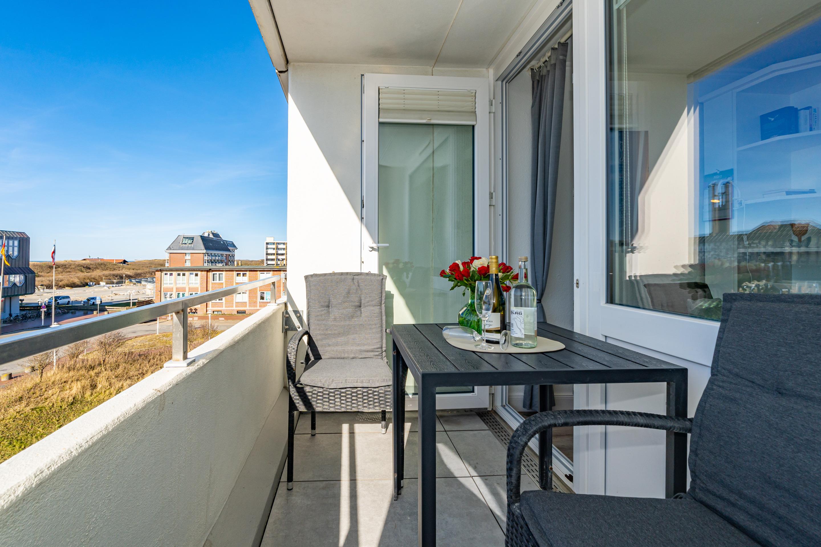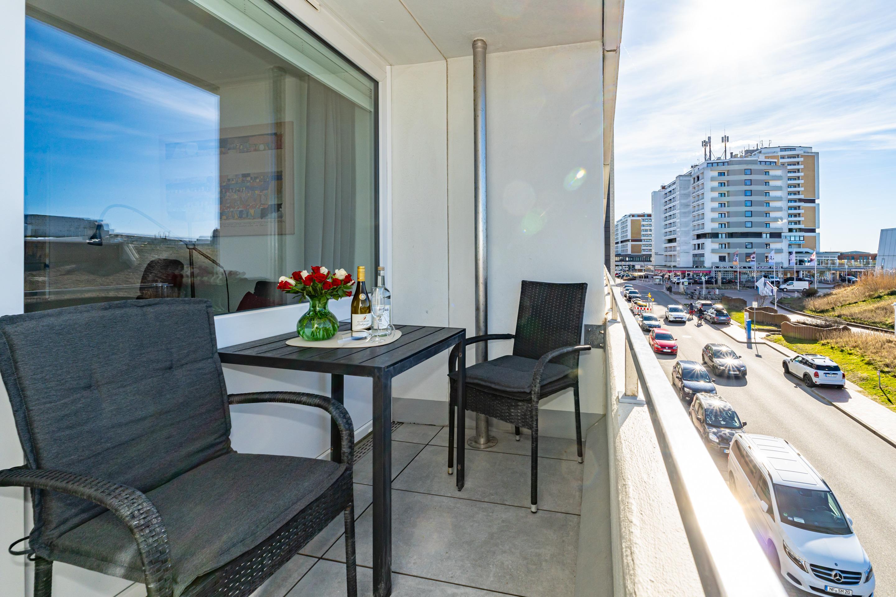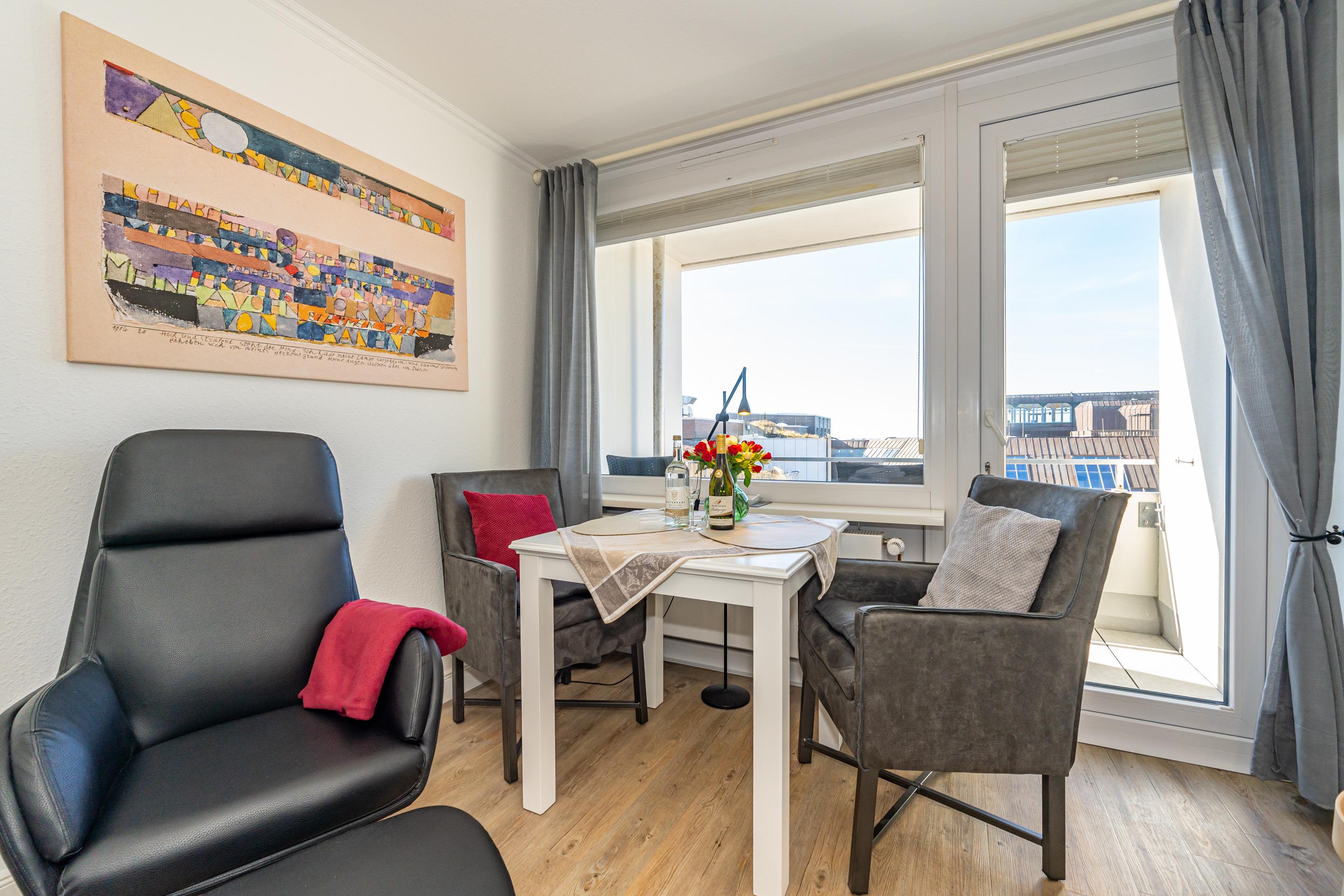 Moderne 1-Zimmer-Ferienwohnung mit Balkon und Meerblick in Westerland, ideal für 2 Personen.