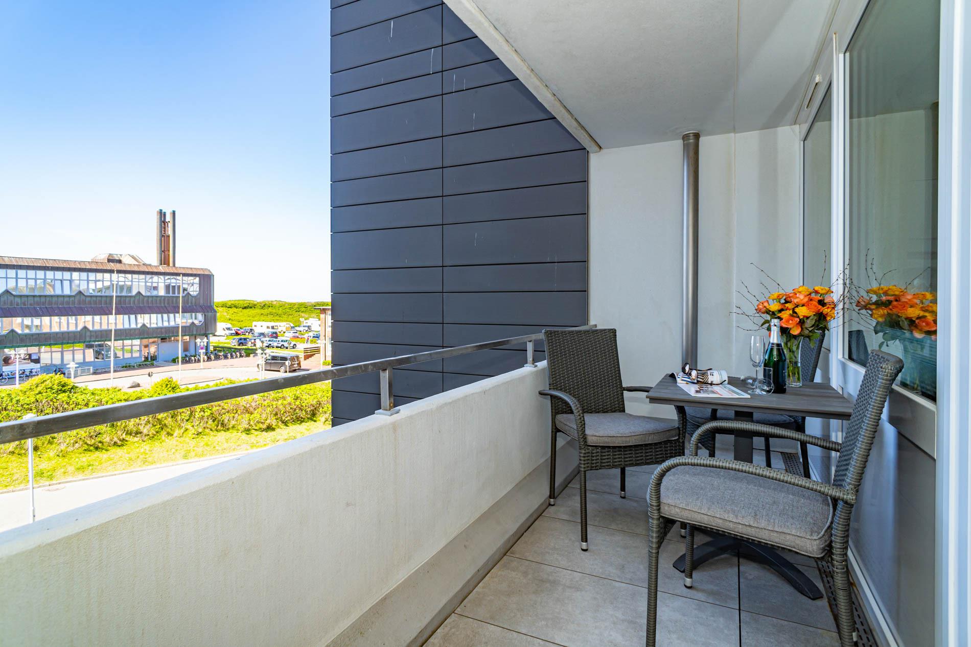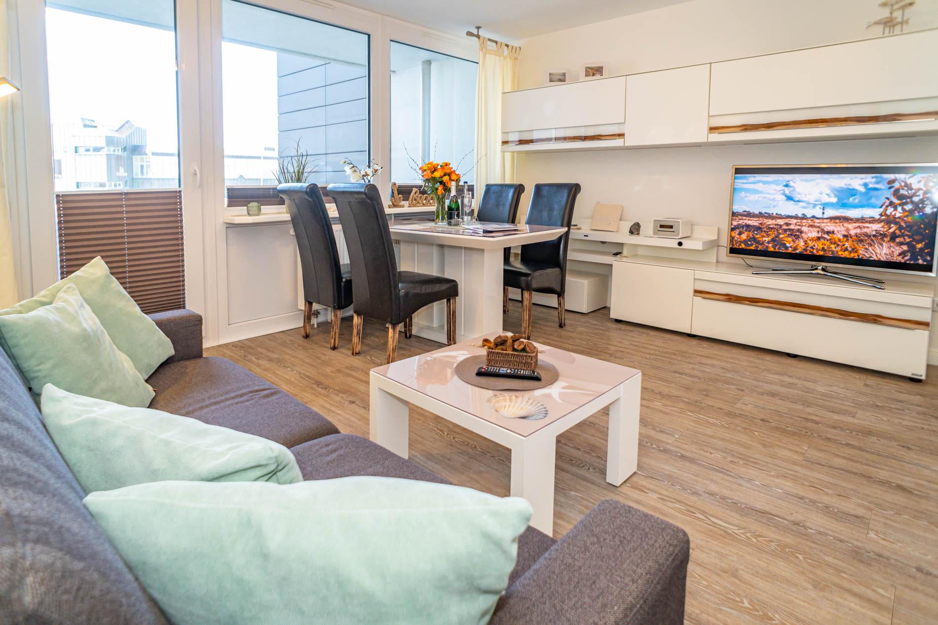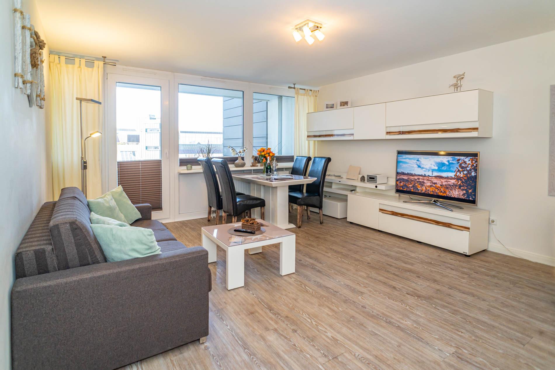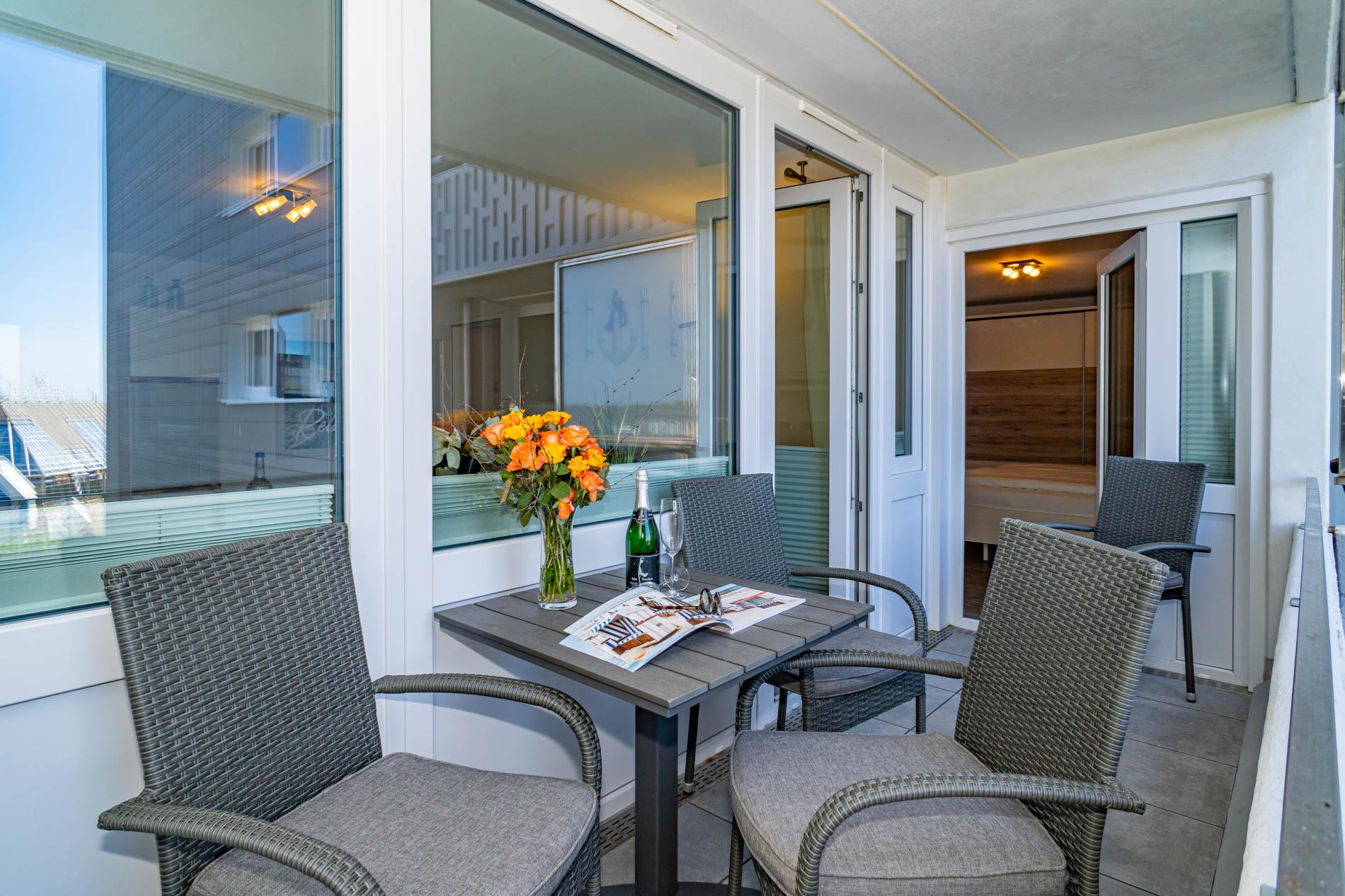 Moderne 2-Zimmer-Ferienwohnung mit Balkon und Meerblick in Westerland, ideal für bis zu 4 Personen.
