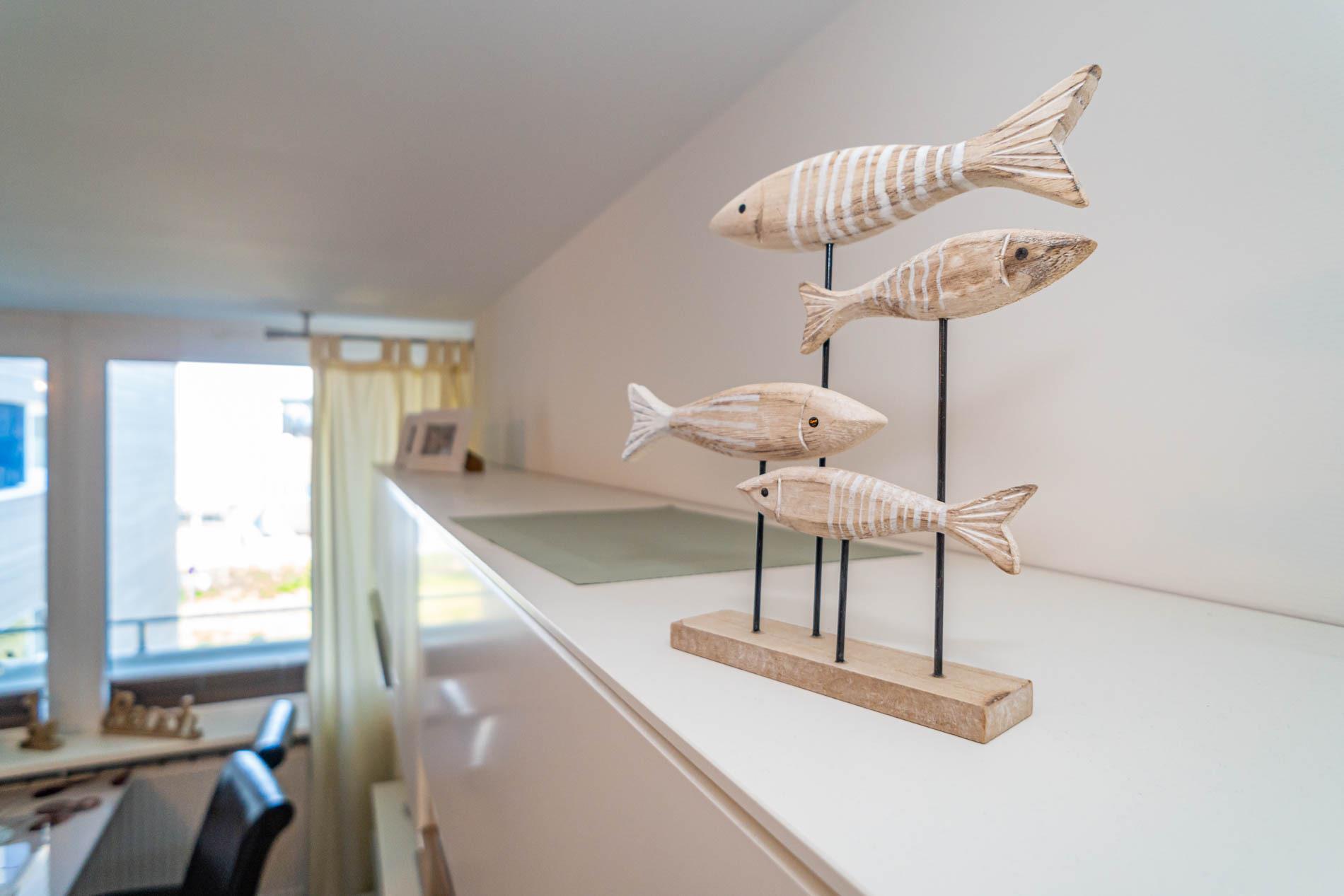 Hochwertig und modern eingerichtete 2-Zimmer-Nichtraucher-Ferienwohnung (ca. 59 qm) in der 2. Etage zur Seeseite mit Westloggia (Nachmittagssonne, mit Balkonmöbeln und Auflagen) für max. 4 Personen.