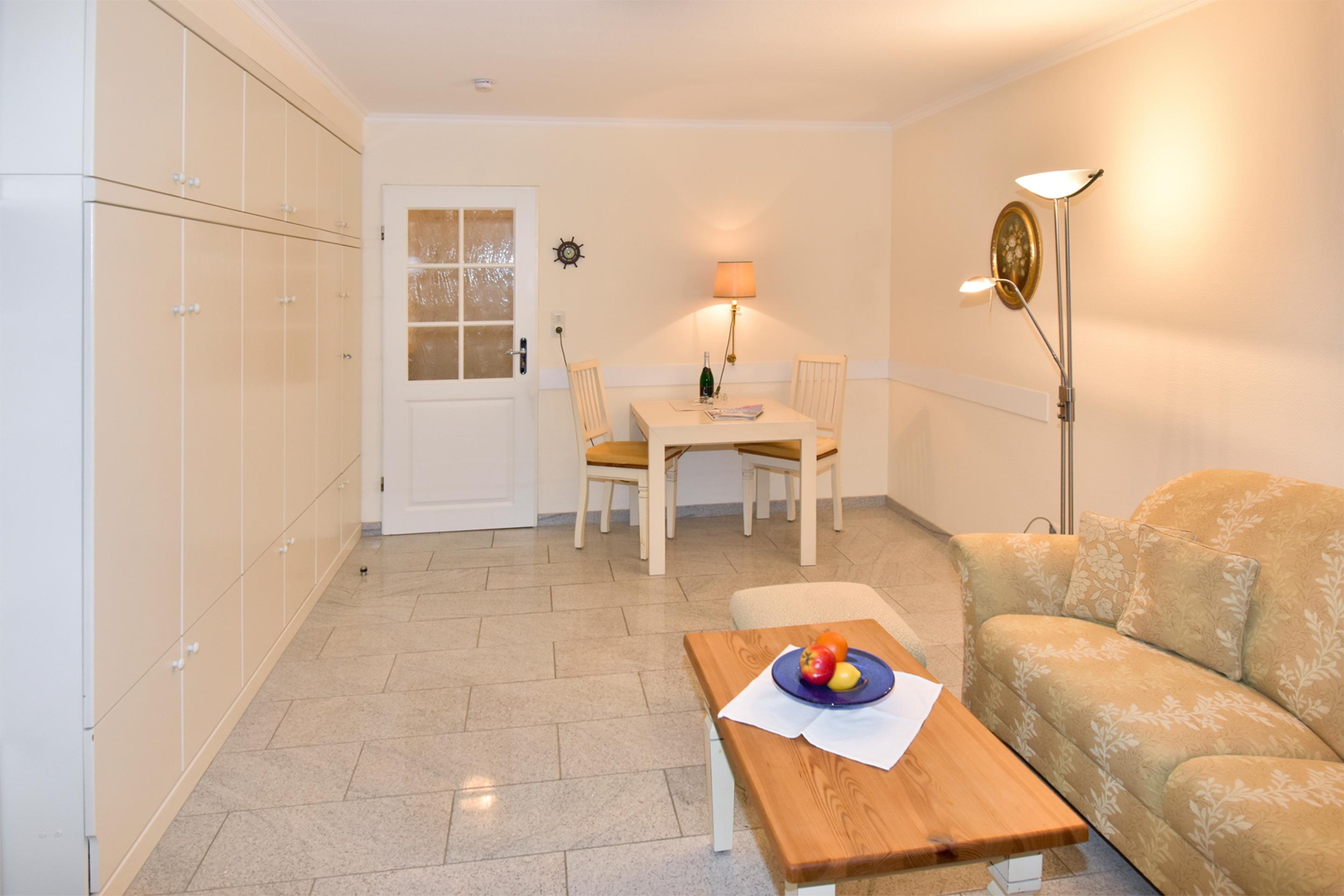 Gemütliches 1-Zimmer-Nichtraucher-Appartement (ca. 32 qm) in der 2. Etage zur Seeseite mit Westloggia (Nachmittagssonne, mit Balkonmöbeln und Auflagen) für max. 2 Personen.