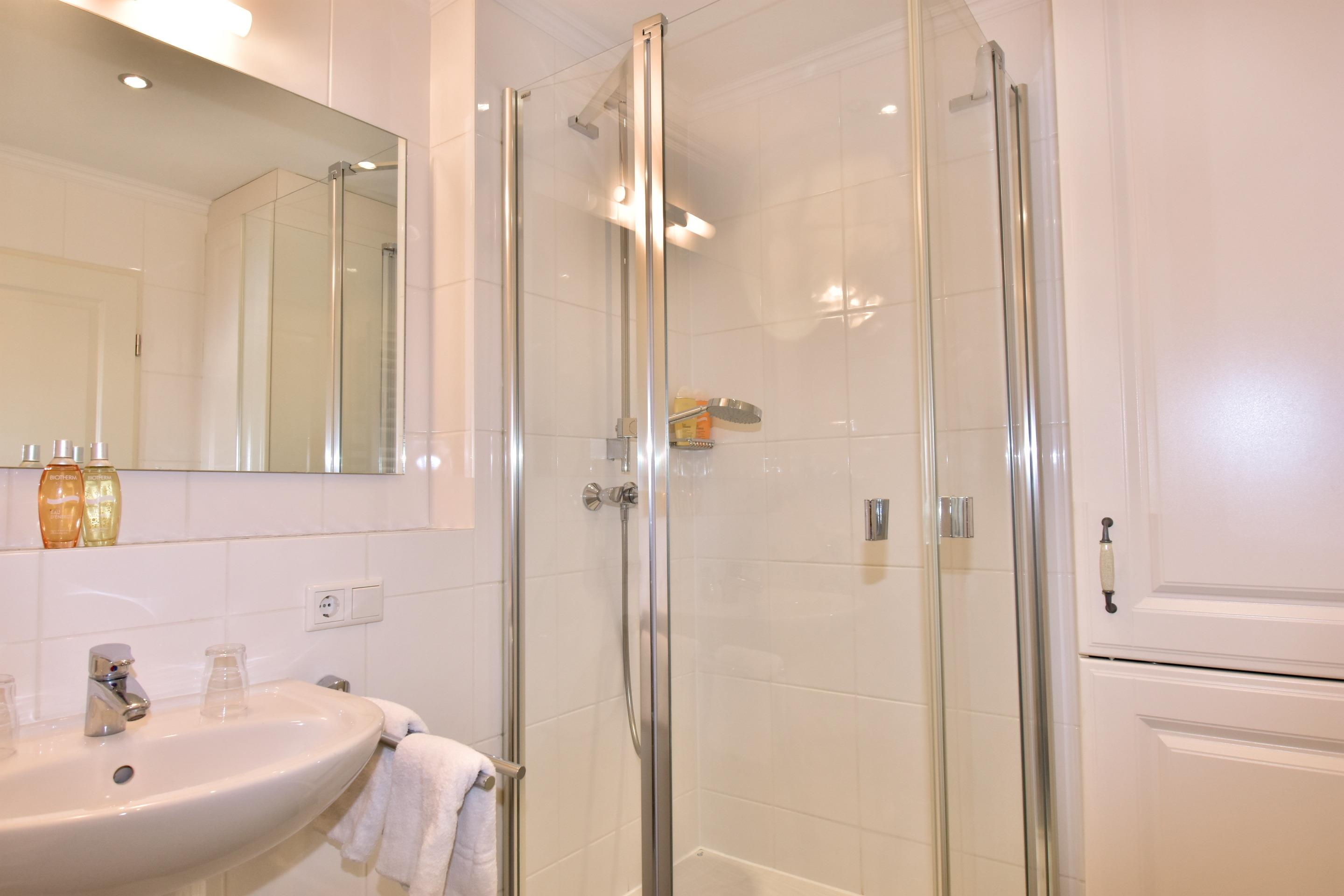 Im neuen Bad befinden sich eine Dusche, ein WC und ein Waschtisch.