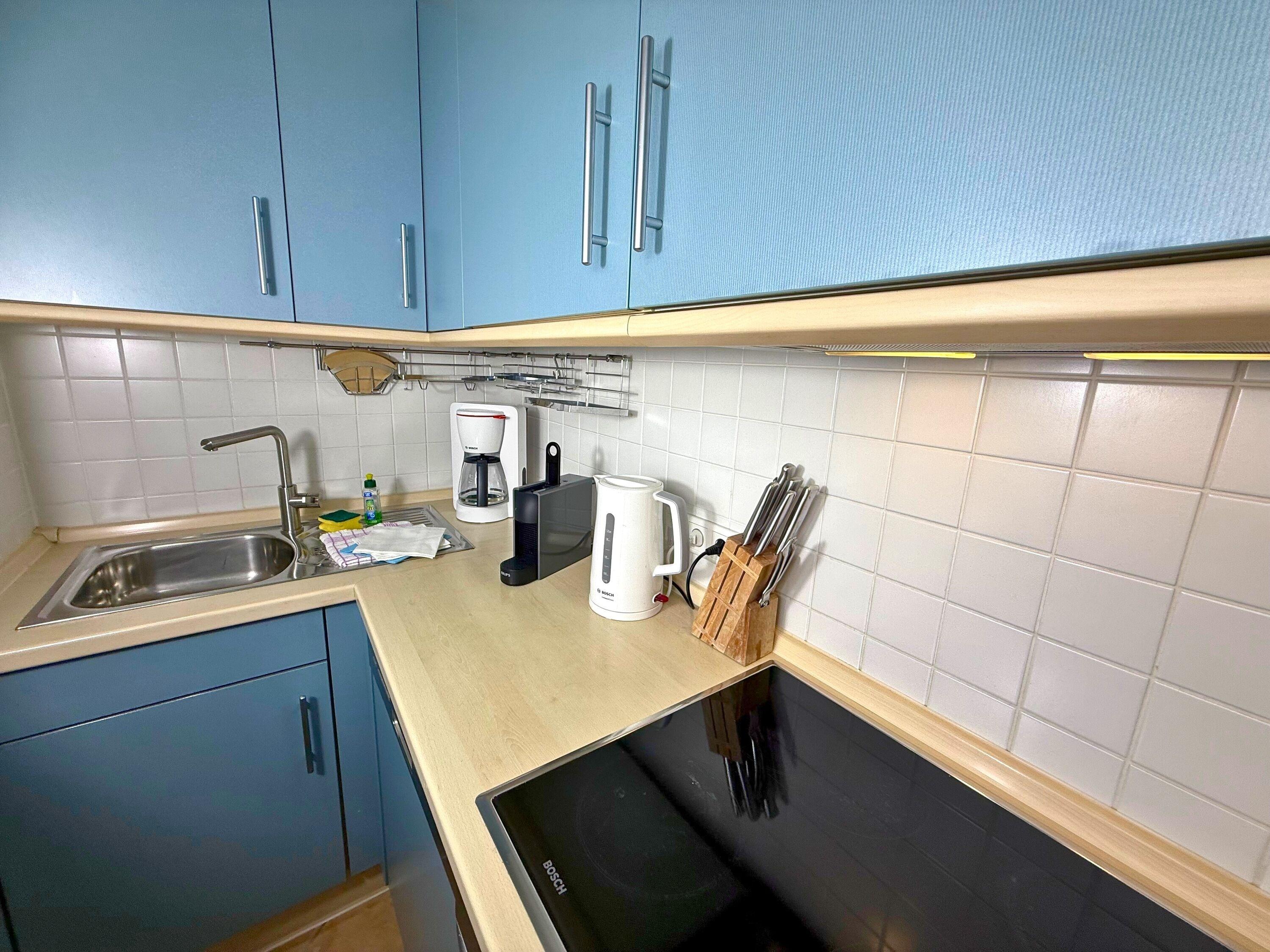 Die Küche besitzt einen Geschirrspüler, einen Herd mit Dampfabzugshaube, eine Nespresso-Maschine, ein Cerankochfeld, einen Backofen und einen Kühlschrank mit 3* Gefrierfach. Kaffeemaschine, Wasserkocher und Toaster gehören zur Grundausstattung.