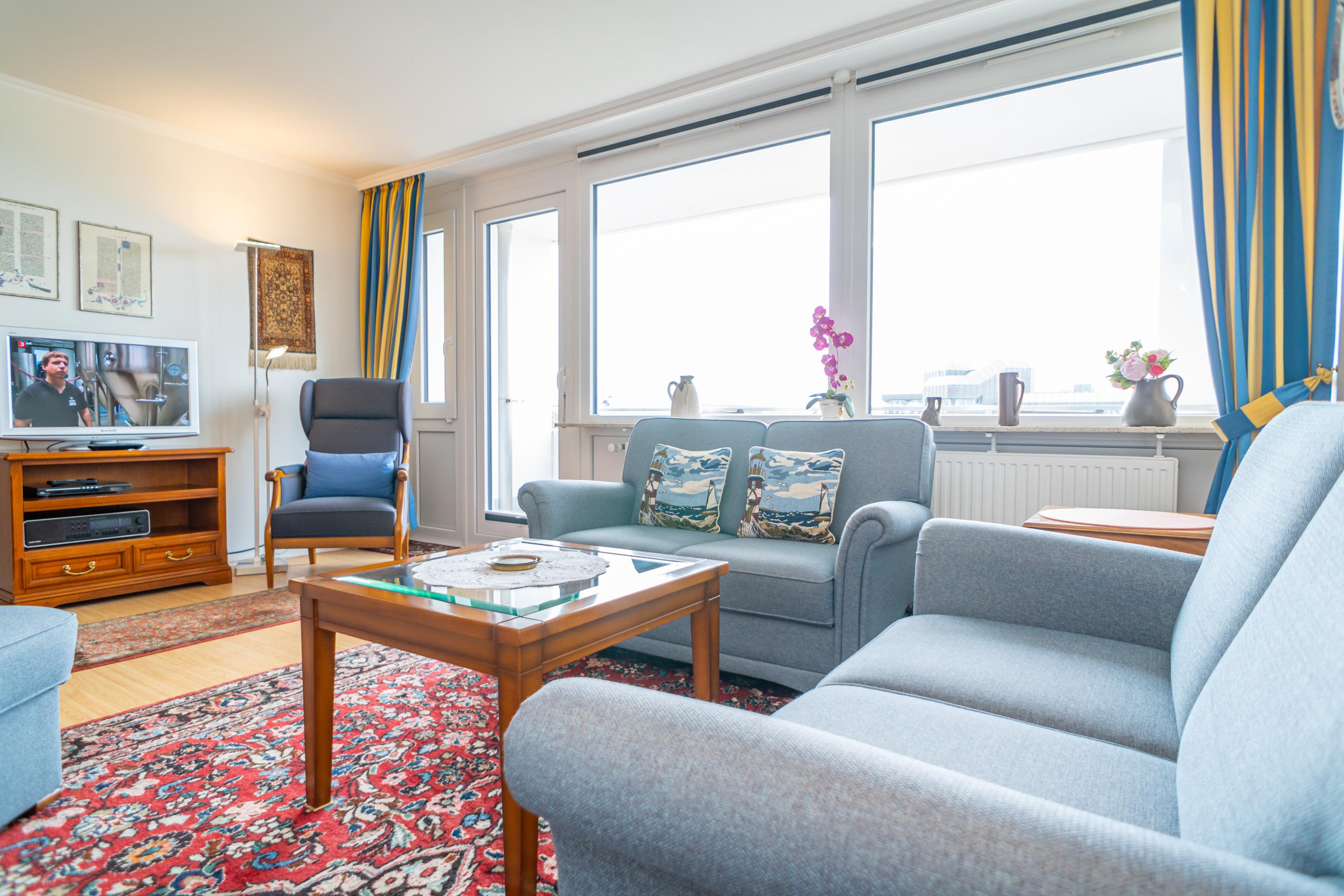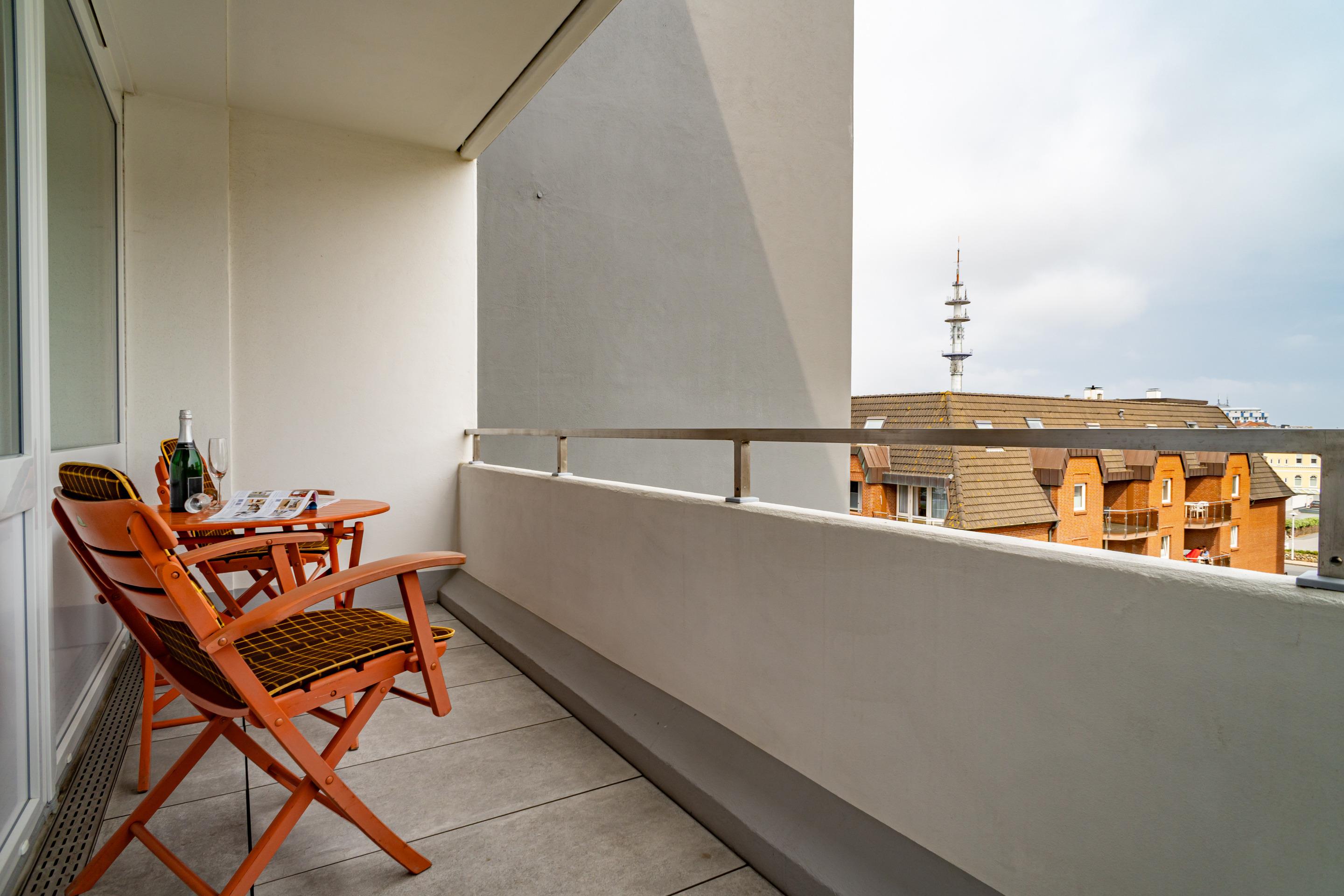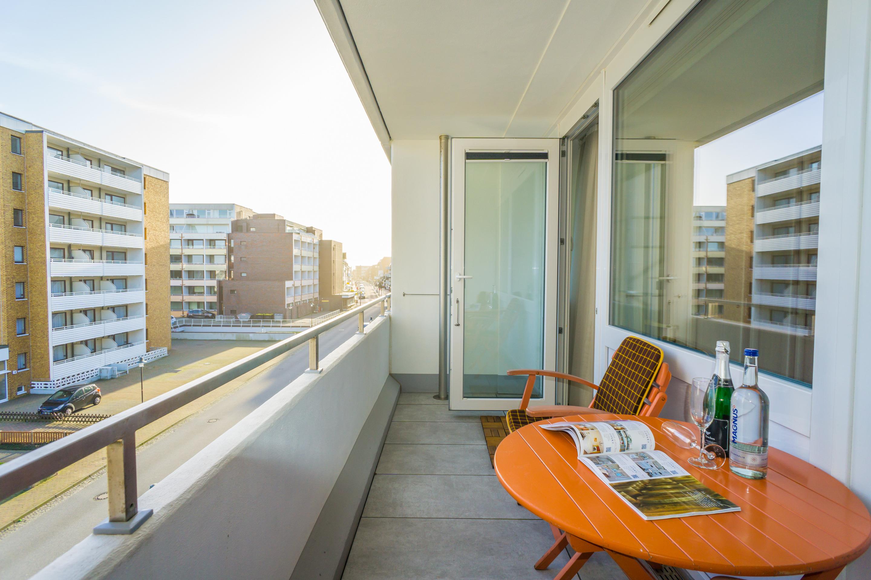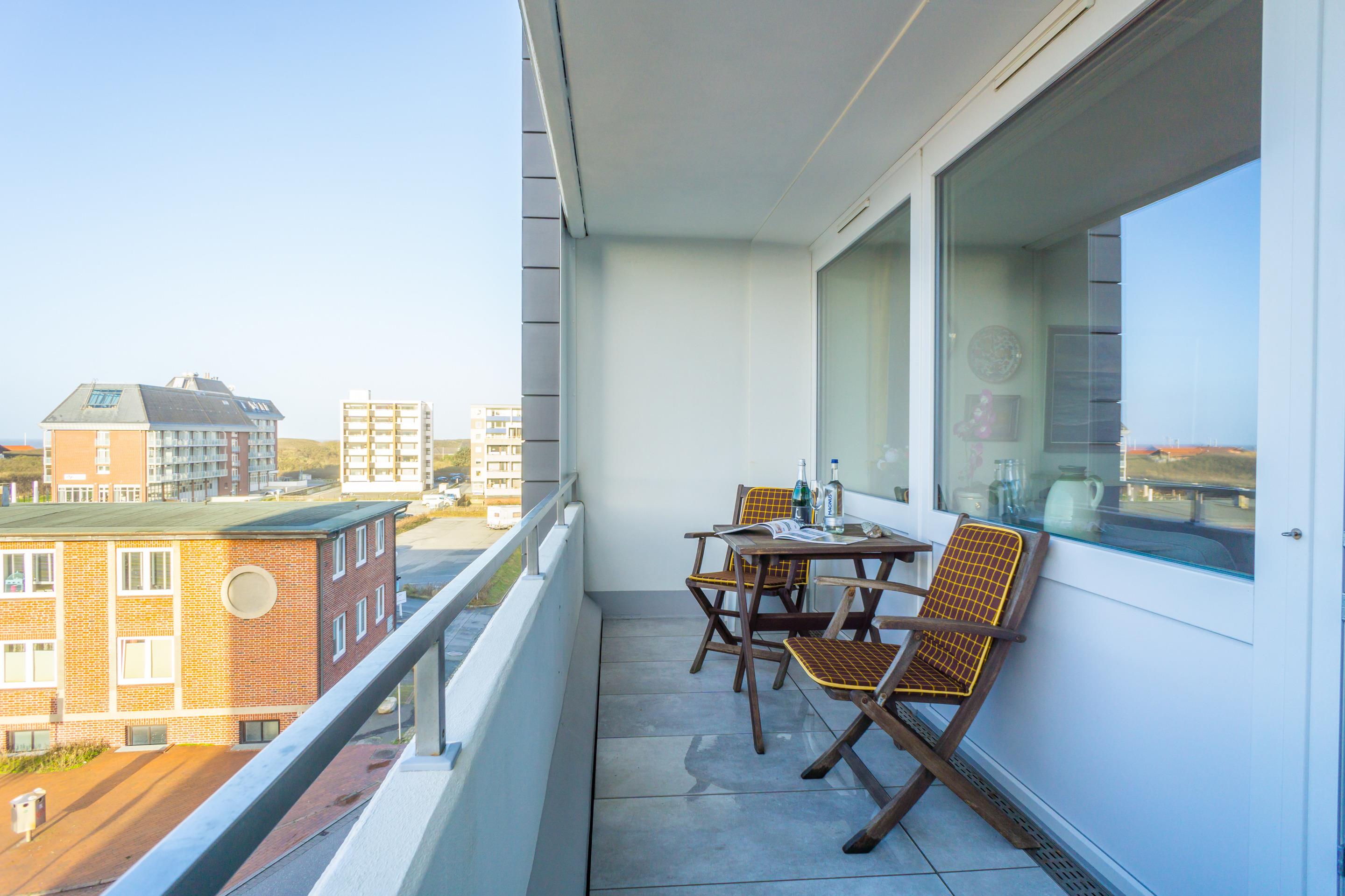Komfortable 2-Zimmer-Ferienwohnung in Westerland mit Meerblick, zwei Bädern und West- sowie Ostloggia für erholsame Tage.