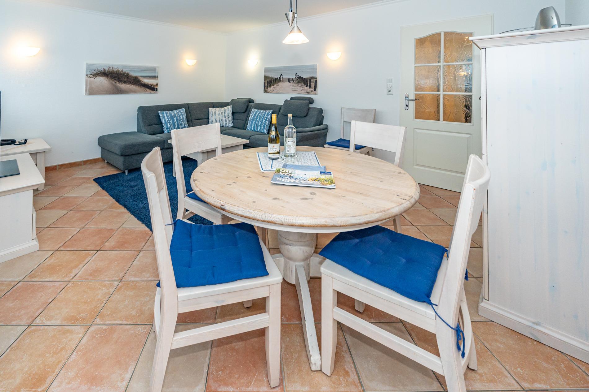Der Wohnraum besteht aus einer bequemen Sitzgarnitur (große Eck-Couch ohne Schlaffunktion), einem Essplatz, Kabel-Flachbild-TV, Telefon.