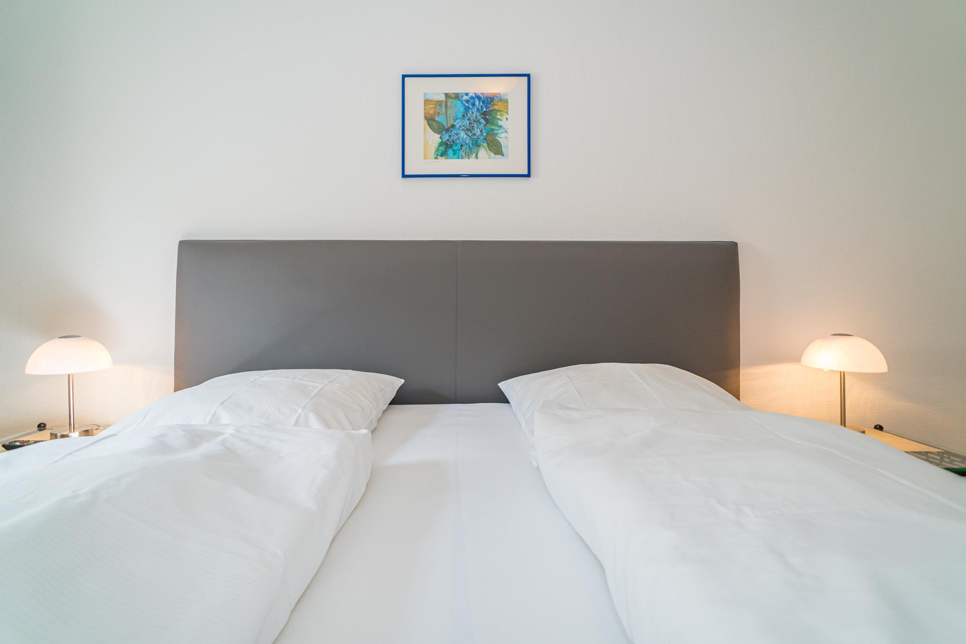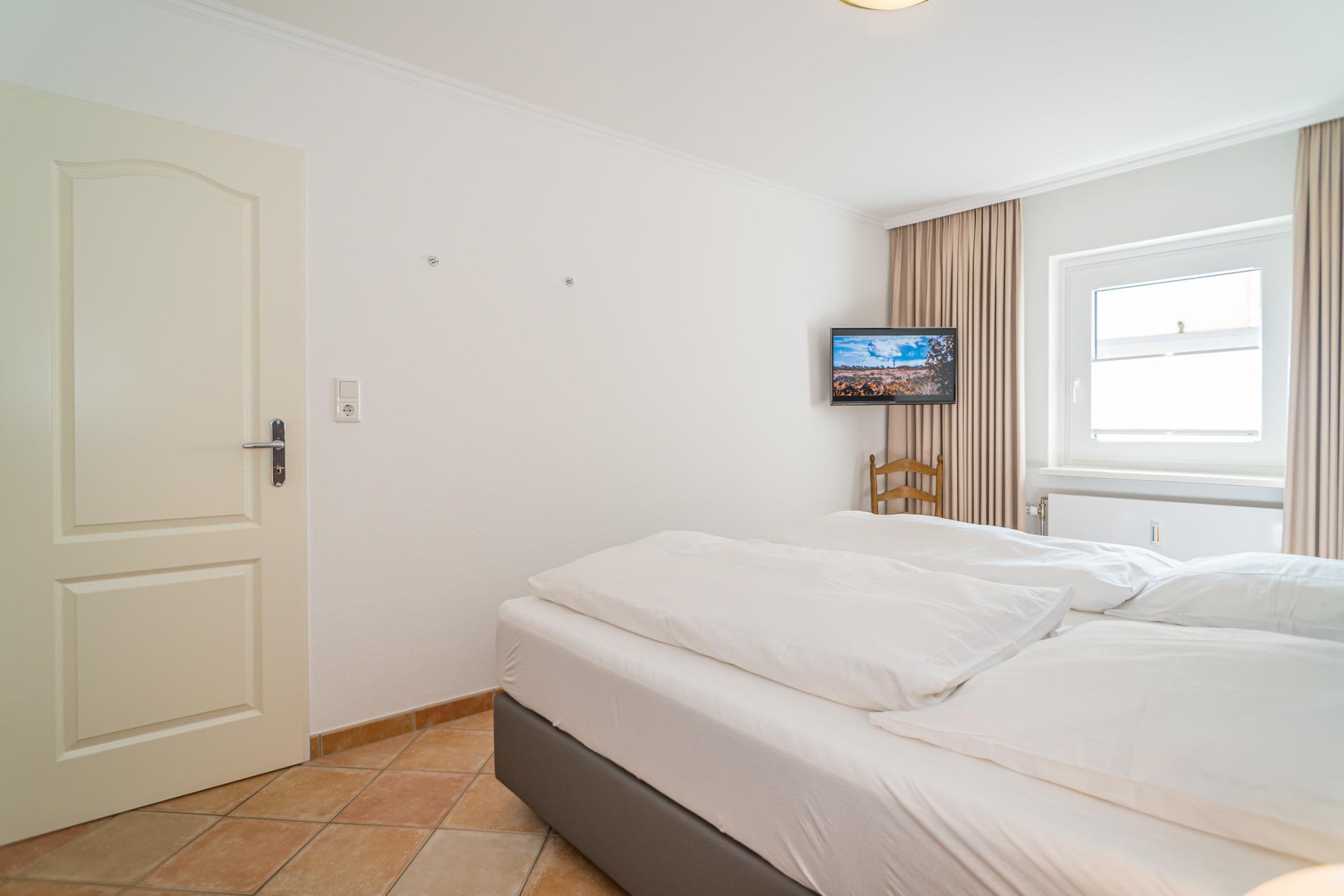 Das große Schlafzimmer ist mit einem bequemen Doppelboxspringbett (200x200cm, Einzelmatratzen mit durgehendem Topper) und das kleine Schlafzimmer mit zwei über Eck stehenden Einzelbetten ausgestattet.