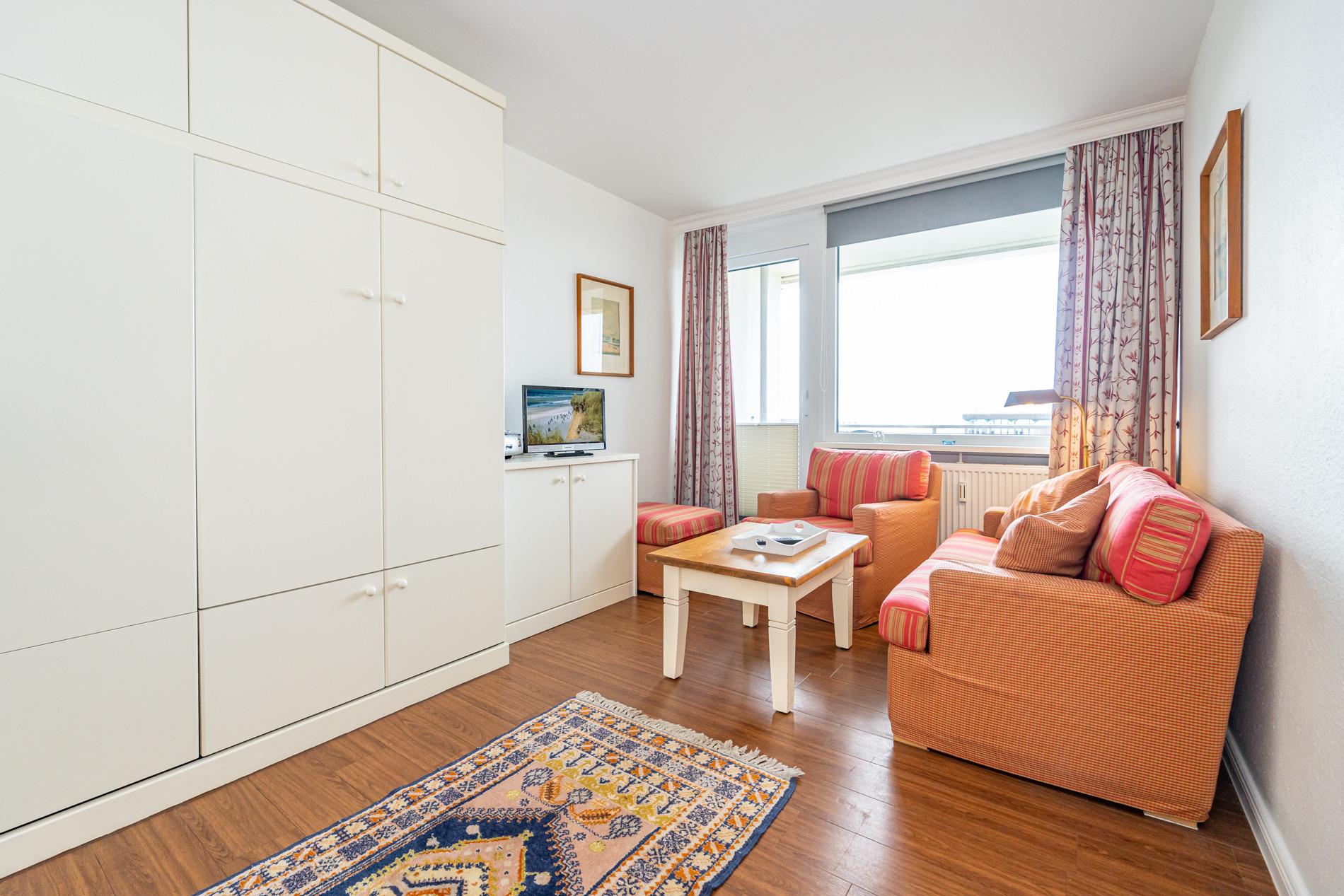 Gemütliche 1-Zimmer-Ferienwohnung mit Meerblick und Balkon in Westerland, ideal für 2 Personen.
