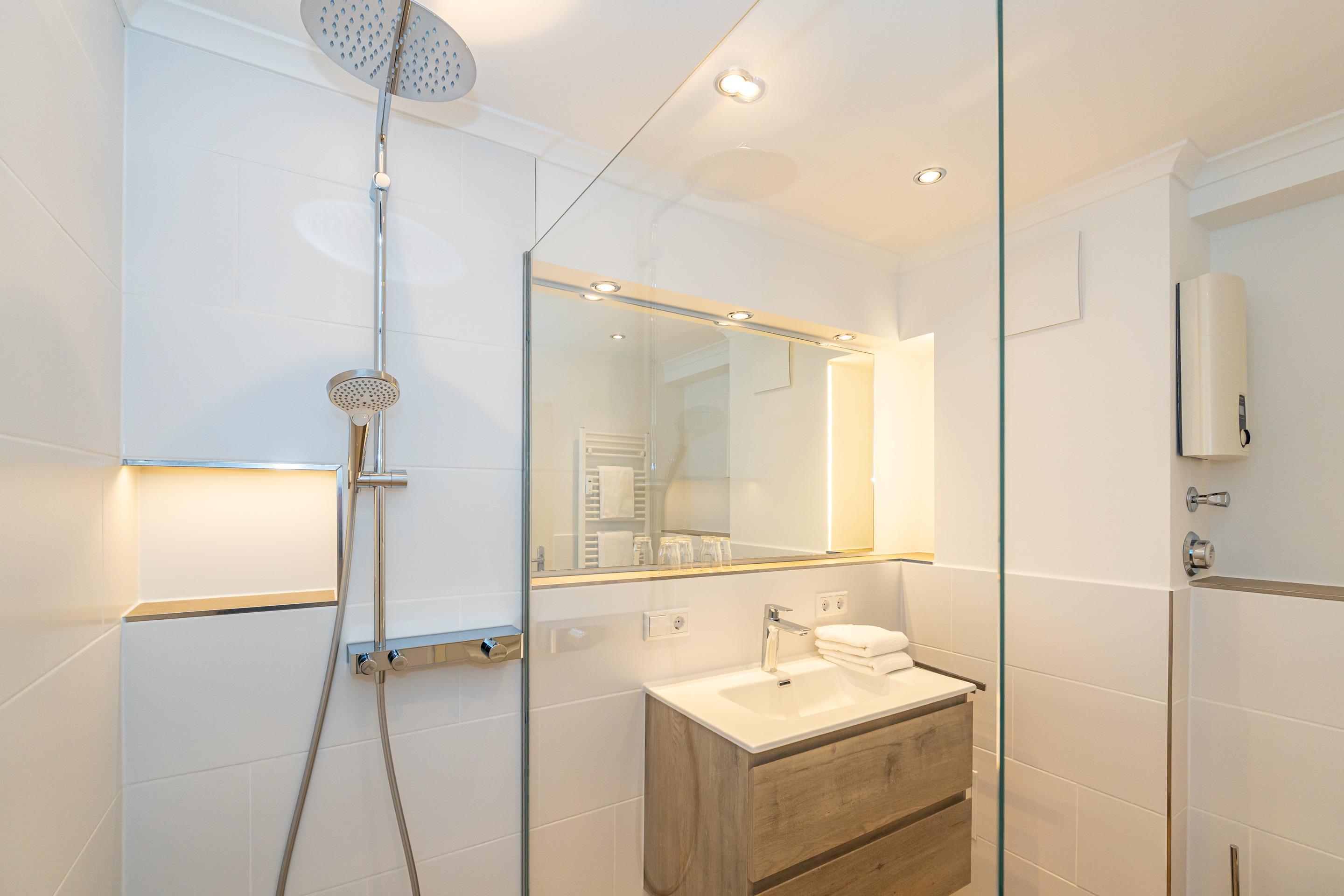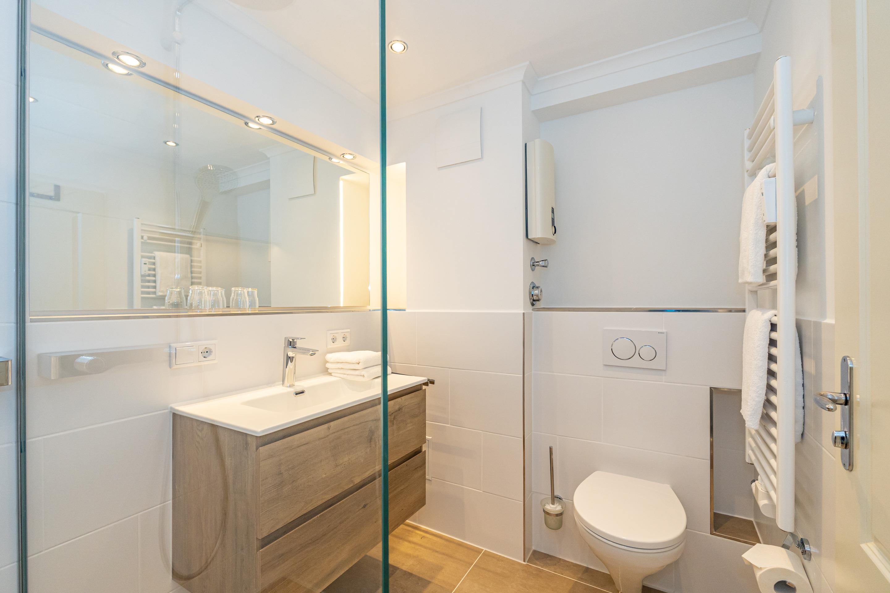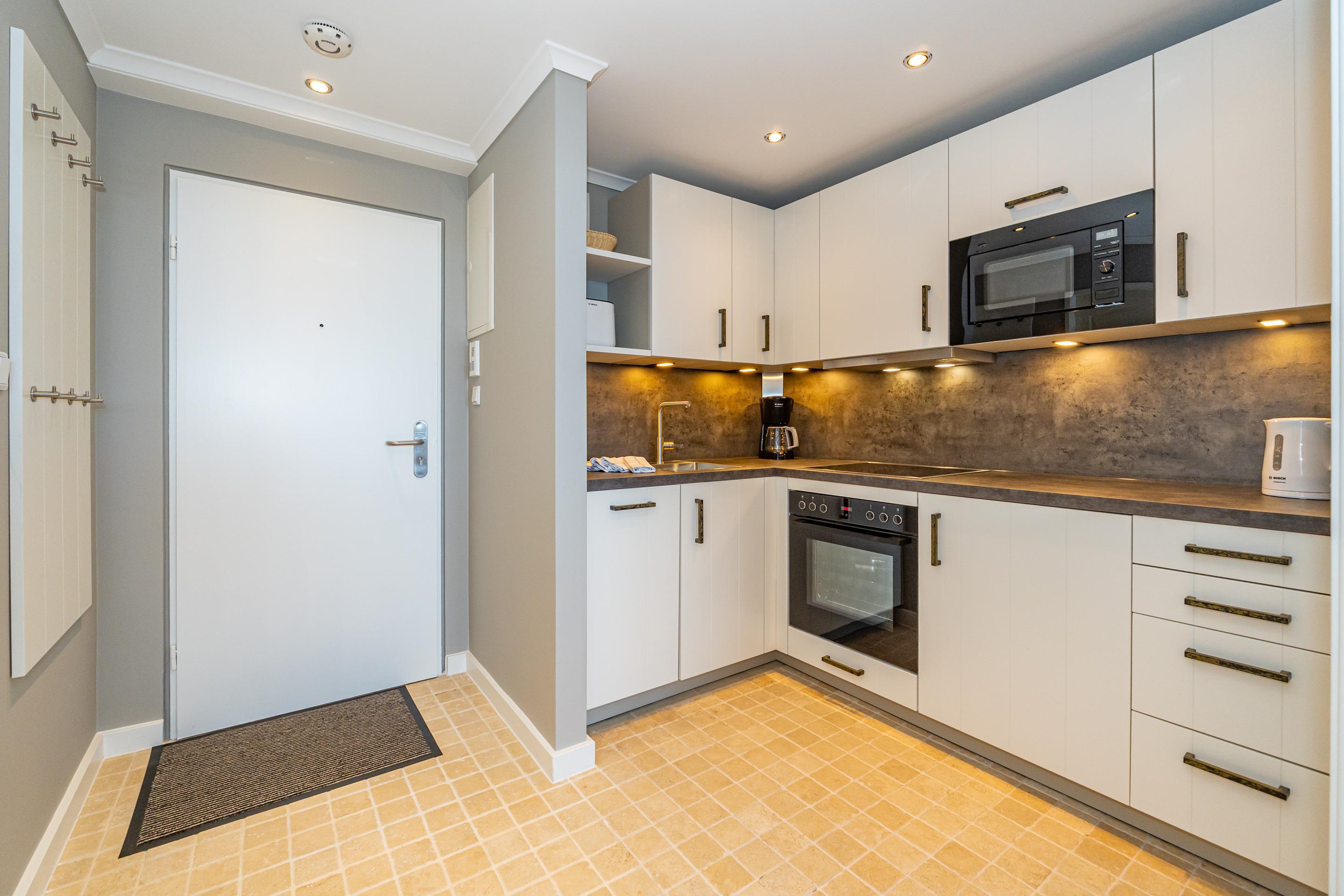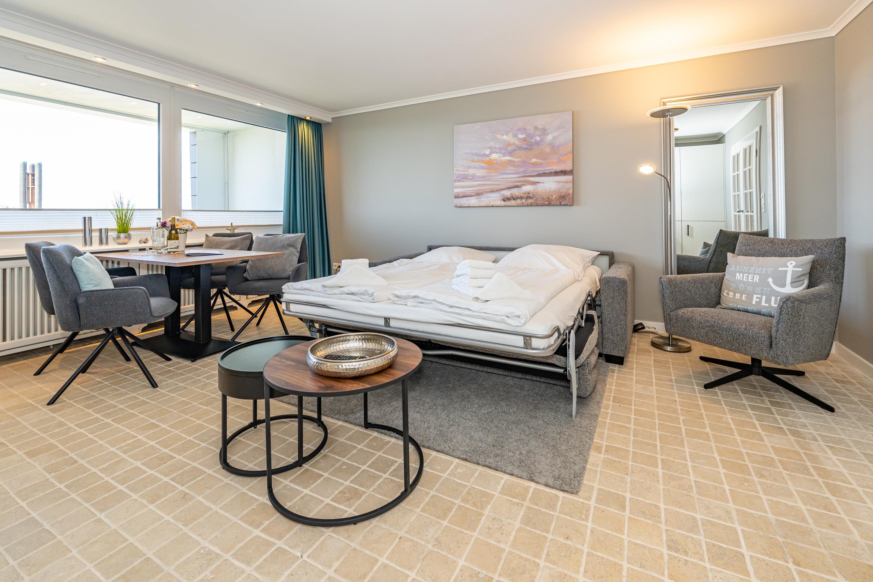 2025 renovierte, stilvolle 2-Zimmer-Nichtraucher-Ferienwohnung mit schönem Meerblick (ca. 51 qm) in der 4. Etage zur Seeseite mit 2 Westloggien (Nachmittagssonne, mit Balkonmöbeln und Auflagen) für max. 4 Personen.
