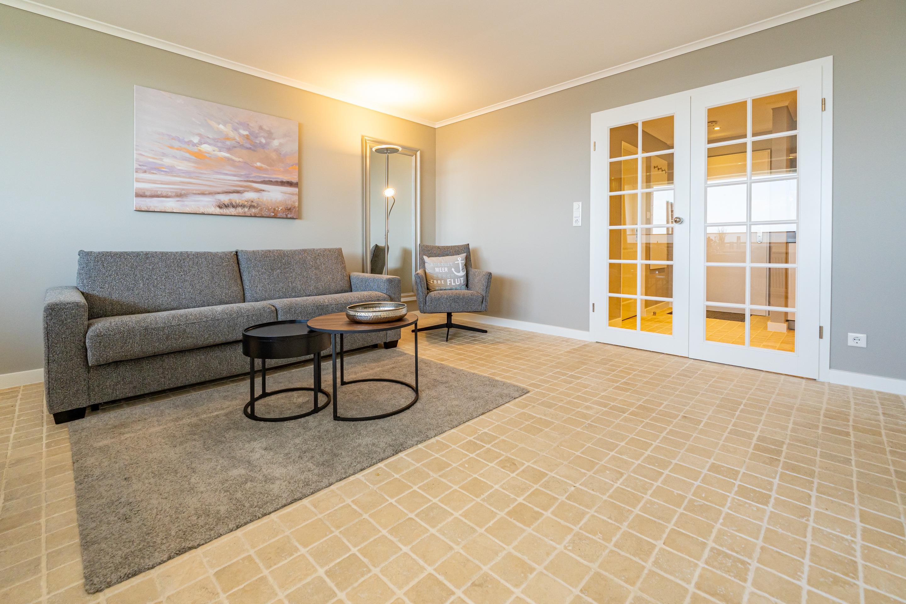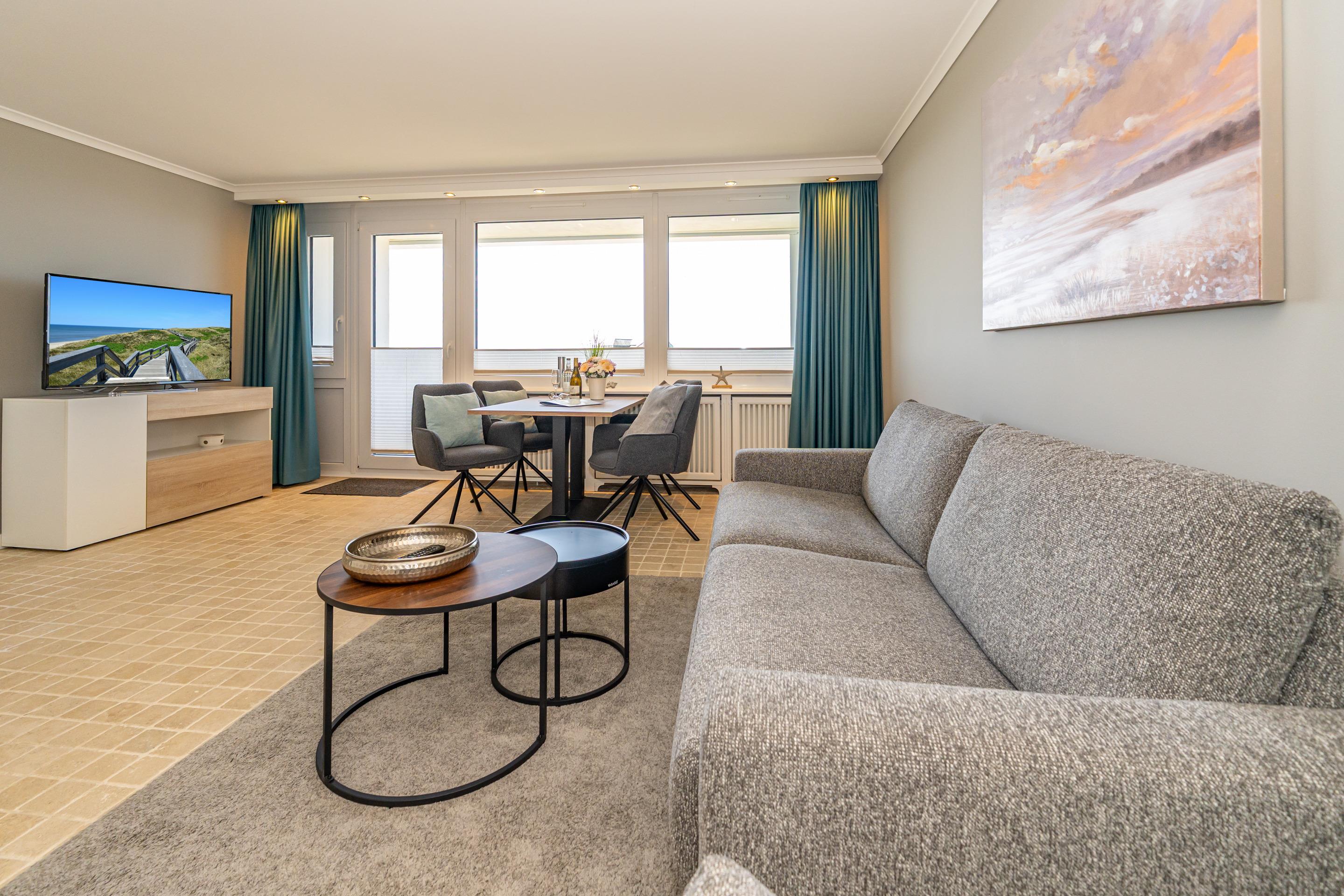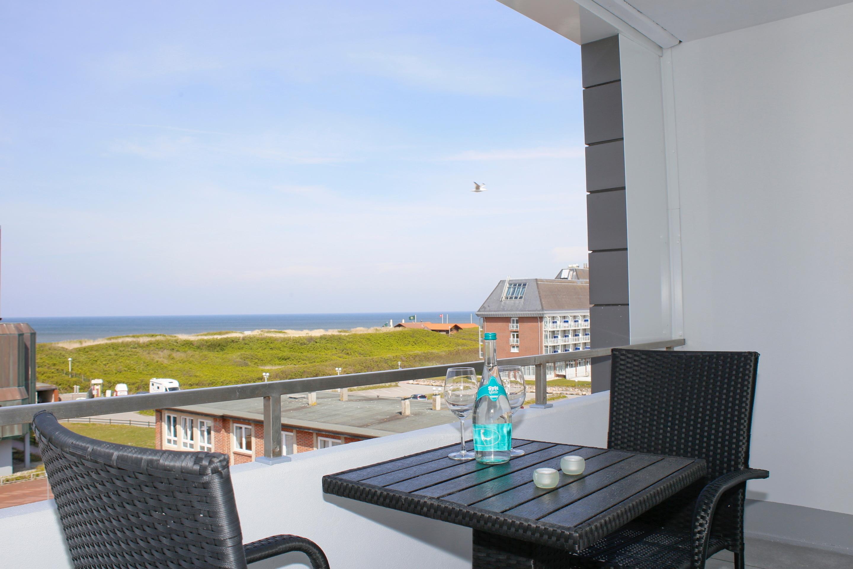Stilvolle Ferienwohnung mit Meerblick und zwei Westloggien in Westerland, frisch renoviert, ideal für entspannte Tage am Meer.