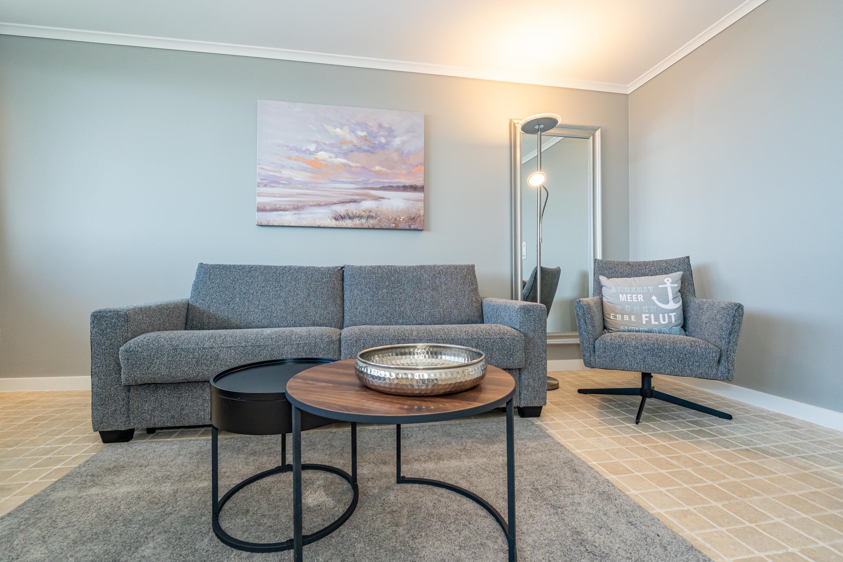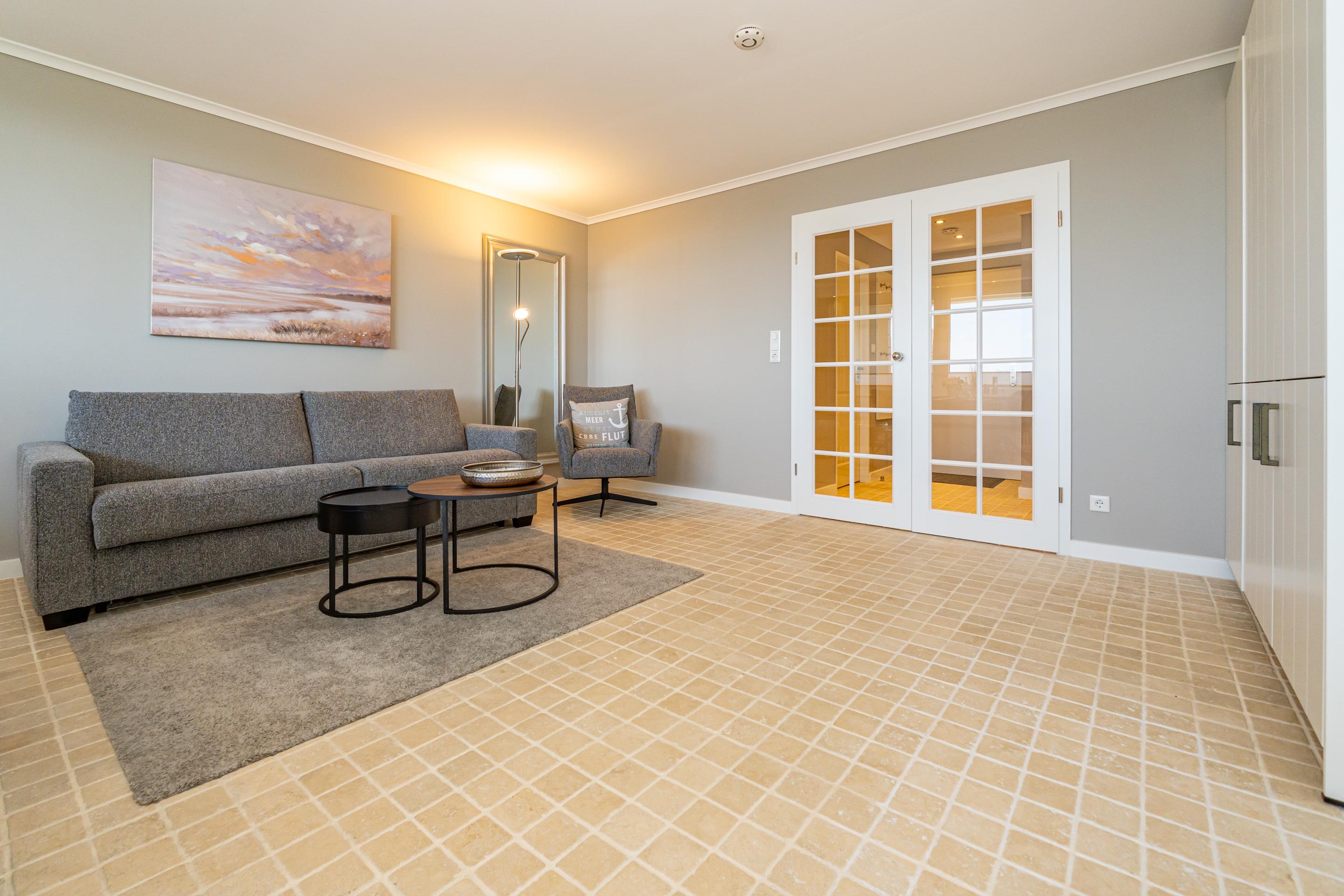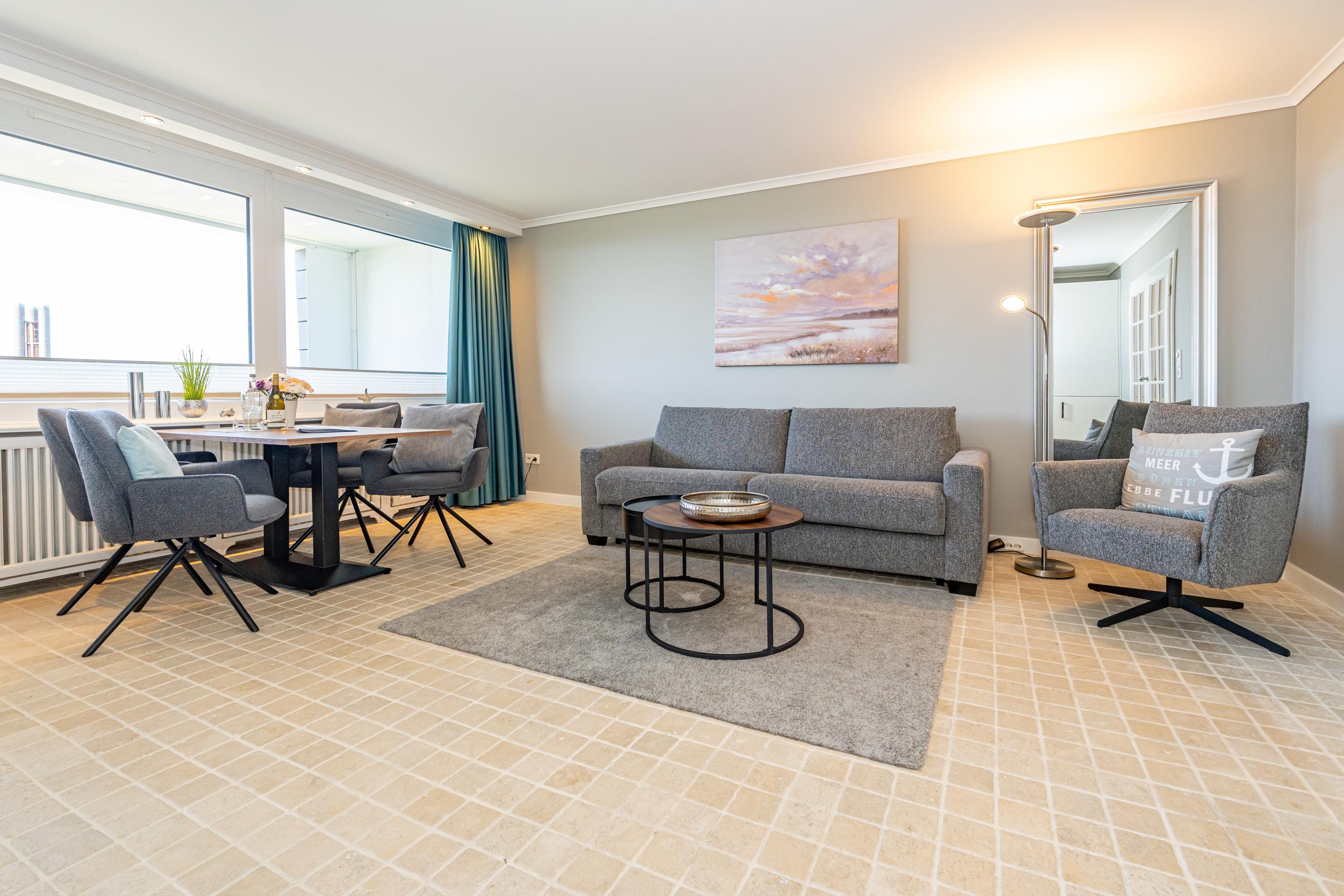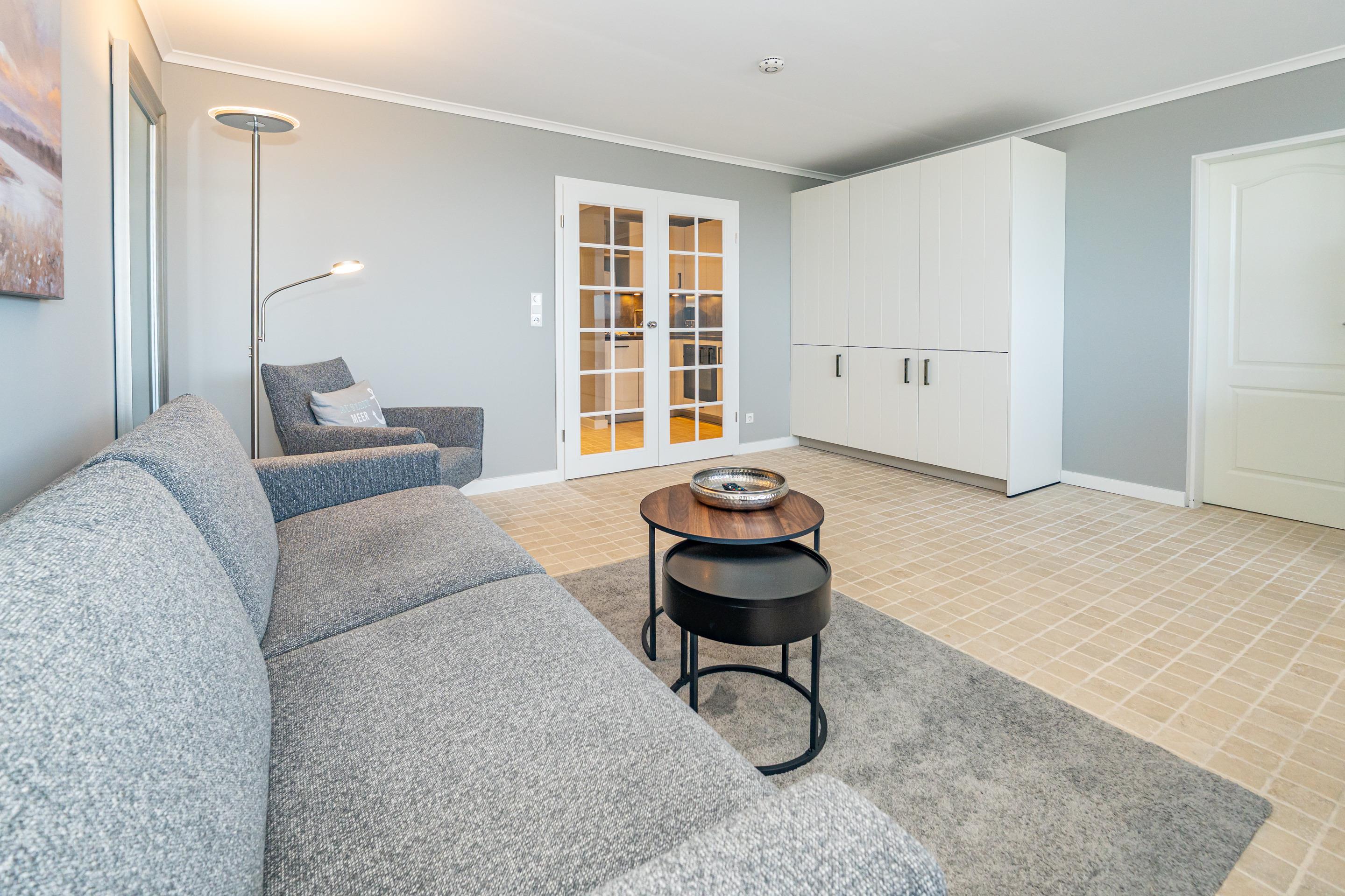 Stilvolle Ferienwohnung mit Meerblick und zwei Westloggien in Westerland, frisch renoviert, ideal für entspannte Tage am Meer.