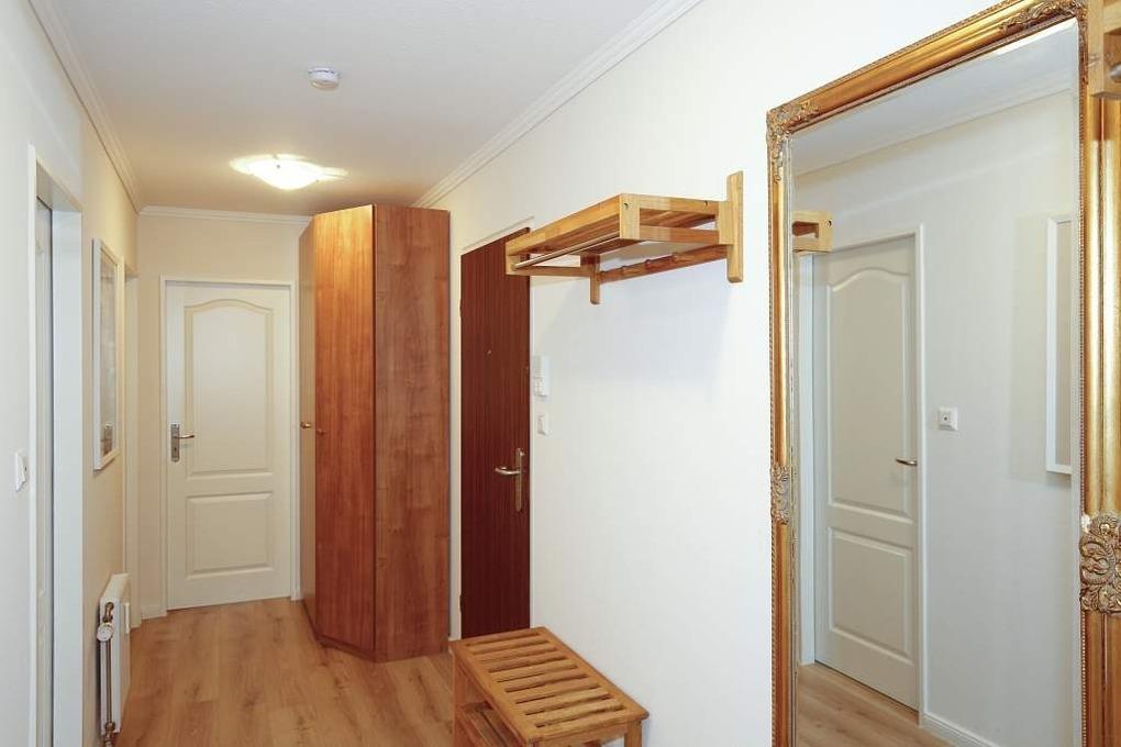 Vom Vorflur mit Garderobe gelangt man in das Wohnzimmer (mit Austritt zum Balkon), in die Küche, in das neue, moderne Duschbad und in die zwei Schlafzimmer.