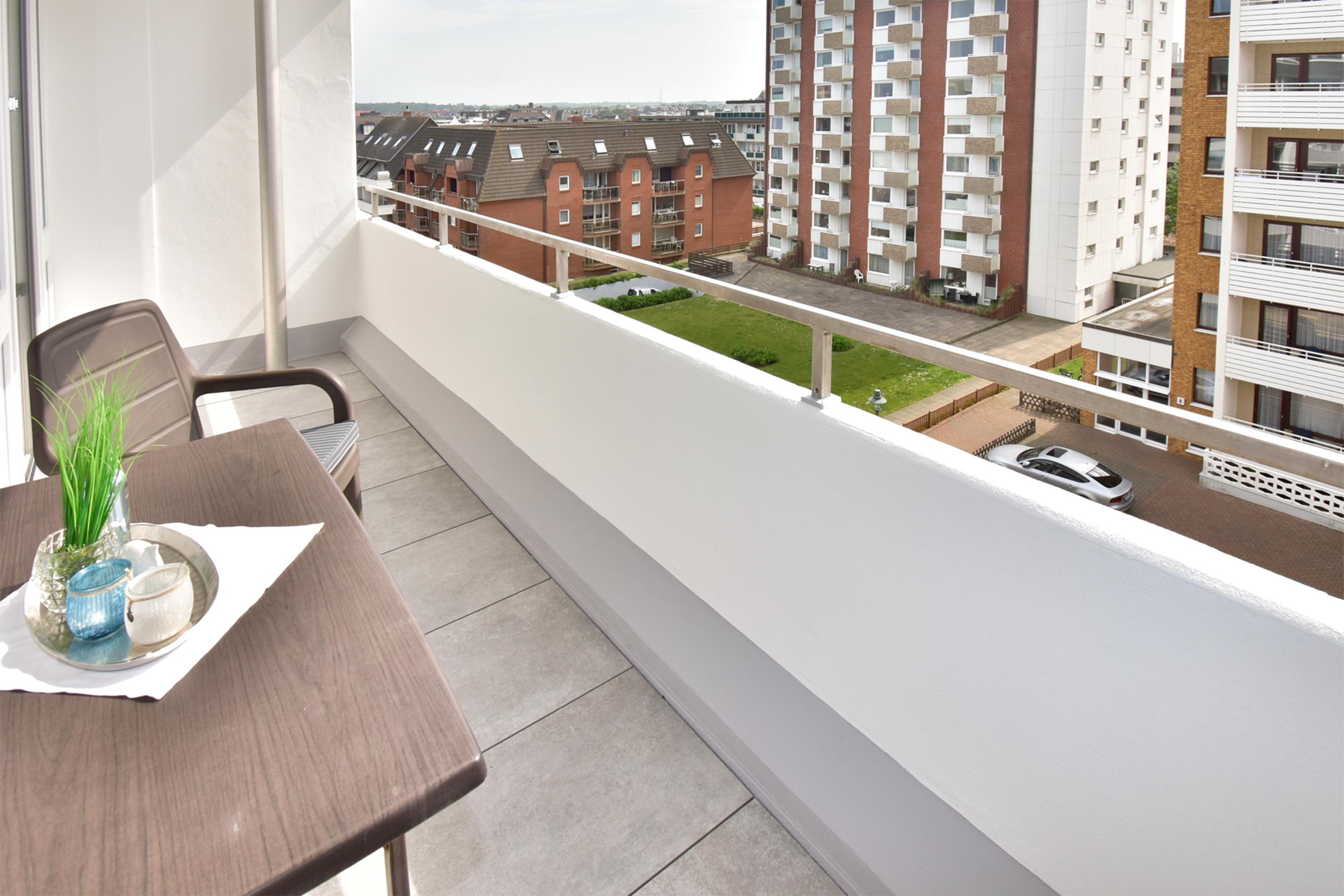 Moderne Ferienwohnung mit zwei Schlafzimmern und Balkon in Westerland, ideal für 4 Personen.