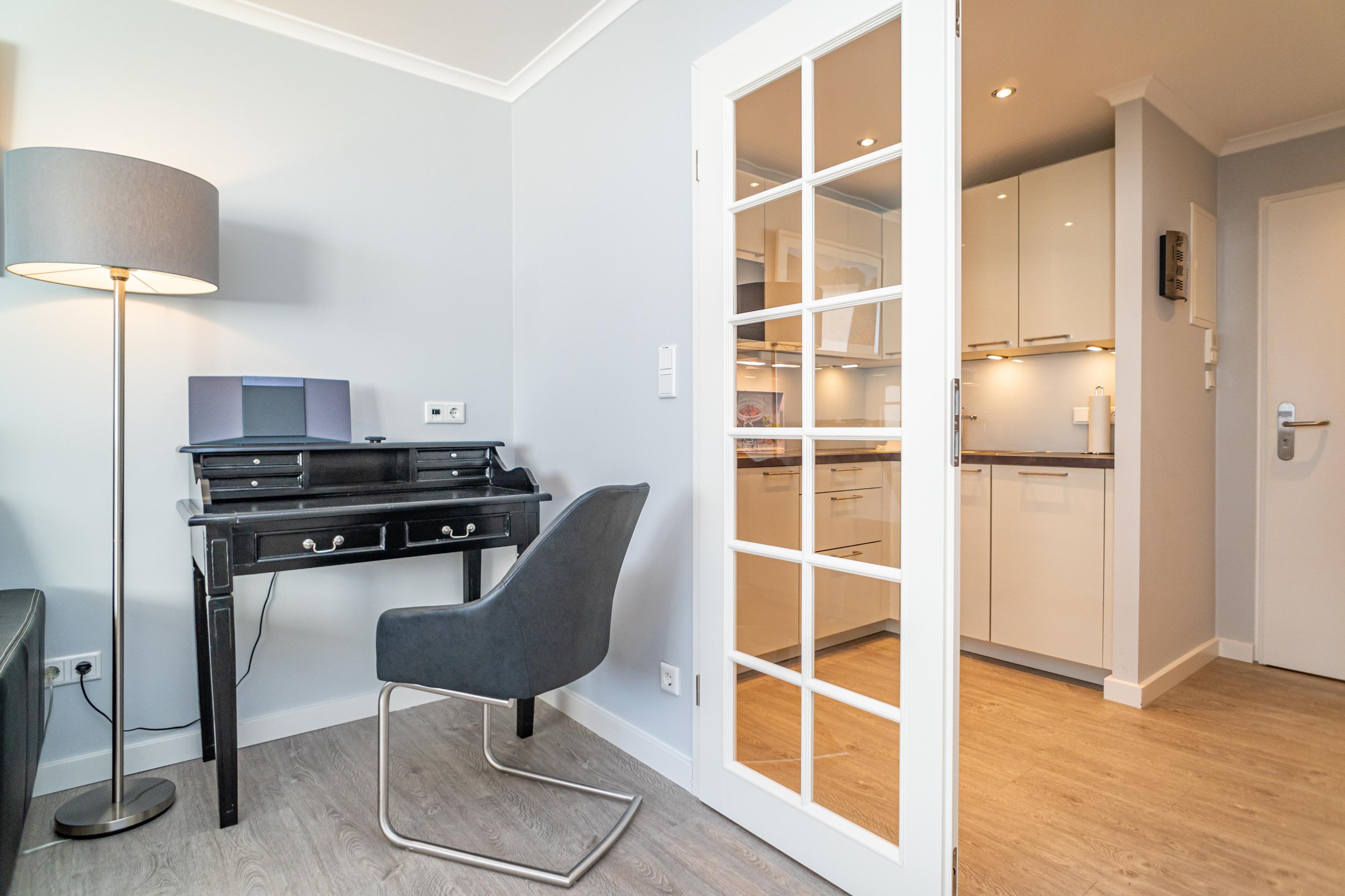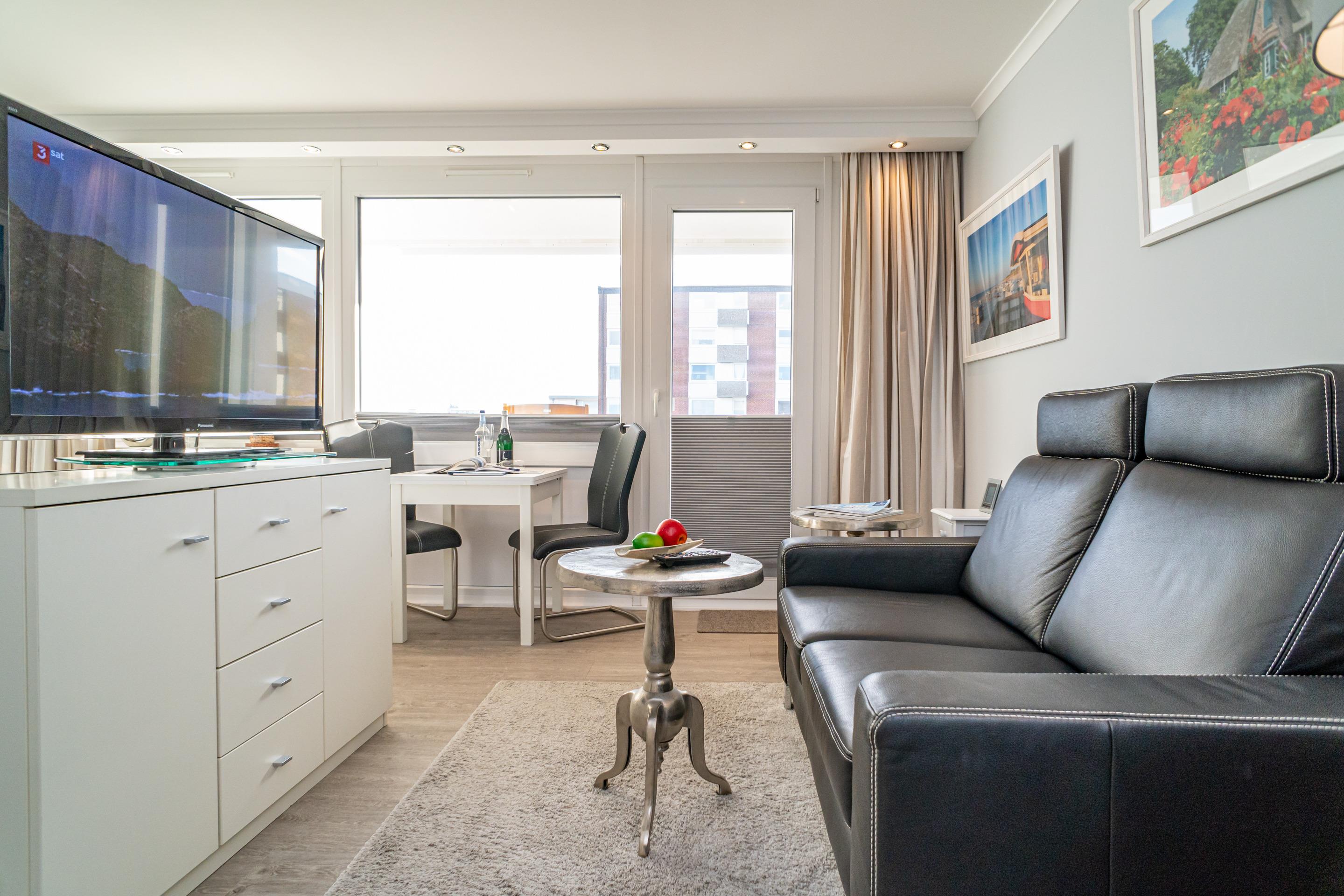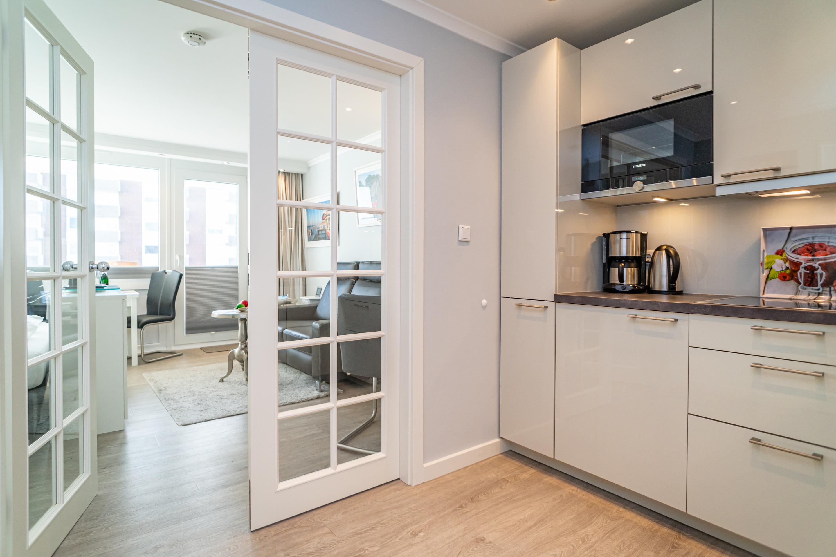 Moderne Nichtraucher-Ferienwohnung mit Balkon in Westerland, ideal für 2 Personen, inklusive WLAN und moderner Küchenausstattung.