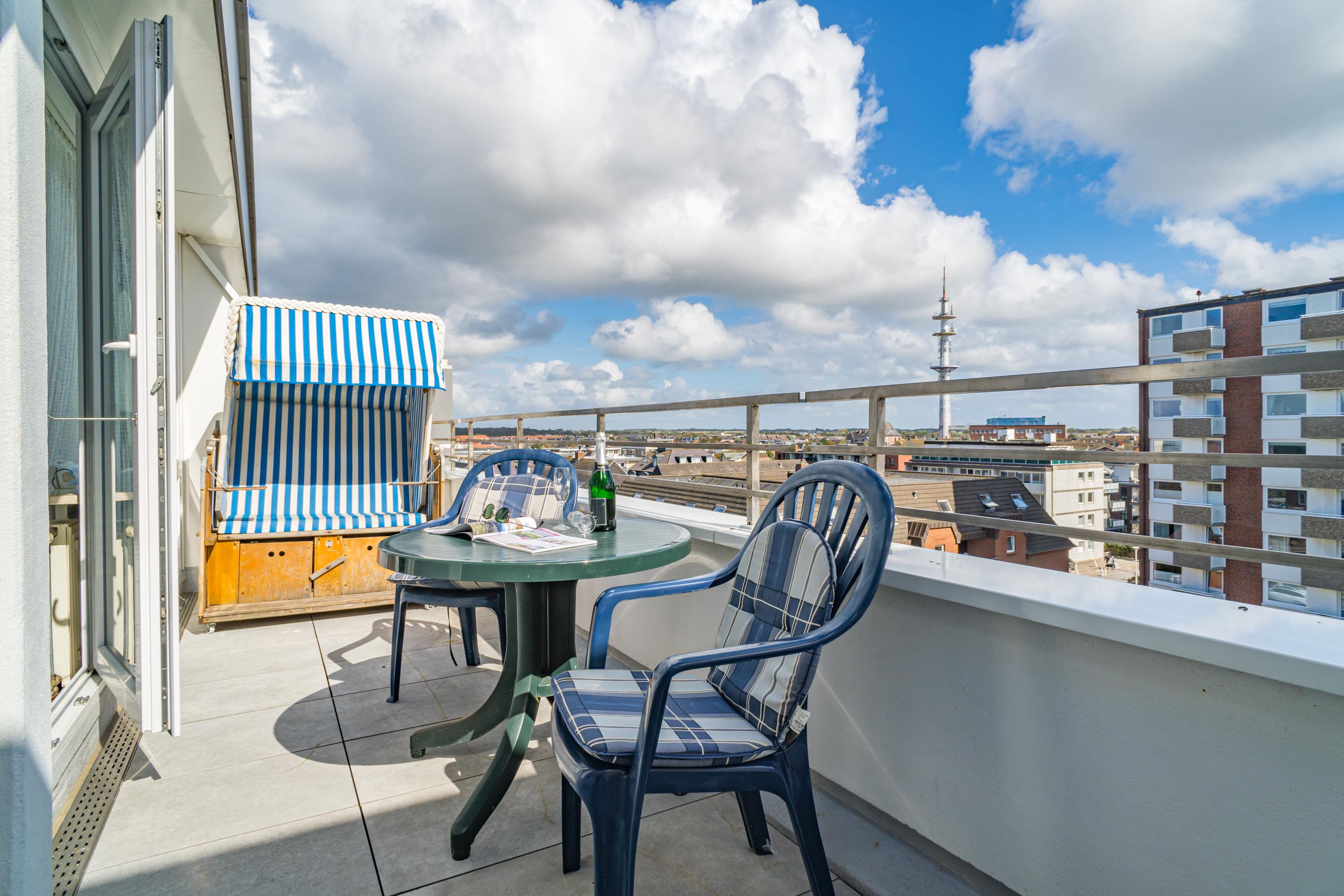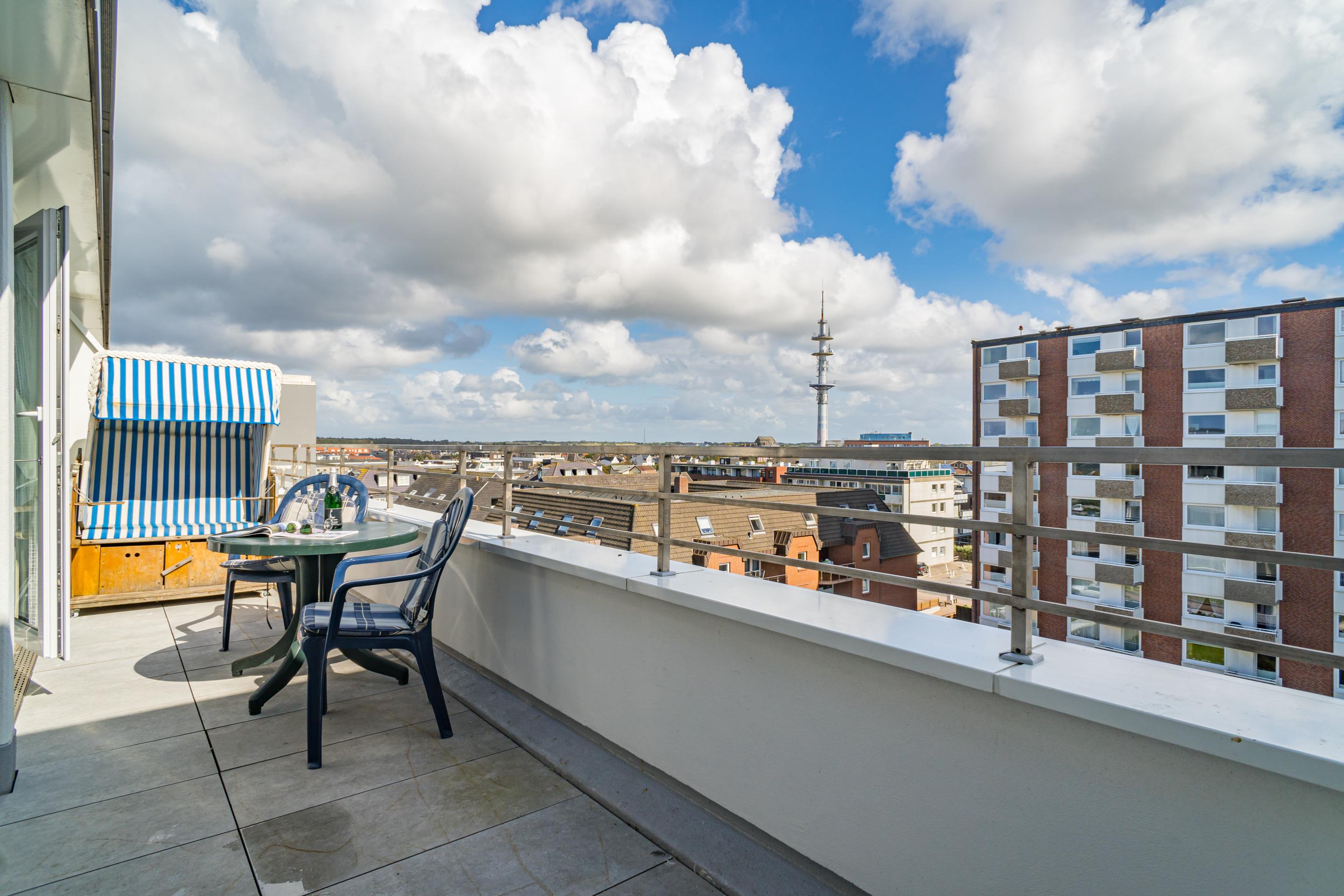 Moderne Ferienwohnung mit Dachterrasse und Strandkorb in Westerland für erholsame Tage.