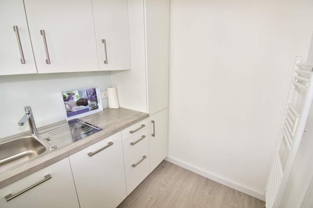 Die separate neue Küche hat einen Geschirrspüler, einen Herd mit 4-Platten-Cerankochfeld und Backofen. Kaffeemaschine, Wasserkocher und Toaster gehören zur Grundausstattung.