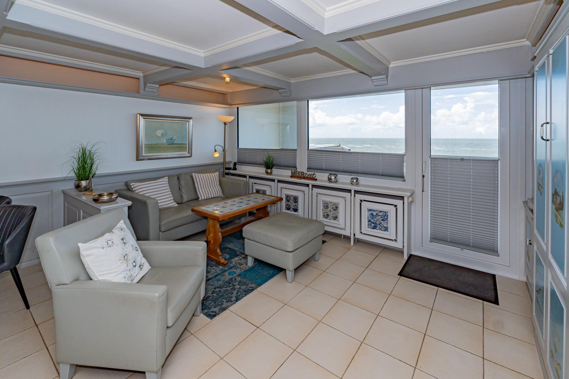 Komfortable 2-Zimmer-Nichtraucher-Ferienwohnung (ca. 51 qm) in der 6. Etage zur Seeseite mit herrlichem Meerblick für max. 4 Personen mit Westloggia (Nachmittagssonne, Balkonmöbel vorhanden).