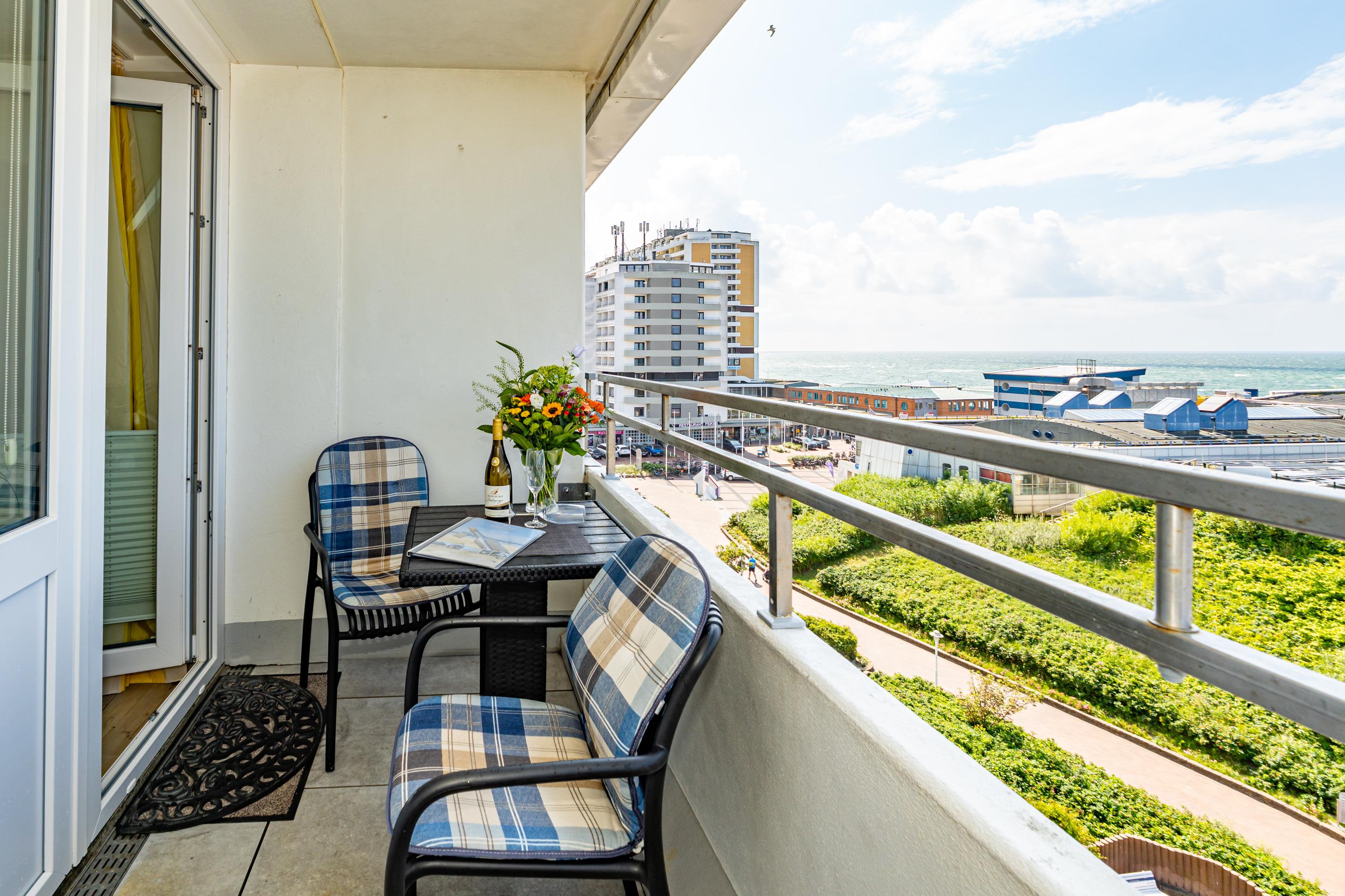 Moderne 1-Zimmer-Ferienwohnung in Westerland mit Balkon und herrlichem Meerblick, ideal für 2 Personen.