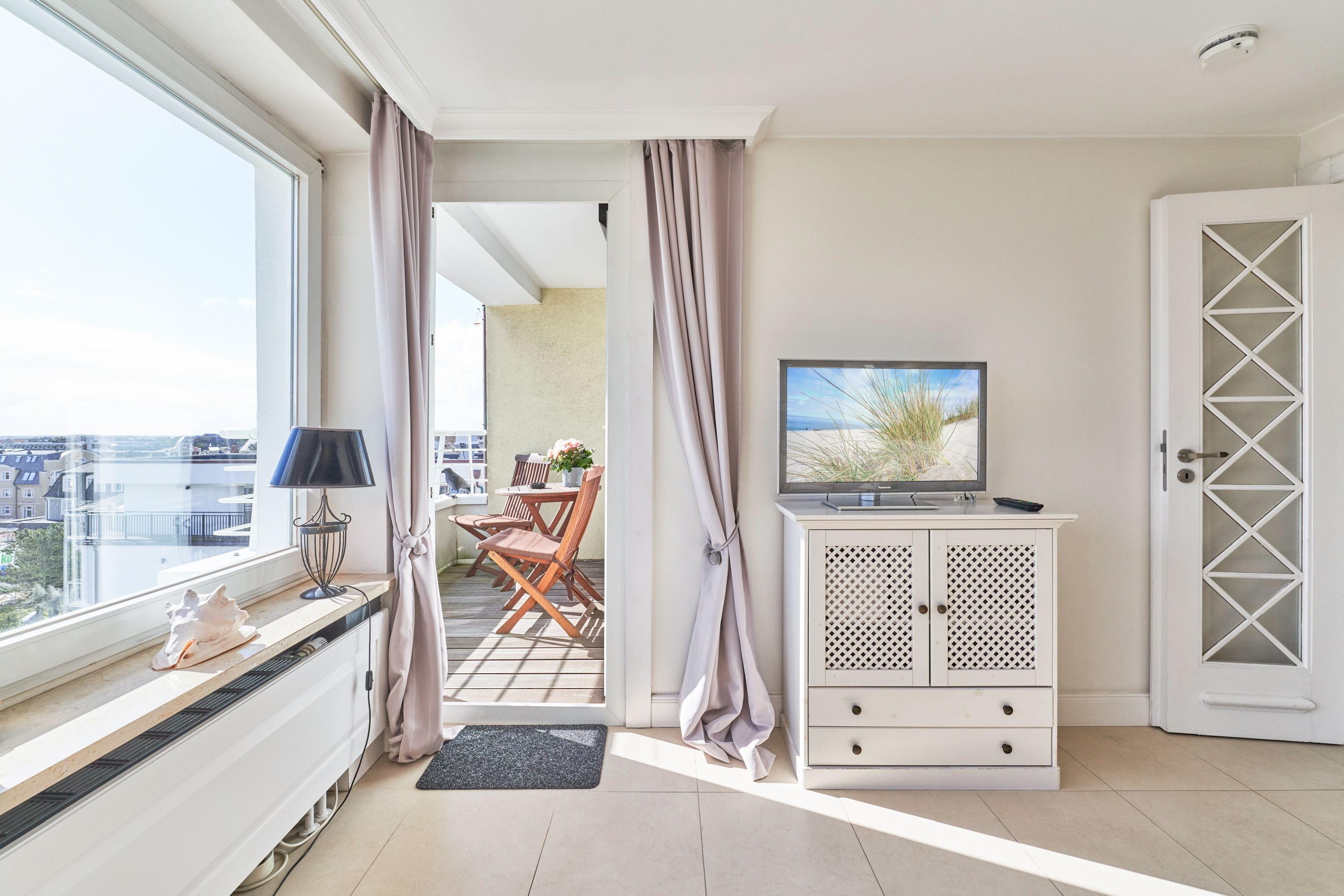 Die liebevoll eingerichtete Ferienwohnung befindet sich in der 4 Etage im Haus Sola Bona in Westerland und bietet einen schönen Weitblick bis zur Keitumer Kirche.[nbsp] Der Wohn- Essbereich ist hell und freundlich mit offener Küche und verfügt über einen direkten Zugang zum überdachten Ost - Balkon. Das Schlafzimmer verfügt über ein Doppelbett und Schrankeinbauten. Ein separates Duschbad mit WC ist ebenfalls vorhanden. Zur Wohnung gehört ein kostenloser PKW - Stellplatz sowie ein Gemeinschaftsraum im Keller mit Waschmaschine und Trockner auf Münzbasis.