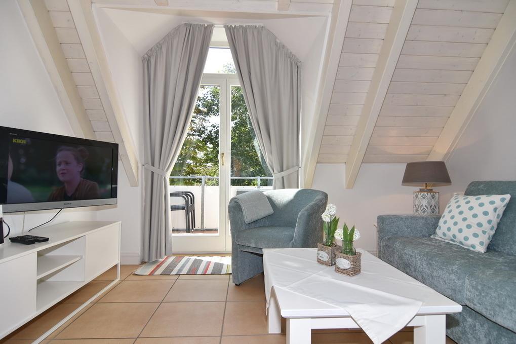 Schicke 2-Zimmer-Ferienwohnung mit Westbalkon im Haus "Eva". Ca. 60m². Nichtraucher! OG: Wohnzimmer mit Doppelschlafcouch und Sessel, Essplatz für 4 Personen, Flat-TV, Stereo / CD / DVD. Separate Küche mit Geschirrspüler. Duschbad/WC. DG: Schlafzimmer mit Doppelbett. Tierhaltung gestattet, bitte anmelden (keine Kampfhunde). Pkw-Stellplatz Nr. 10 kostenlos (bitte anmelden). Im Haus: Kostenlose Nutzung des Schwimmbades und der Sauna. Waschküche gegen Gebühr. W-Lan (ohne Gewähr). Bettwäsche und Handtücher sind zur Anreise aufgezogen!