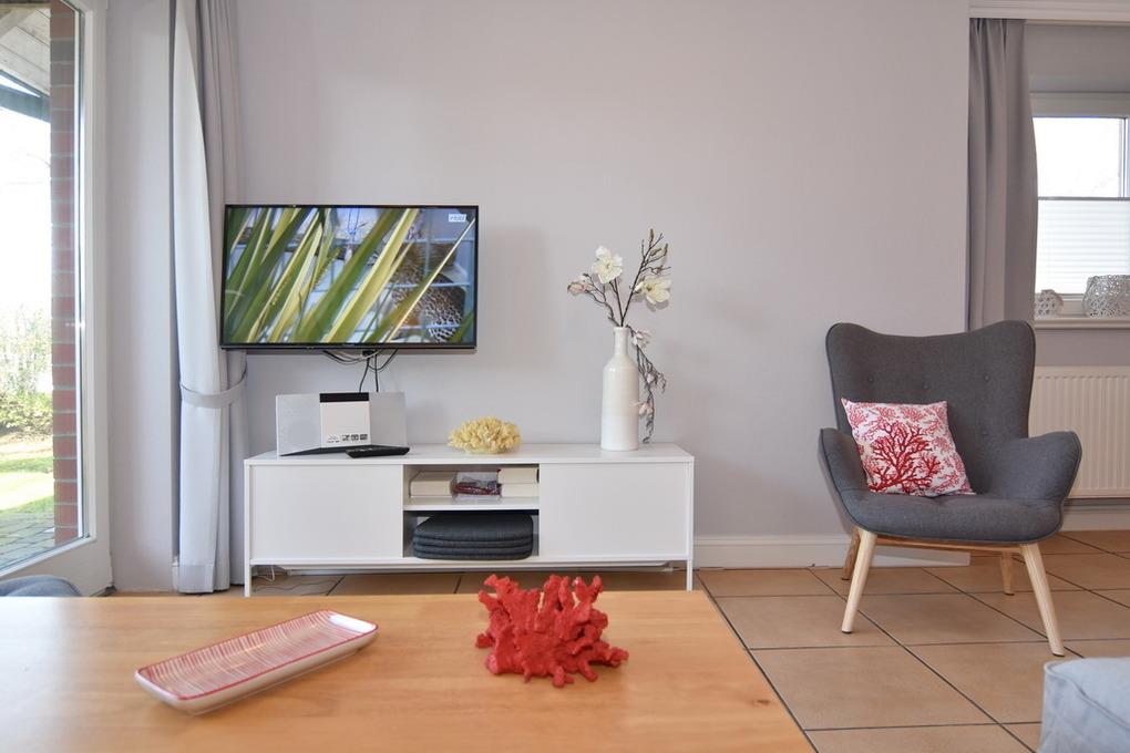 Schicke 3-Zimmer-Ferienwohnung mit Westterrasse im Haus "Eva". Ca. 70m². Nichtraucher! EG: Wohnzimmer mit Couch und 2 Sesseln, Essplatz, Flat-TV,Stereo / CD / DVD. Separate Küche mit GS, Gäste-WC. UG: 2 Schlafzimmer mit Boxspringbetten (180*200), sowie 1 Duschbad/WC. Stellplatz Nr. 9, Strandkorb (Apr.-Okt.),[nbsp][nbsp]Tierhaltung gestattet, bitte anmelden (keine Kampfhunde). Im Haus: Kostenlose Nutzung des Schwimmbades und der Sauna. Waschküche gegen Gebühr. W-Lan (ohne Gewähr). Bettwäsche und Handtücher sind zur Anreise aufgezogen!