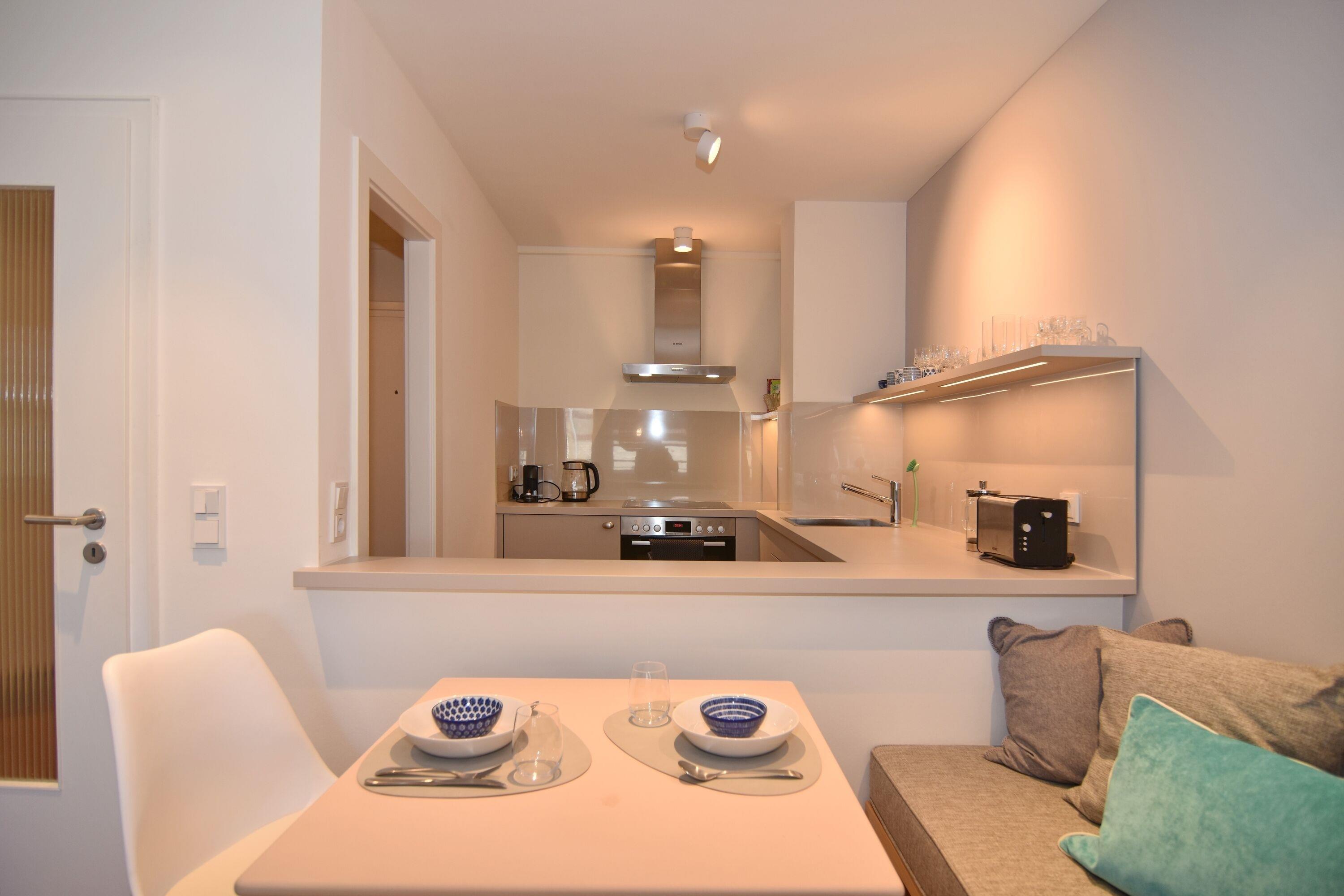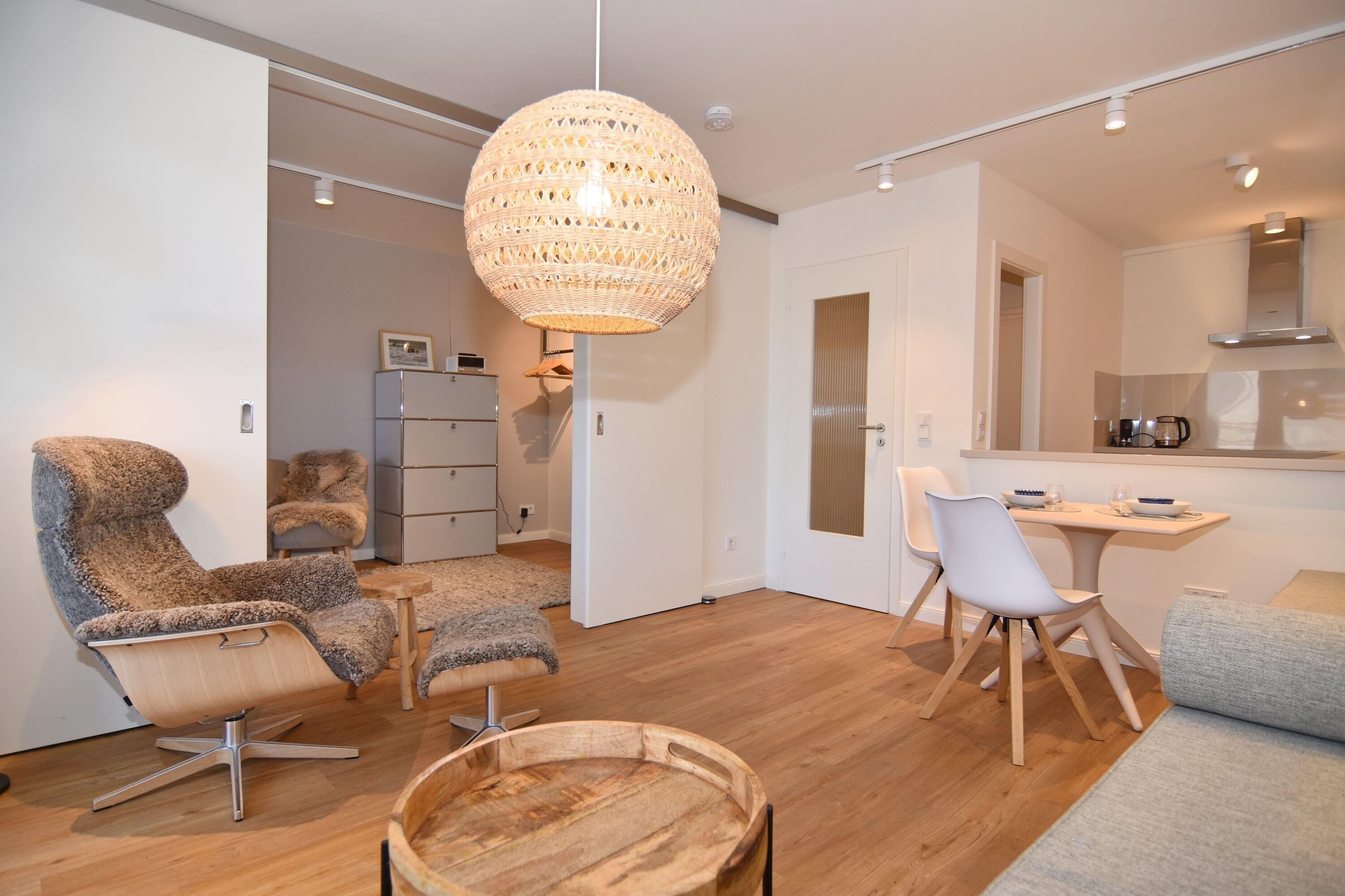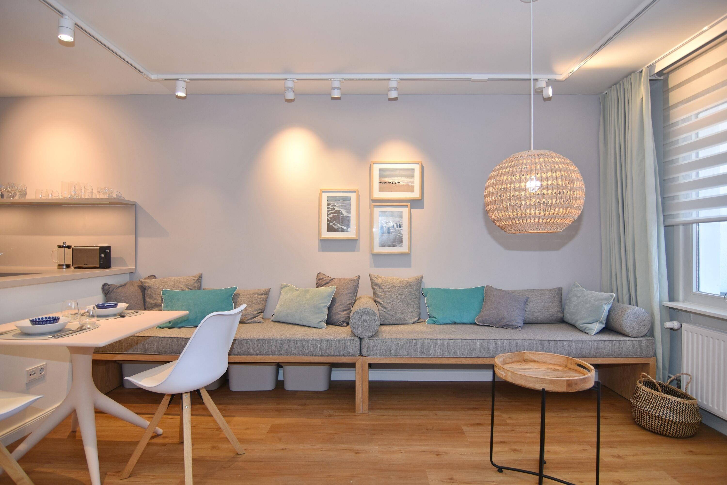 Moderne 2-Zimmer-Ferienwohnung im Herzen von Westerland mit Balkon, Strandnähe und Tiefgaragenstellplatz.