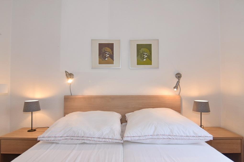 Geräumige 2-Zimmer-Ferienwohnung mit Südbalkon im Hochparterre. Ca. 50m². Nichtraucher-Whg! Wohnzimmer mit Couchecke und Essplatz, Kabel-TV, Radio, 2 Umbauliegen. Separierte Küche mit Geschirrspüler und Mikrowelle im Flurbereich. Schlafzimmer mit Doppelbett (160x200). Duschbad/WC. Südbalkon mit Balkonmöbeln. Pkw-Stellplatz 8 am Haus. Apartment ist komplett gefliest. Bettwäsche und Handtücher sind zur Anreise aufgezogen! Tierhaltung ist nicht gestattet.